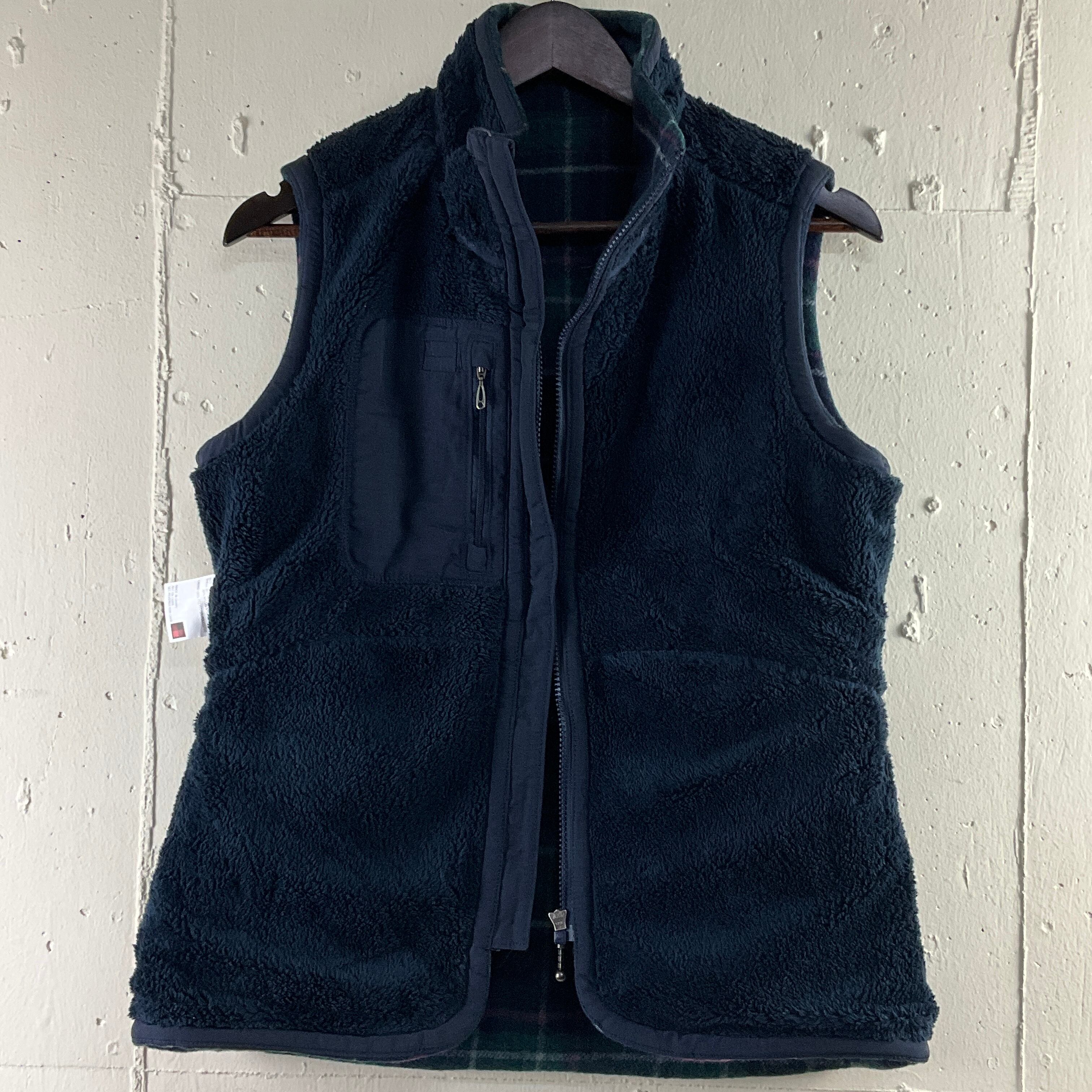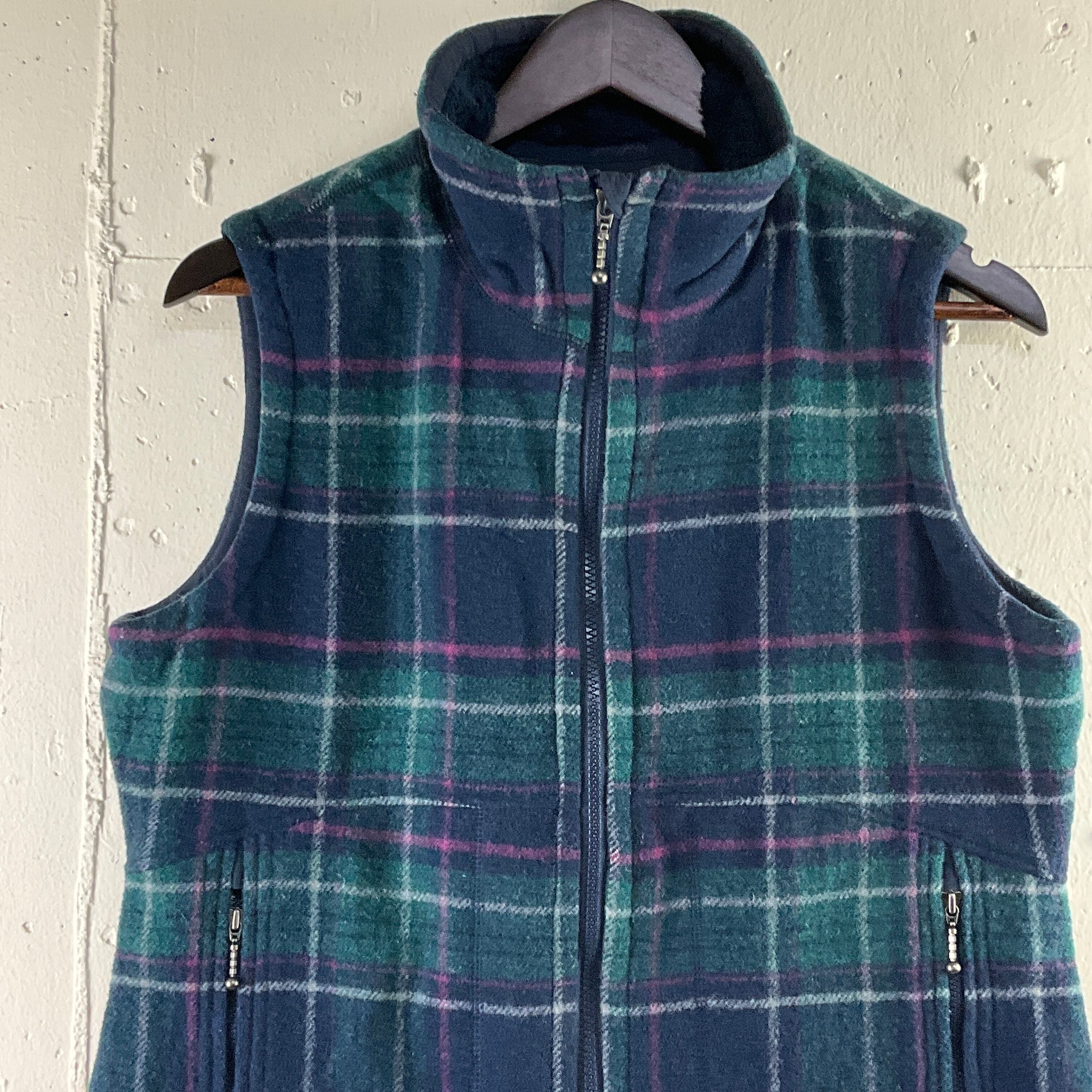 Woolrich ウールリッチ チェック柄 ボア フリースベスト フリースジャケット 古着 レディースM グリーン 緑【f231127020】