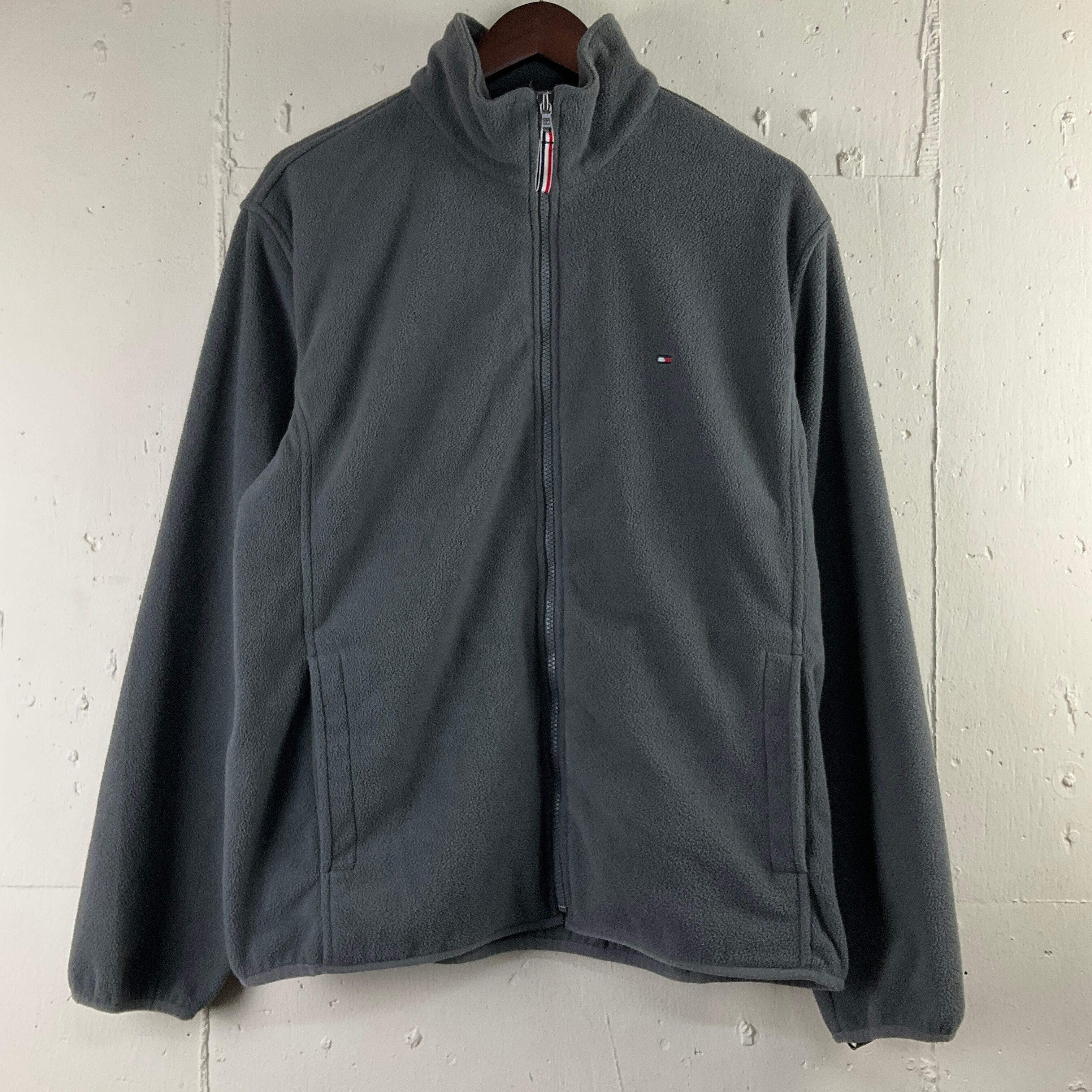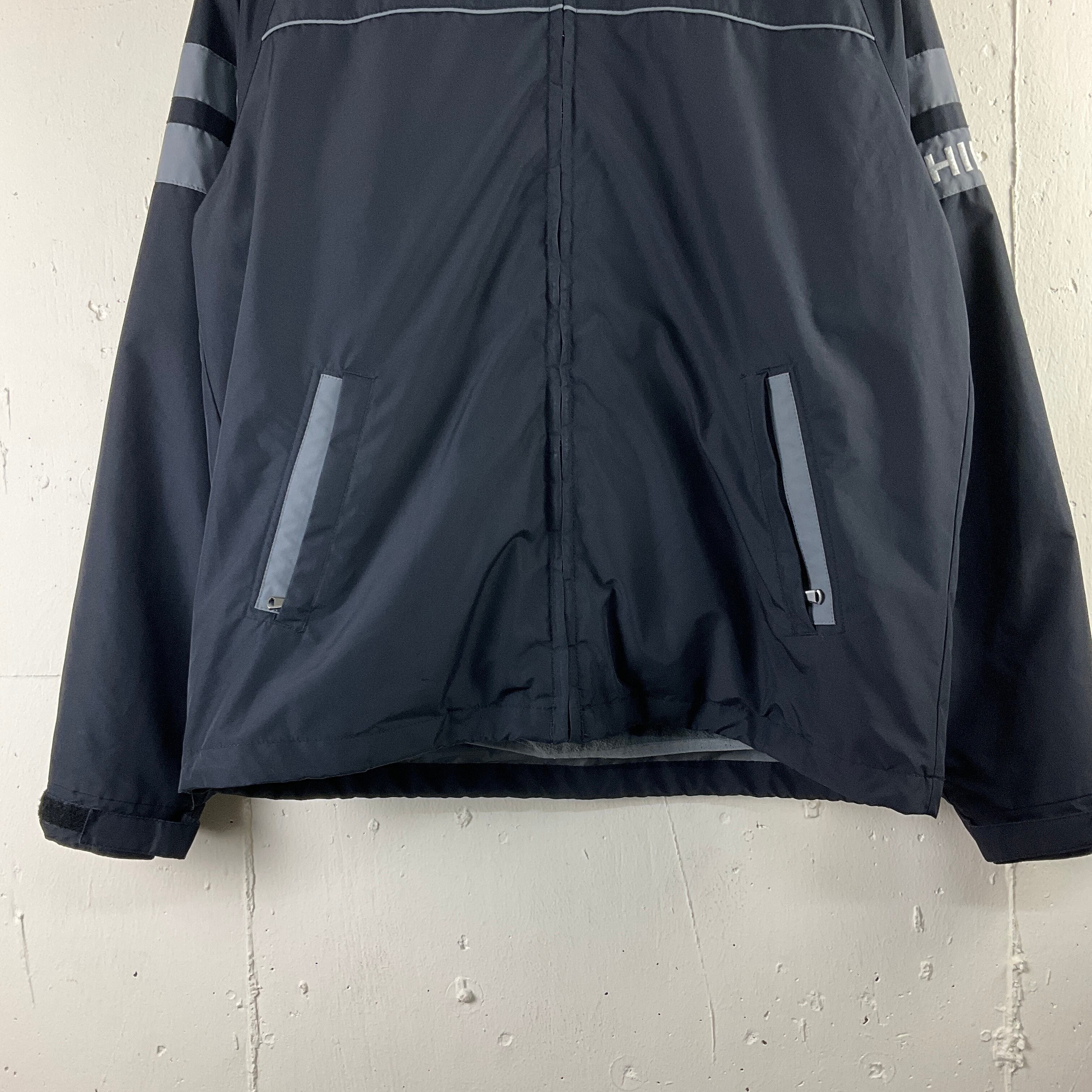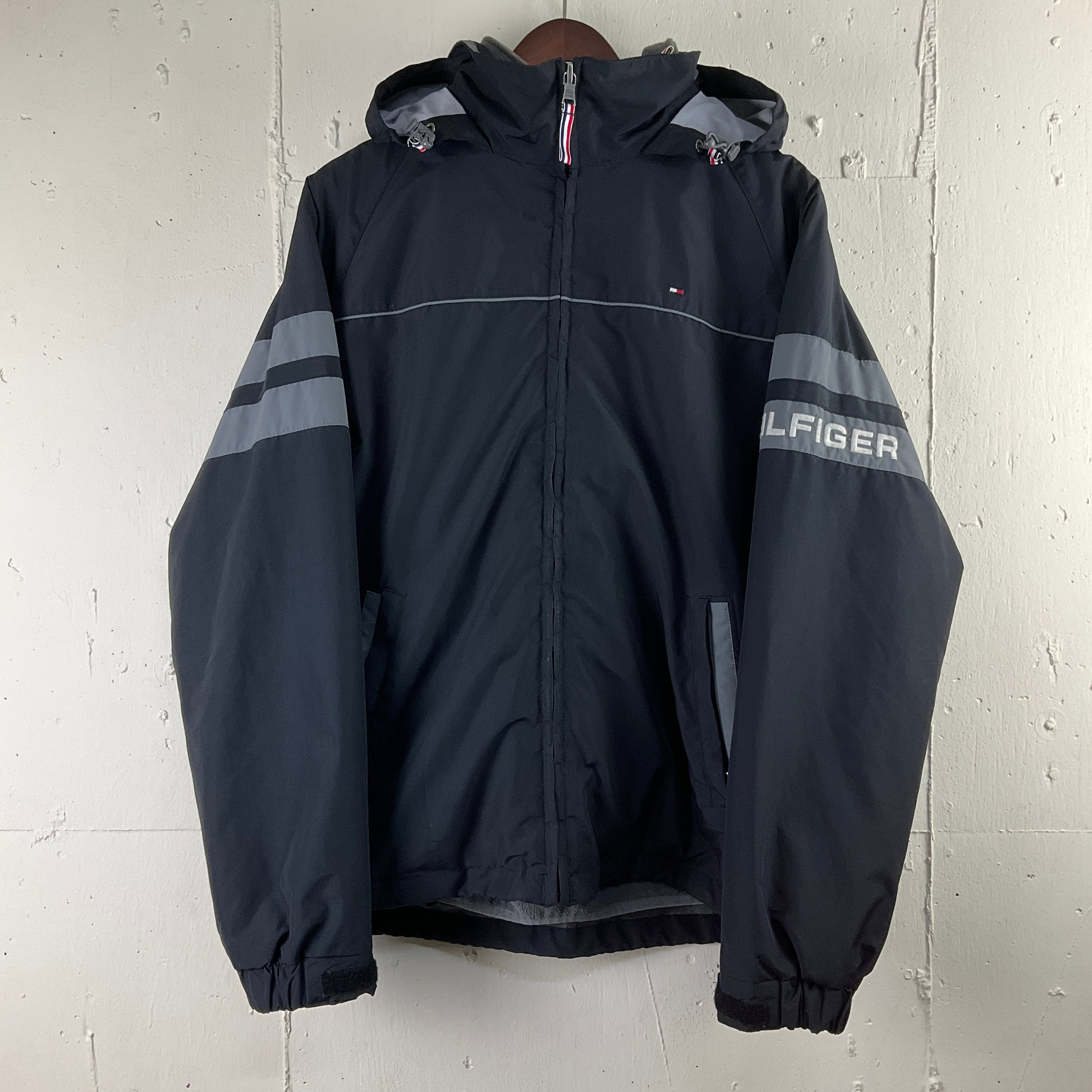TOMMY HILFIGERトミーヒルフィガー 刺繍ロゴ 3way フリース ナイロン ジャケット メンズM ブラック 黒 古着 フード収納型【f231129005】