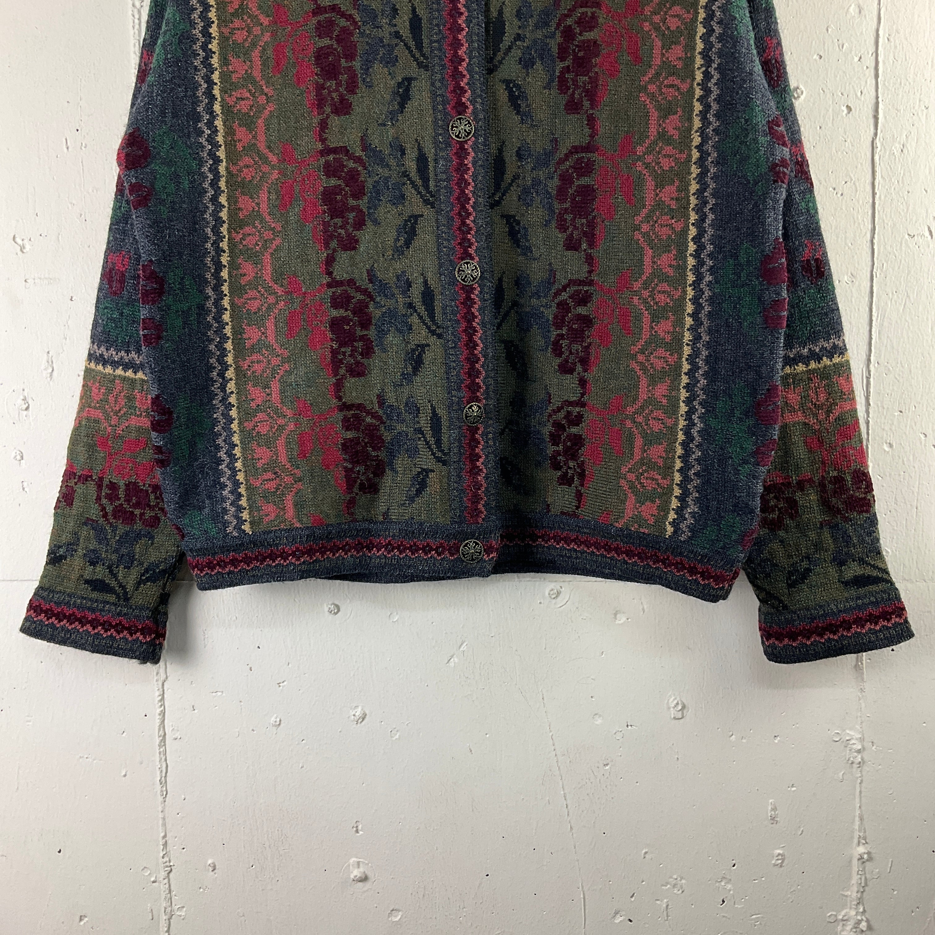 イングランド製 花柄 ウール ニット カーディガン レディースM 古着 総柄 英国製【f231129013】