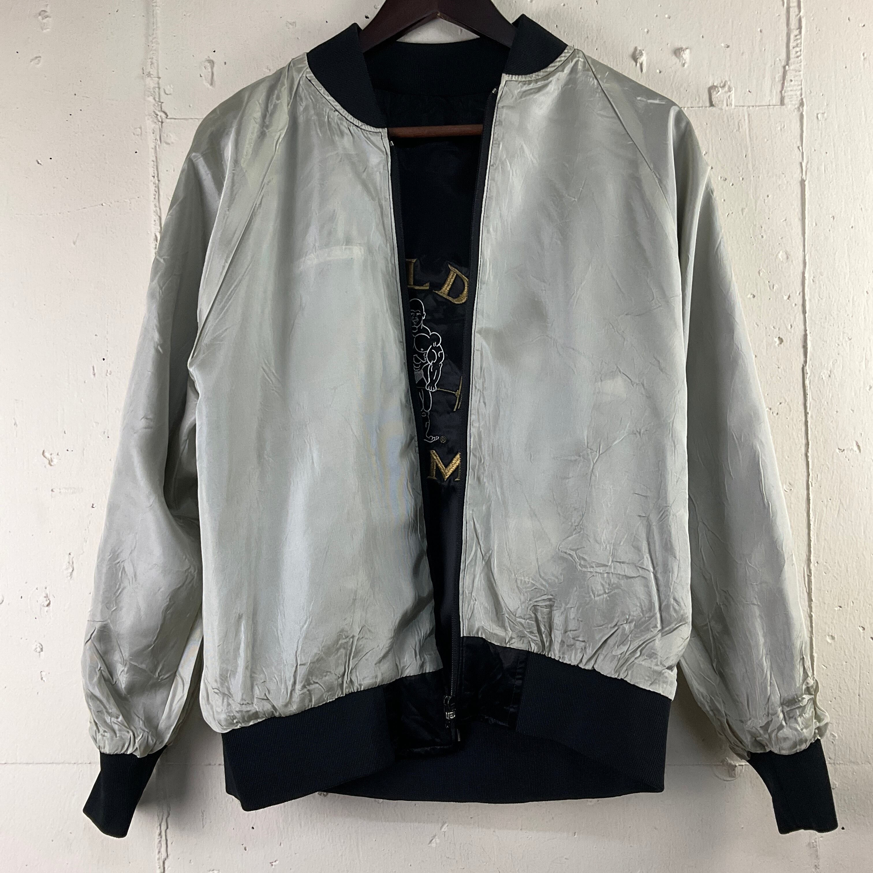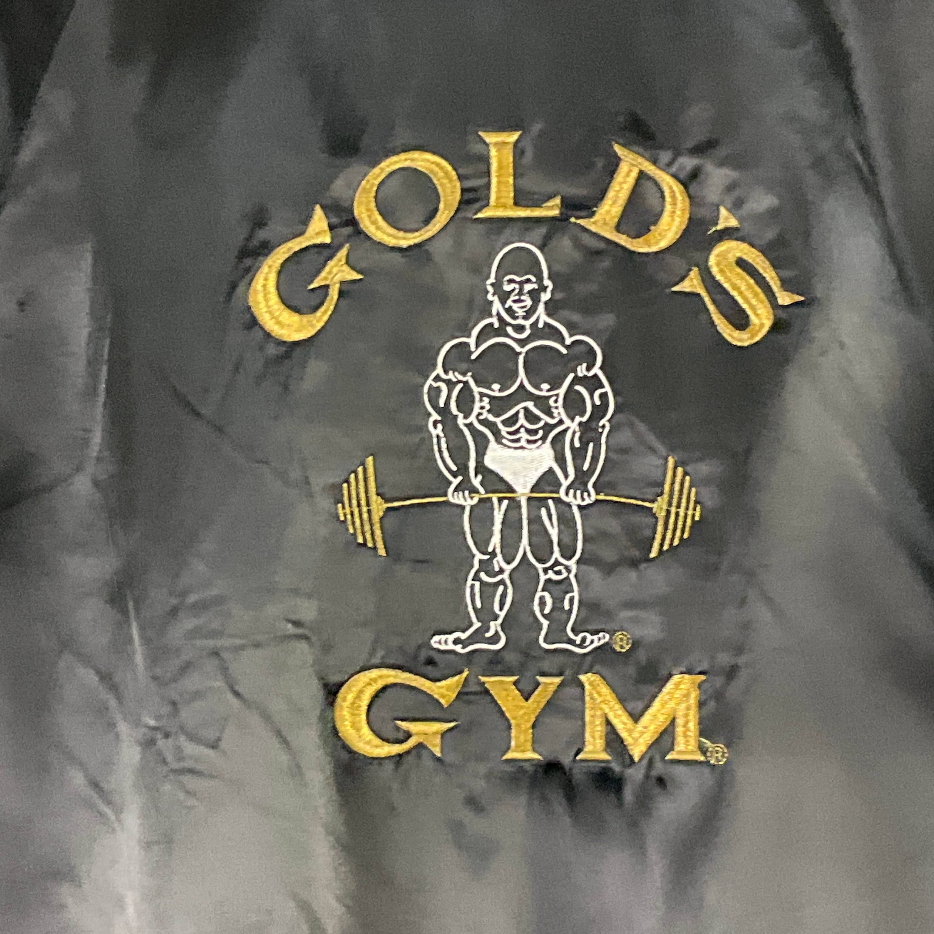Gold's Gym ゴールドジム サテン スポーツジャケット ブルゾン 刺繍 スタジャン メンズM 古着 ブラック 黒 【f231201006】