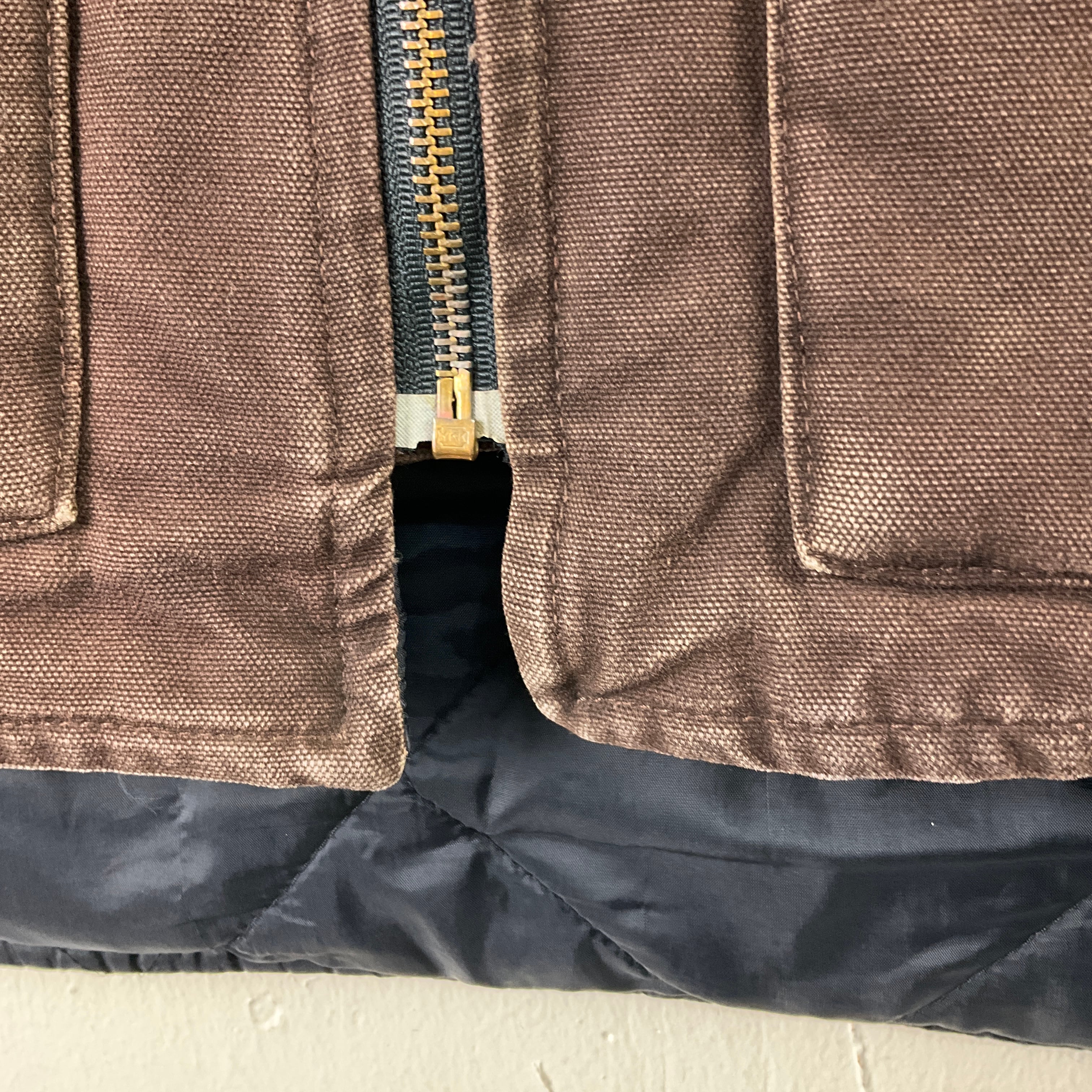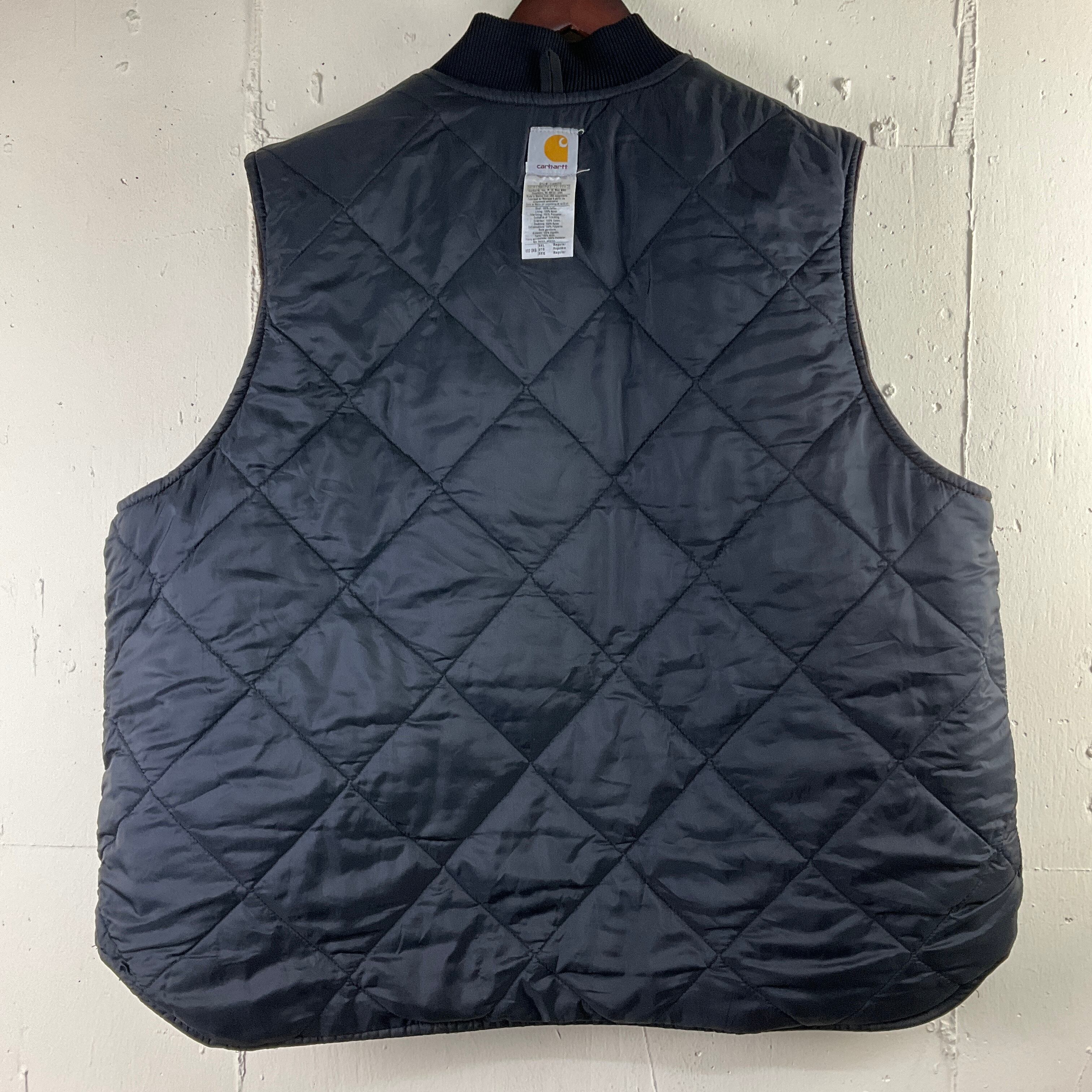 スーパービッグサイズ US企画 carhartt カーハート ダック地 ベスト ワークジャケット 古着 メンズ3XL ダークブラウン 茶色 DKB 大きいサイズ 中綿 キルティングライナー【f231201007】
