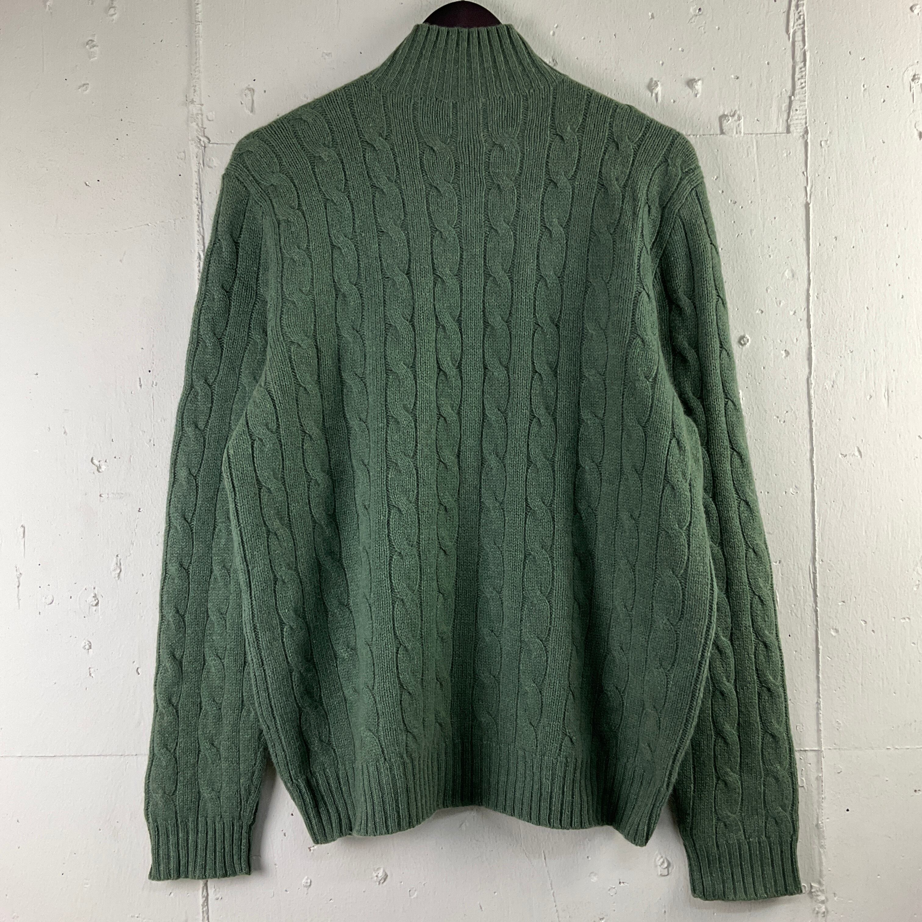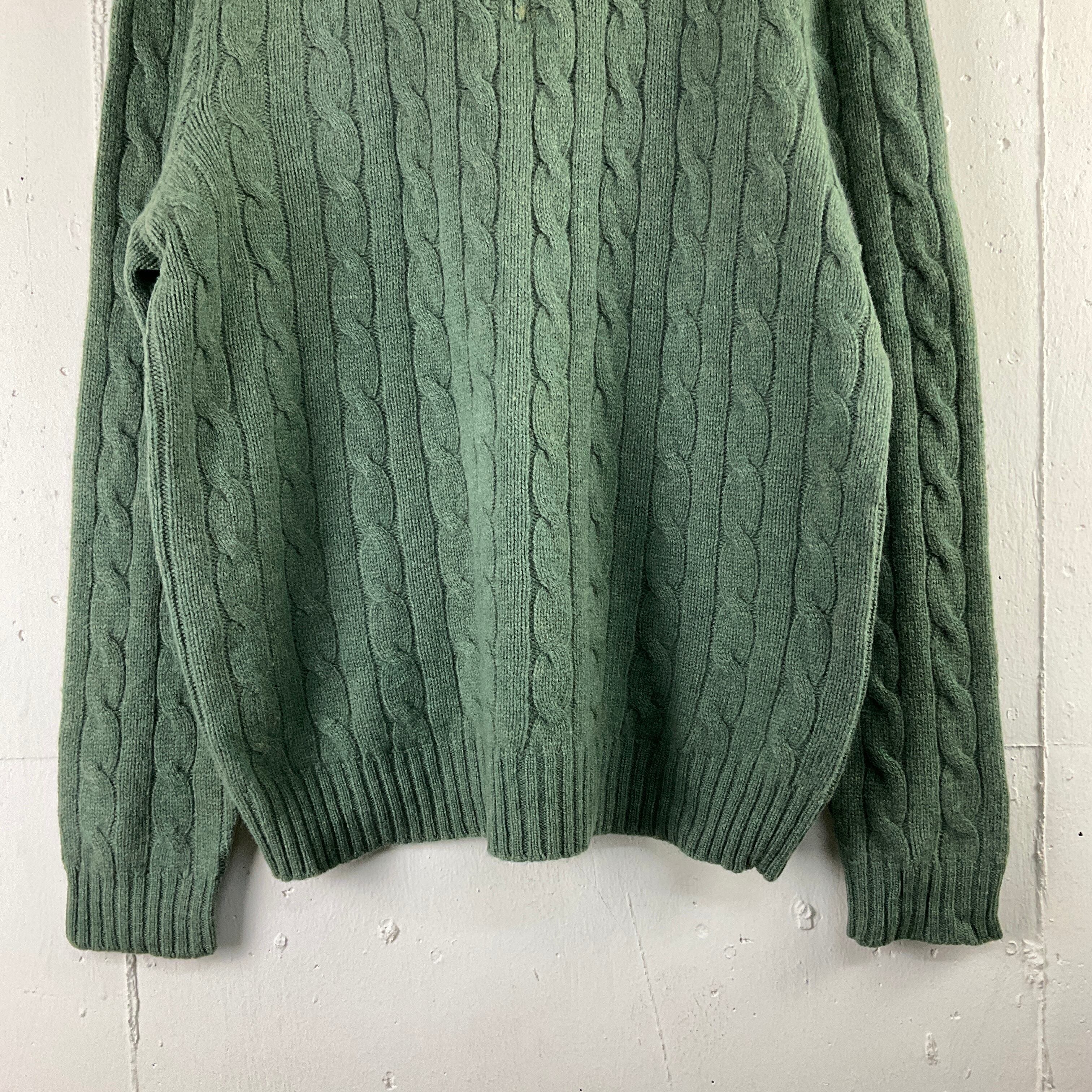Polo by Ralph Lauren ポロバイラルフローレン ハーフジップ ケーブル ラムウール ニットセーター 古着 メンズL グリーン 緑 青 オールドラルフローレン【f231201009】