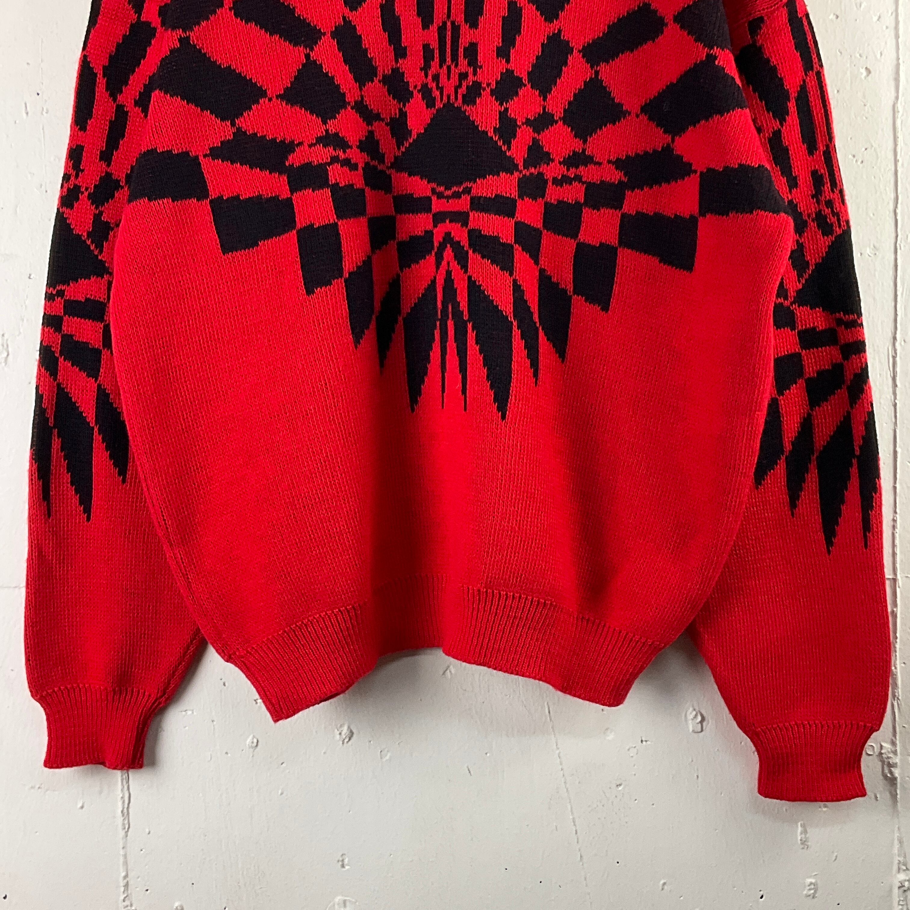 USA製 90年代 90s Lido Sports 幾何学柄 ウール ニットセーター 古着 メンズL レッド 赤【f231201011】