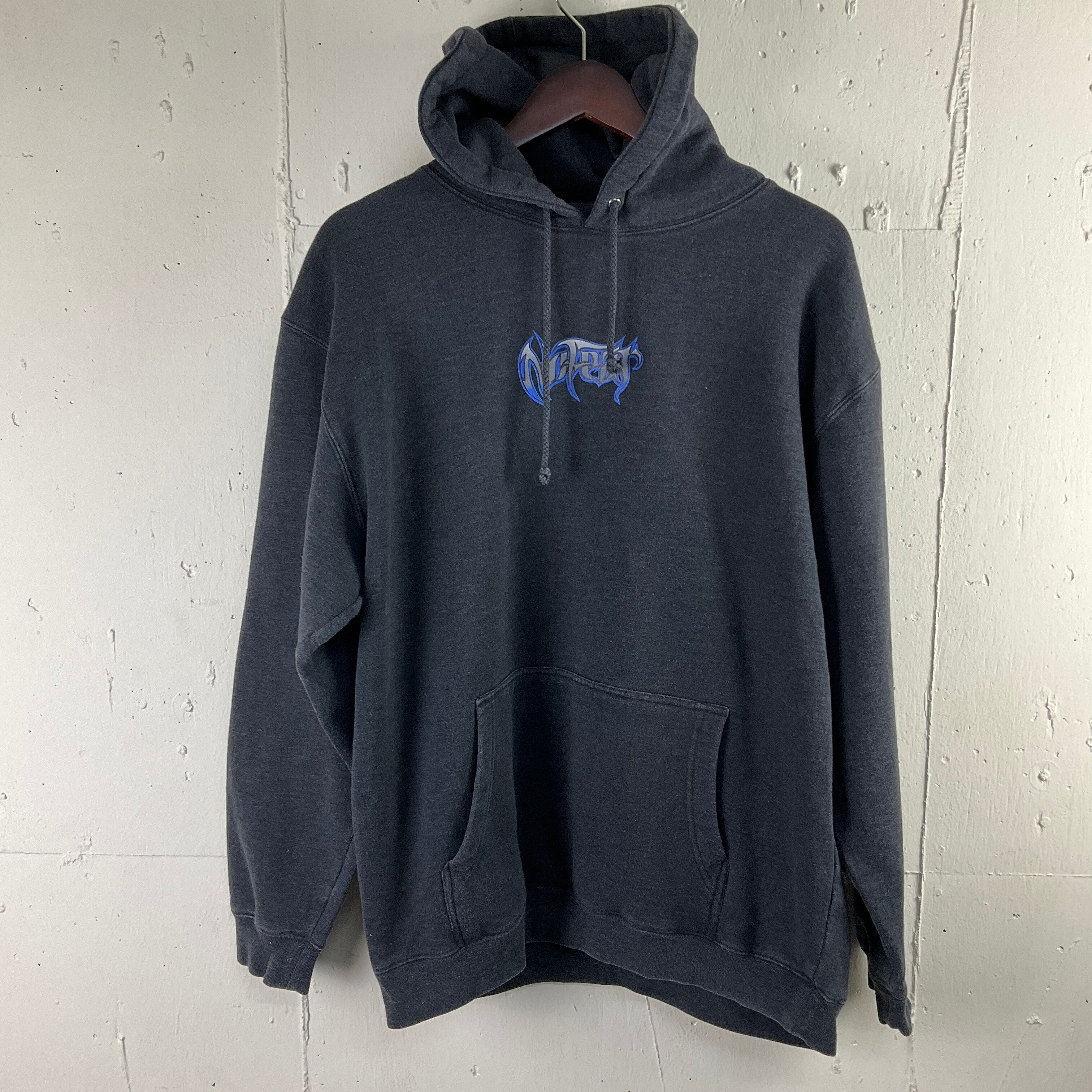 90年代 90s NO FEAR ノーフェア スウェットパーカー フーディ 裏起毛 古着 ヴィンテージ ビンテージ グレー ロゴ バックプリント スカル 骸骨 【f231201014】
