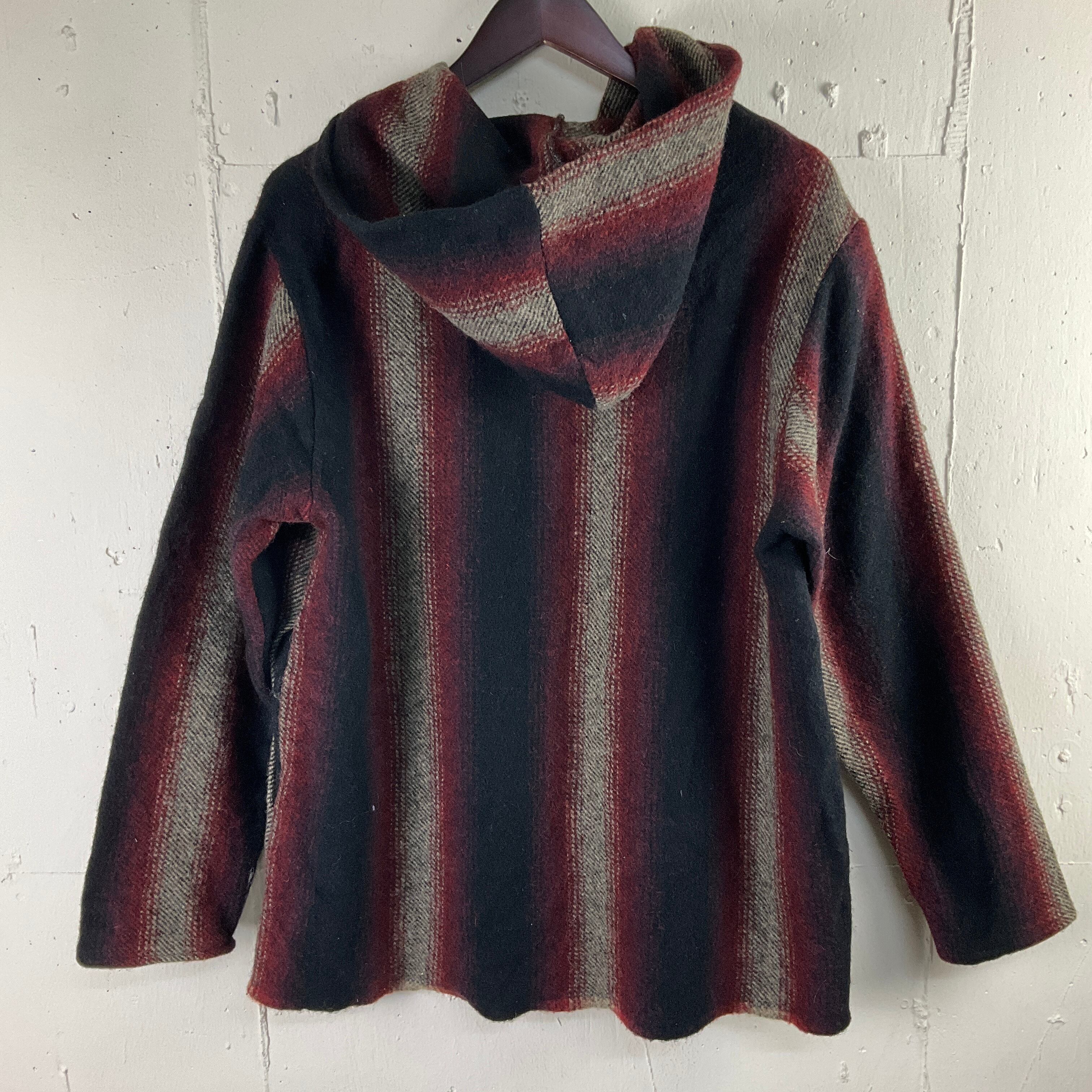 ストライプ ウール メキシカンパーカー 古着 フーディ プルオーバー レッド×ブラック 赤 黒 【f231201023】