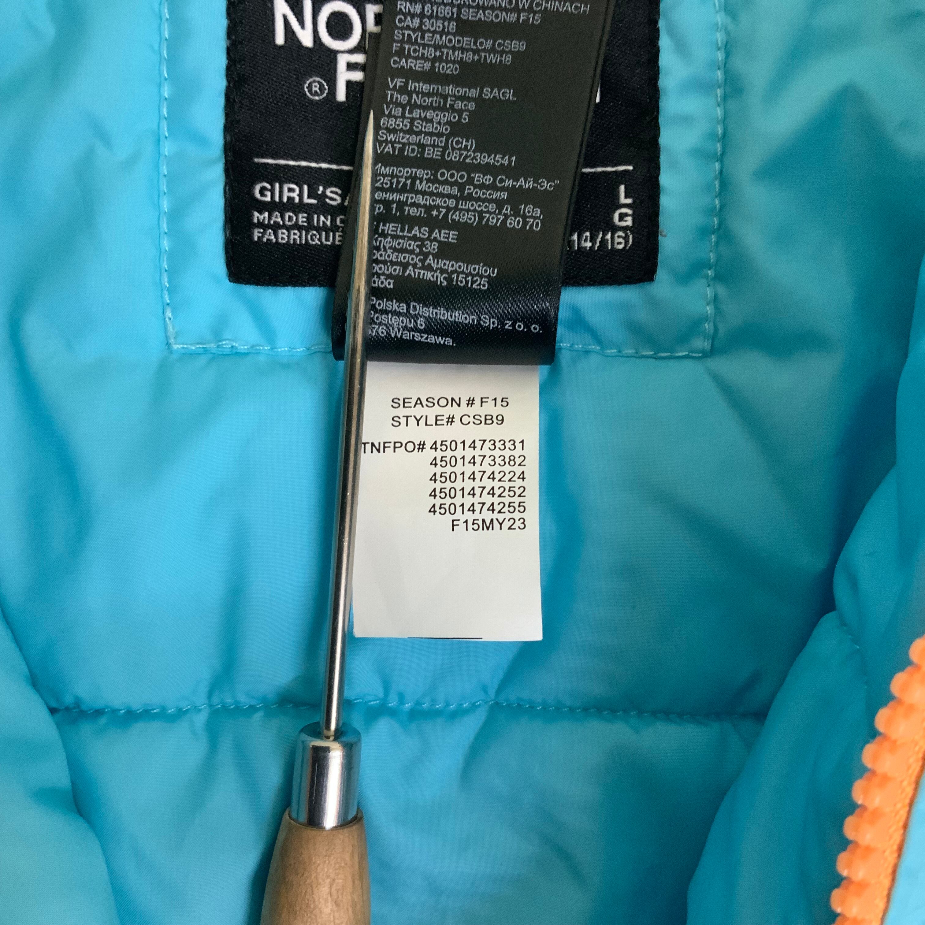 THE NORTH FACE ノースフェイス 中綿 パフジャケット インナーダウン アウトドア 古着 水色 ライトブルー ガールズ企画 L レディースS相当【f231204008】