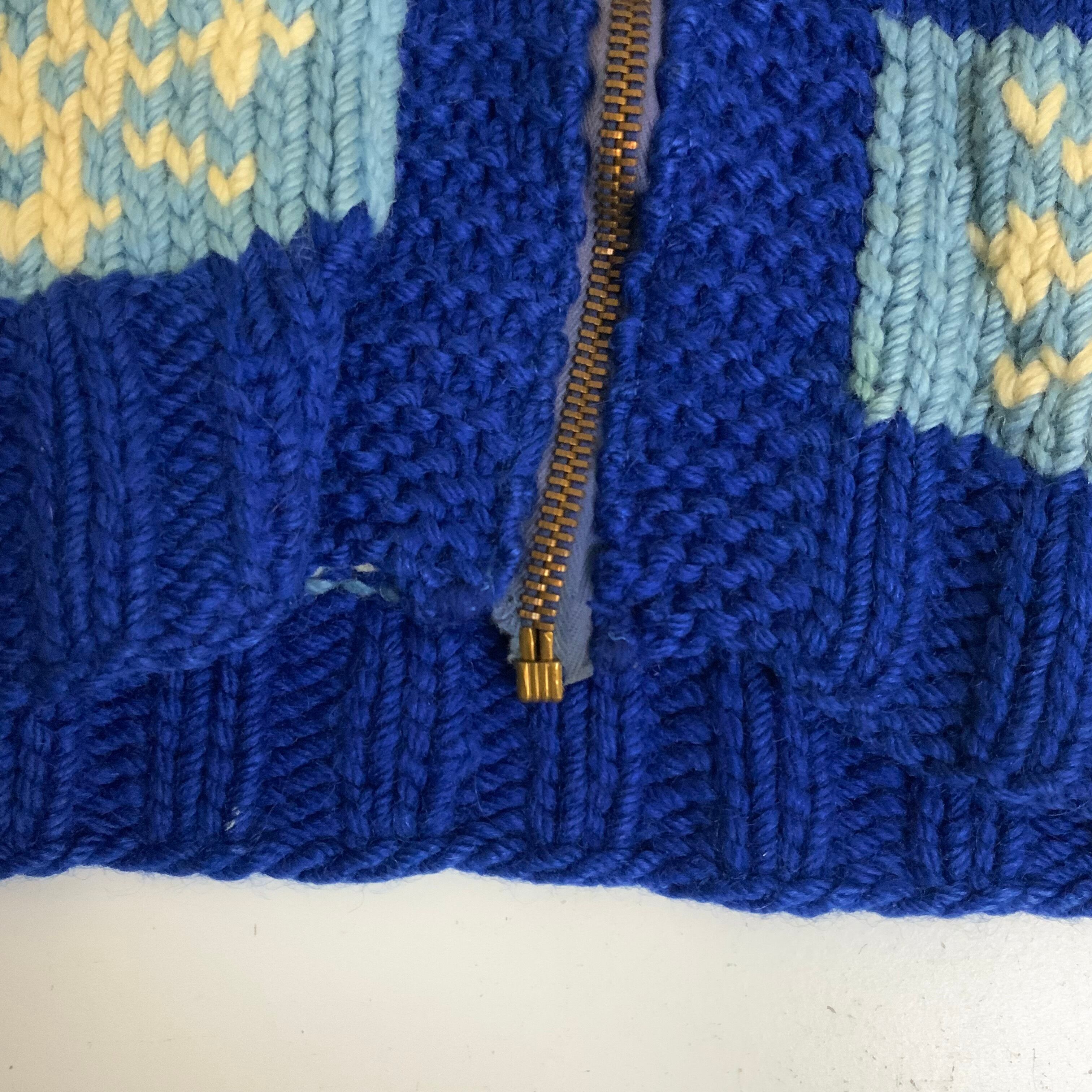 60年代 60s ノルディック柄 ウール カウチン ニット カーディガン 古着 ヴィンテージ ビンテージ レディース ブルー 青 花柄【f231204009】