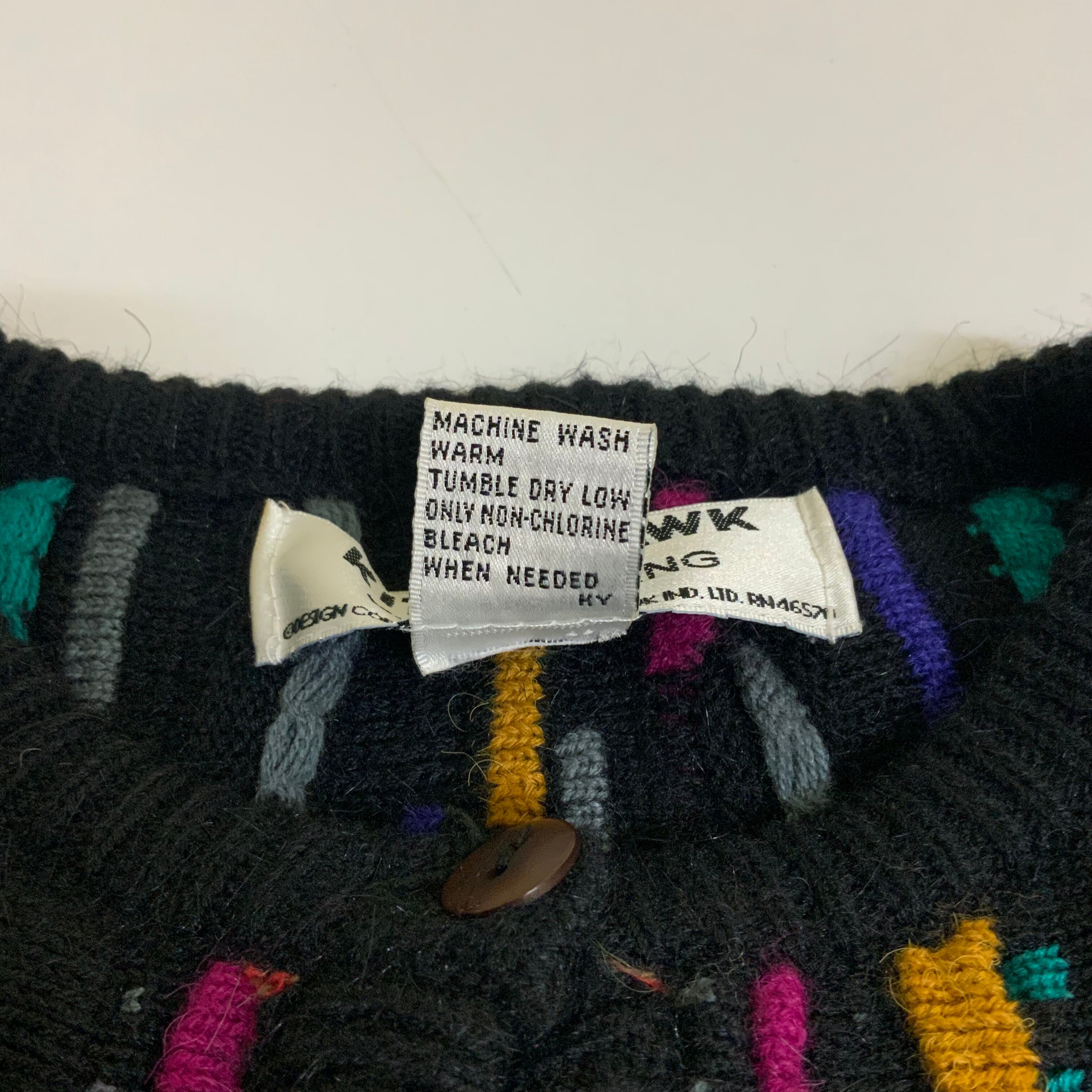 〜90年代 90s KITTY HAWK by VIVIAN WANG 3D 立体編み アクリルニット カーディガン 古着 ヴィンテージ ビンテージ レディース ブラック 黒【f231204012】