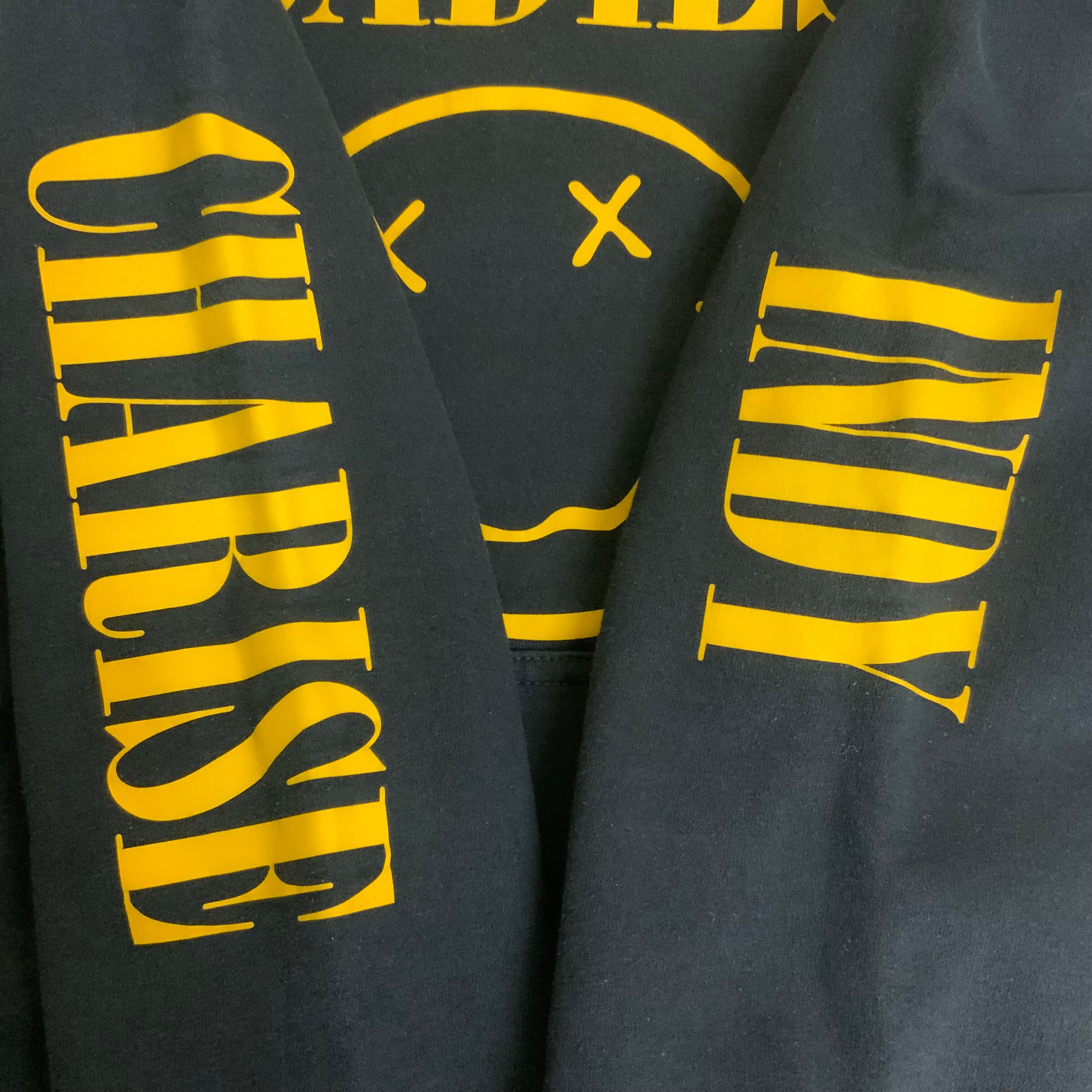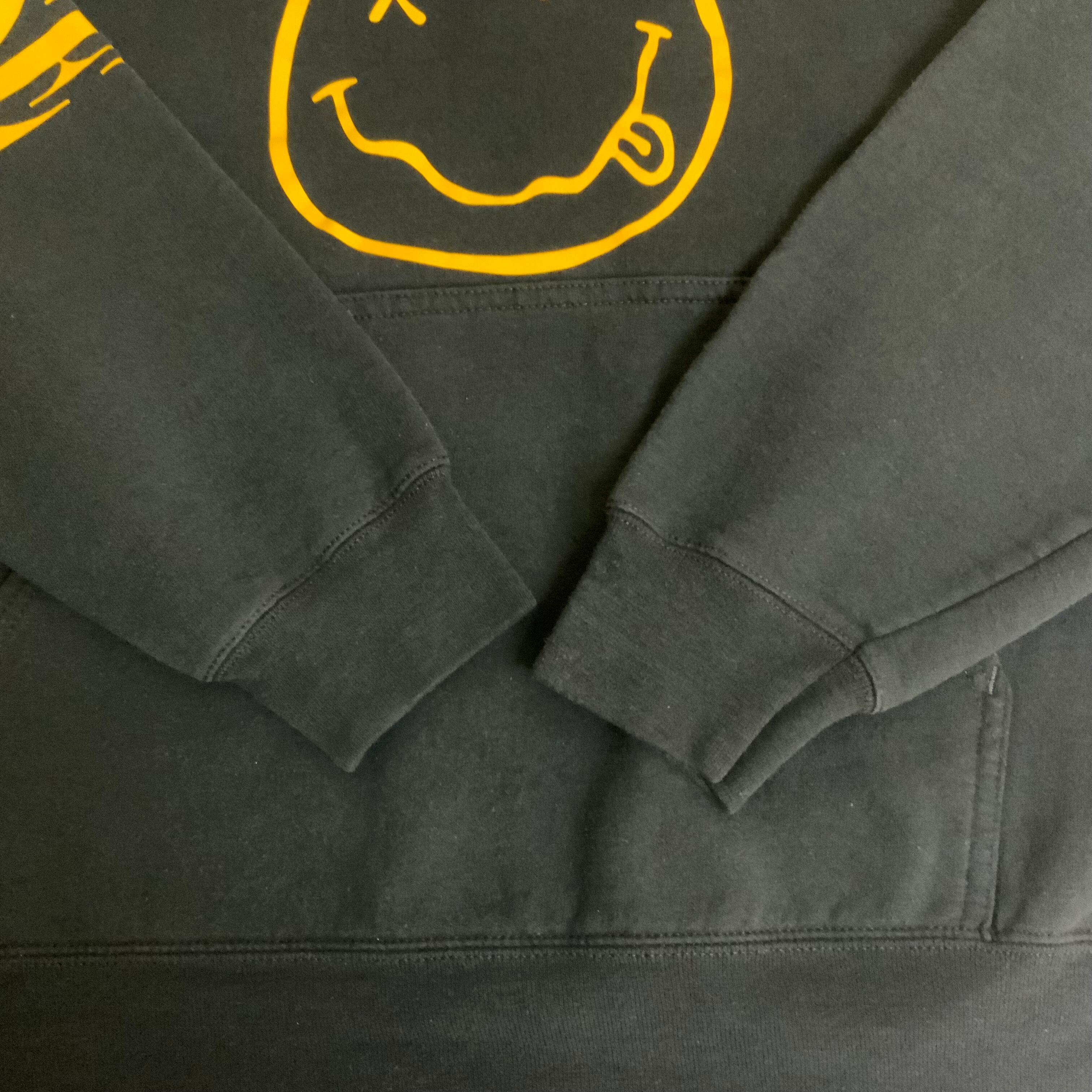 SADIES スマイル 両面 バックプリント スウェットパーカー フーディー ブラック 黒 古着 メンズM 袖プリント【f231204022】