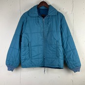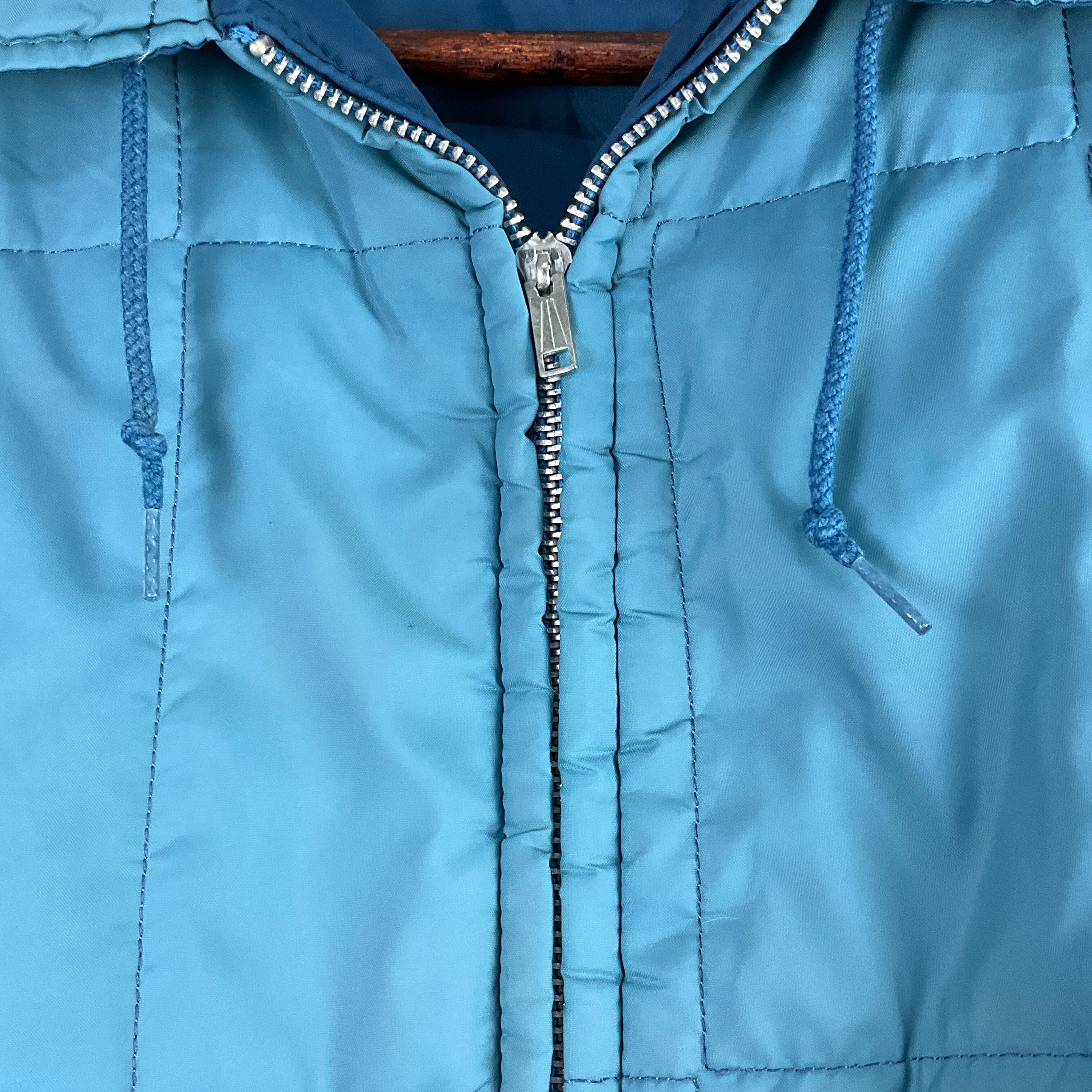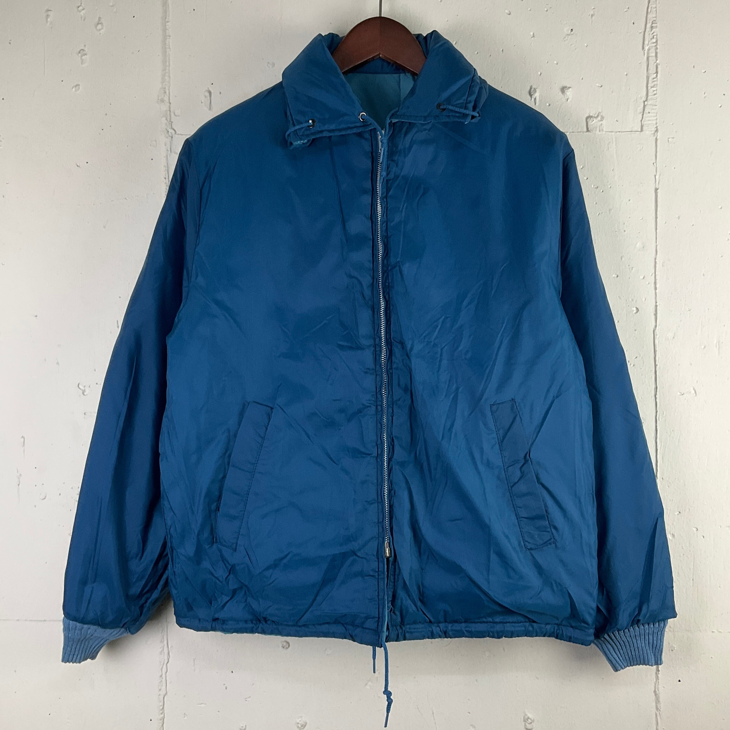 70年代 70s SEARS ROEBUCK AND CO USA リバーシブル フード収納型 無地 中綿 キルティング ジャケット メンズ 古着 ヴィンテージ ビンテージ ライトブルー×ネイビー 水色×紺【f231205003】