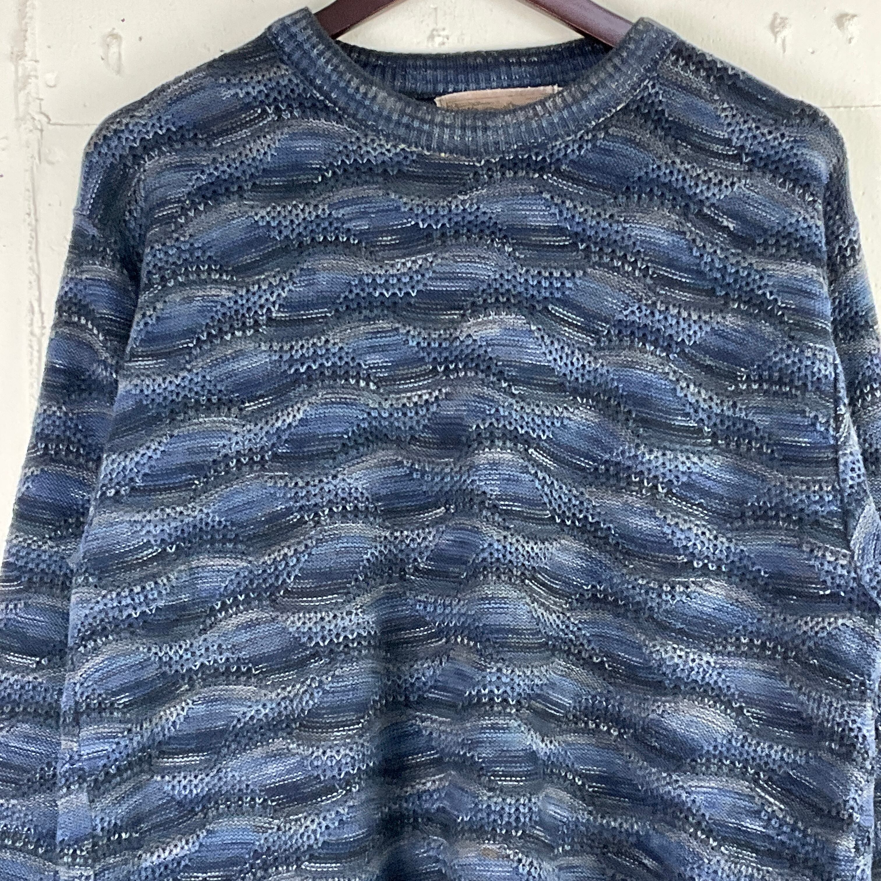 USA製 SHENANDOAH 総柄 コットン ニットセーター 古着 メンズM ネイビー 紺【f231205007】