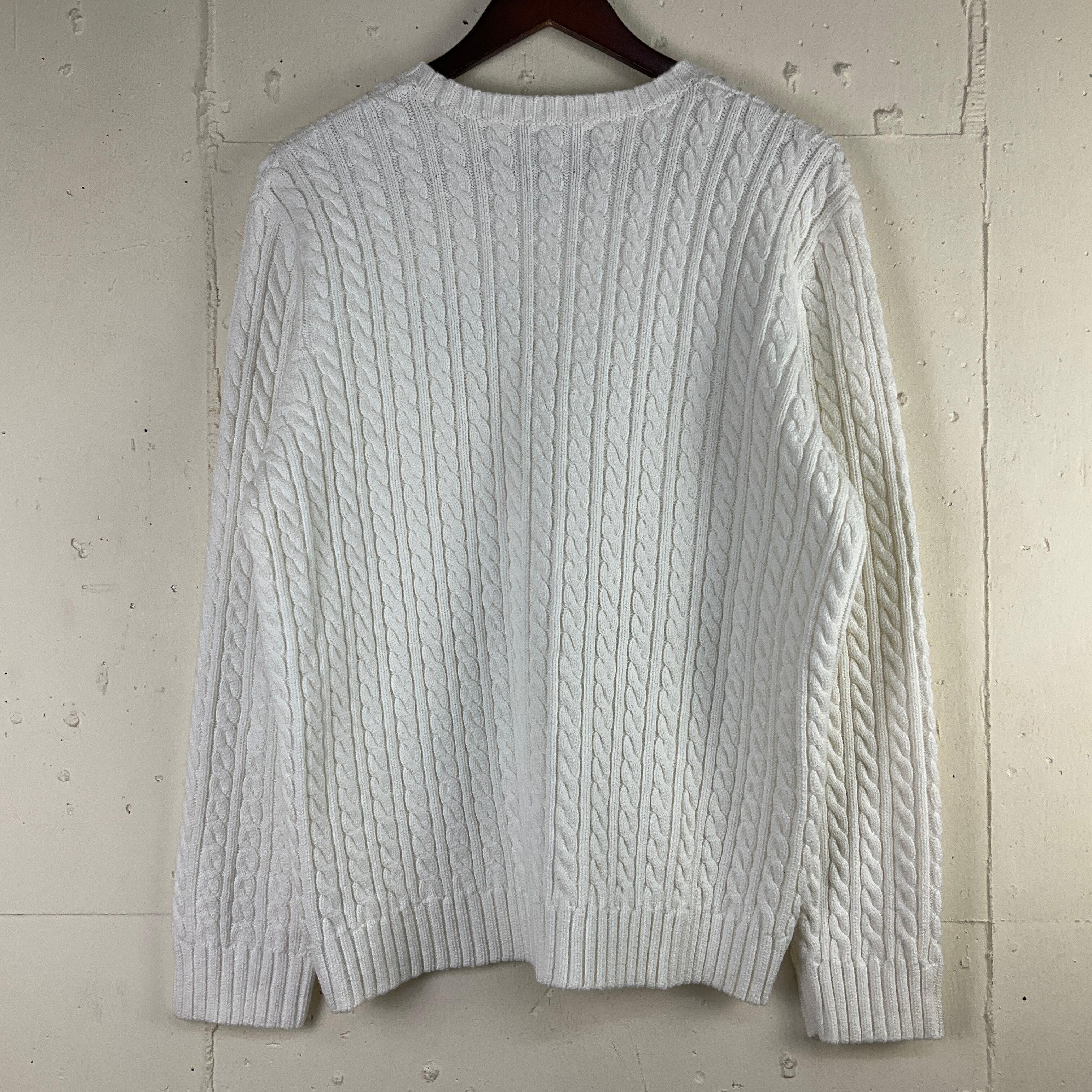 タグ付 新品未使用品 Ralph Lauren ラルフローレン ケーブル コットン ニットセーター 古着 レディースXL ホワイト 白 ワンポイントロゴ刺繍【f231205011】