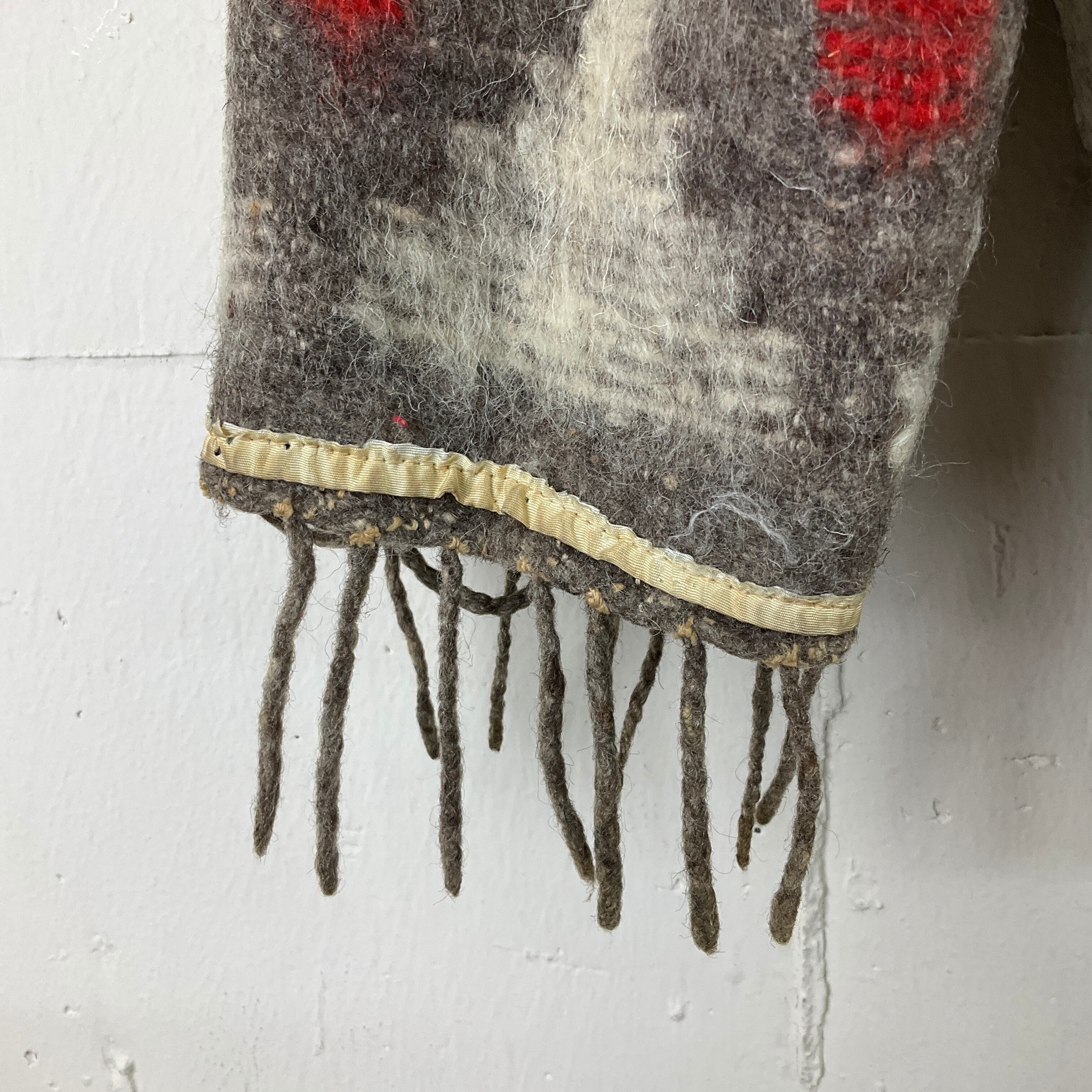 【状態】裏地ボロで切り取ってます。襟裏裏地ダメージ、所々生地が薄くなっていたり、汚れございます。フリンジ1つ⚪︎になってます。全体使用感あり。画像にてご確認ください。