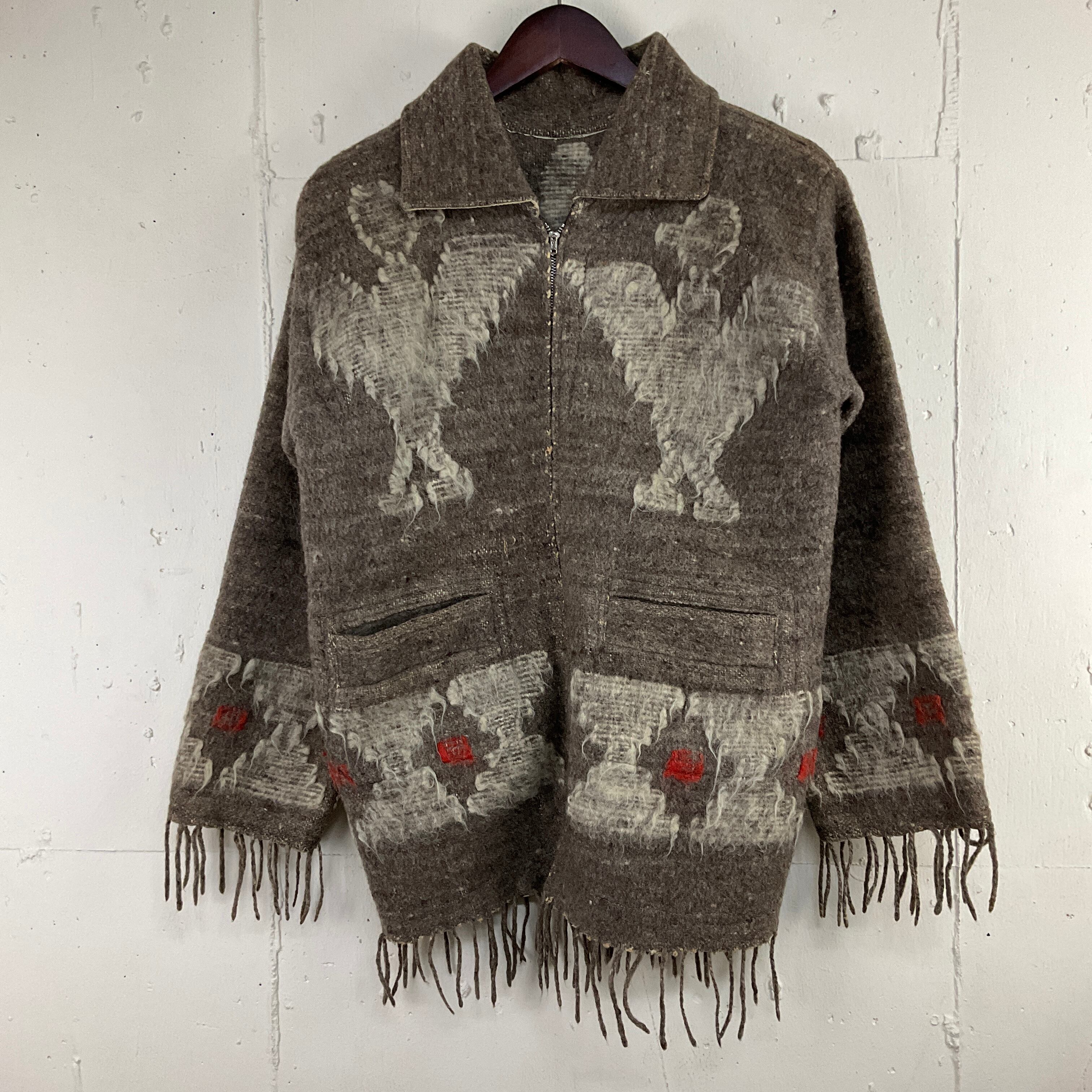 60年代 60s サンダーバード ネイティブ フリンジ ブランケットジャケット 古着 ラグ ビンテージ ヴィンテージ ブラウン 茶色 片爪ピンロック【f231206003】