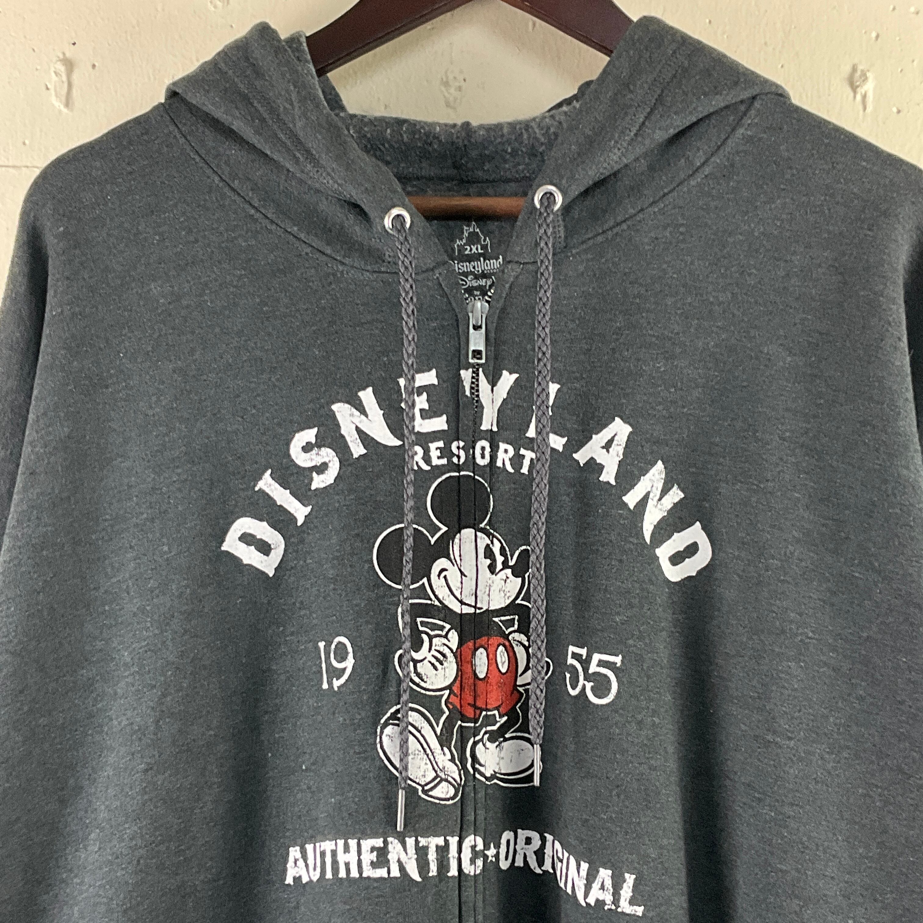 ディズニーランド ミッキーマウス キャラクター プリント フルジップ スウェットパーカー フーディ メンズ2XL レディース 古着 グレー Disney ディズニー 大きいサイズ ビッグサイズ【f231206009】