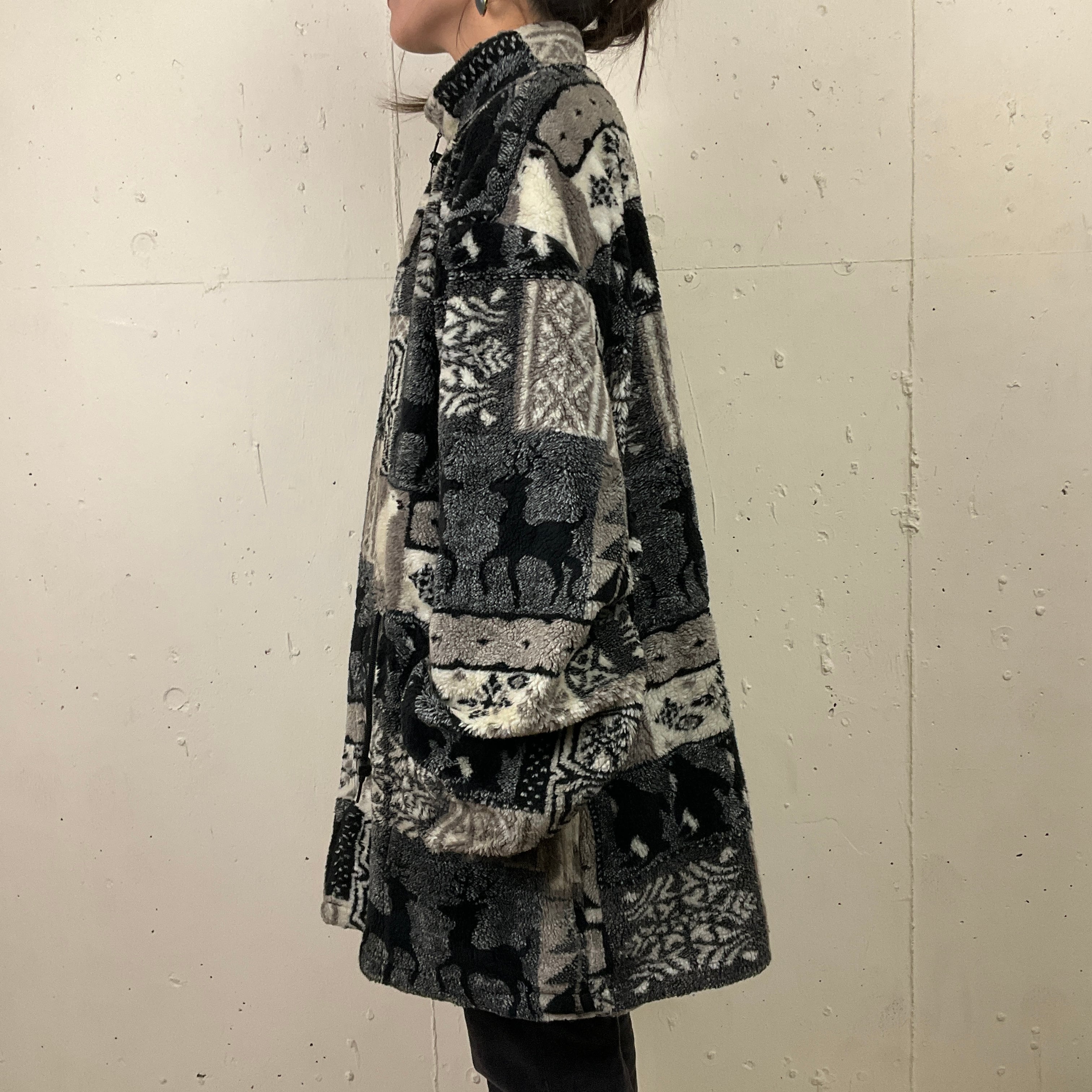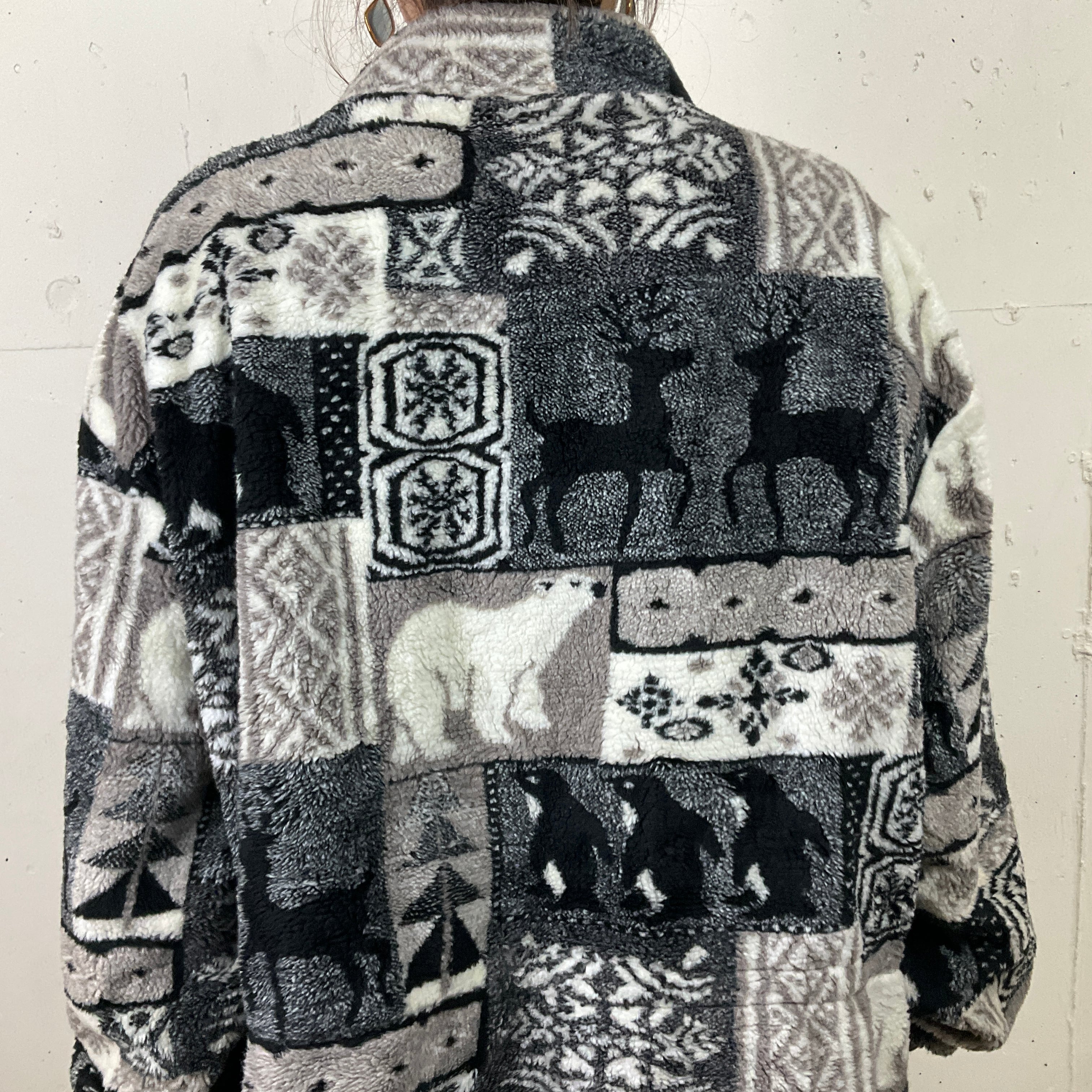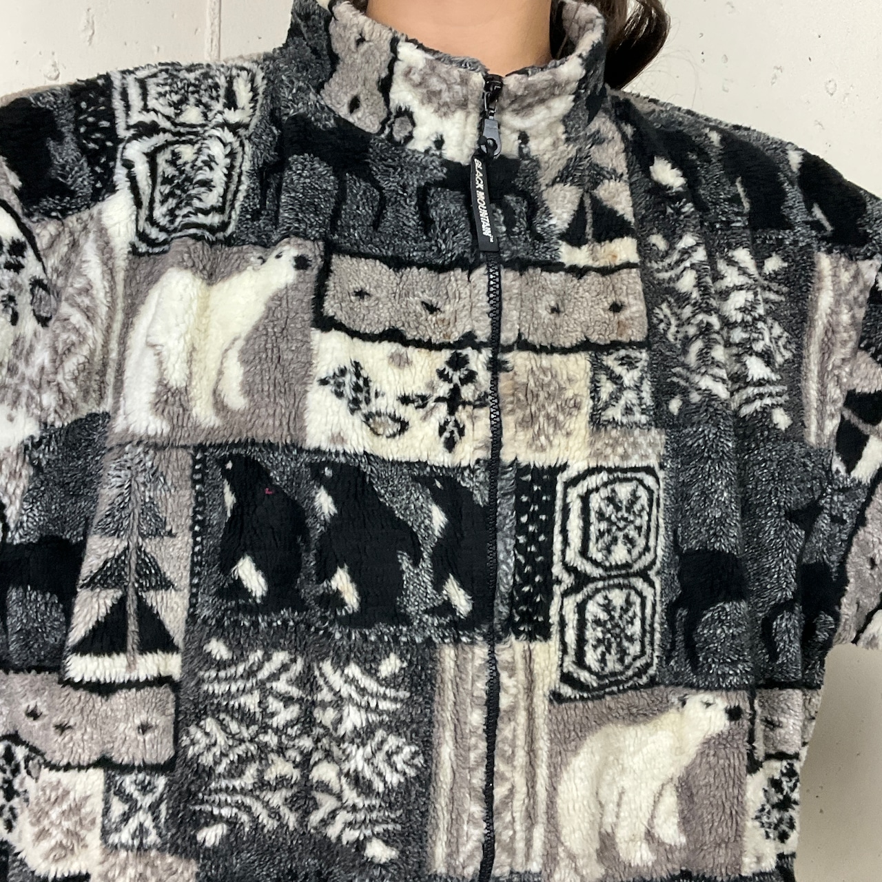 USA製 90年代 90s BLACK MOUNTAIN ブラックマウンテン アニマル柄 ボア フリースジャケット 3XL 古着 ビッグサイズ 大きいサイズ 総柄 動物【f231211002】