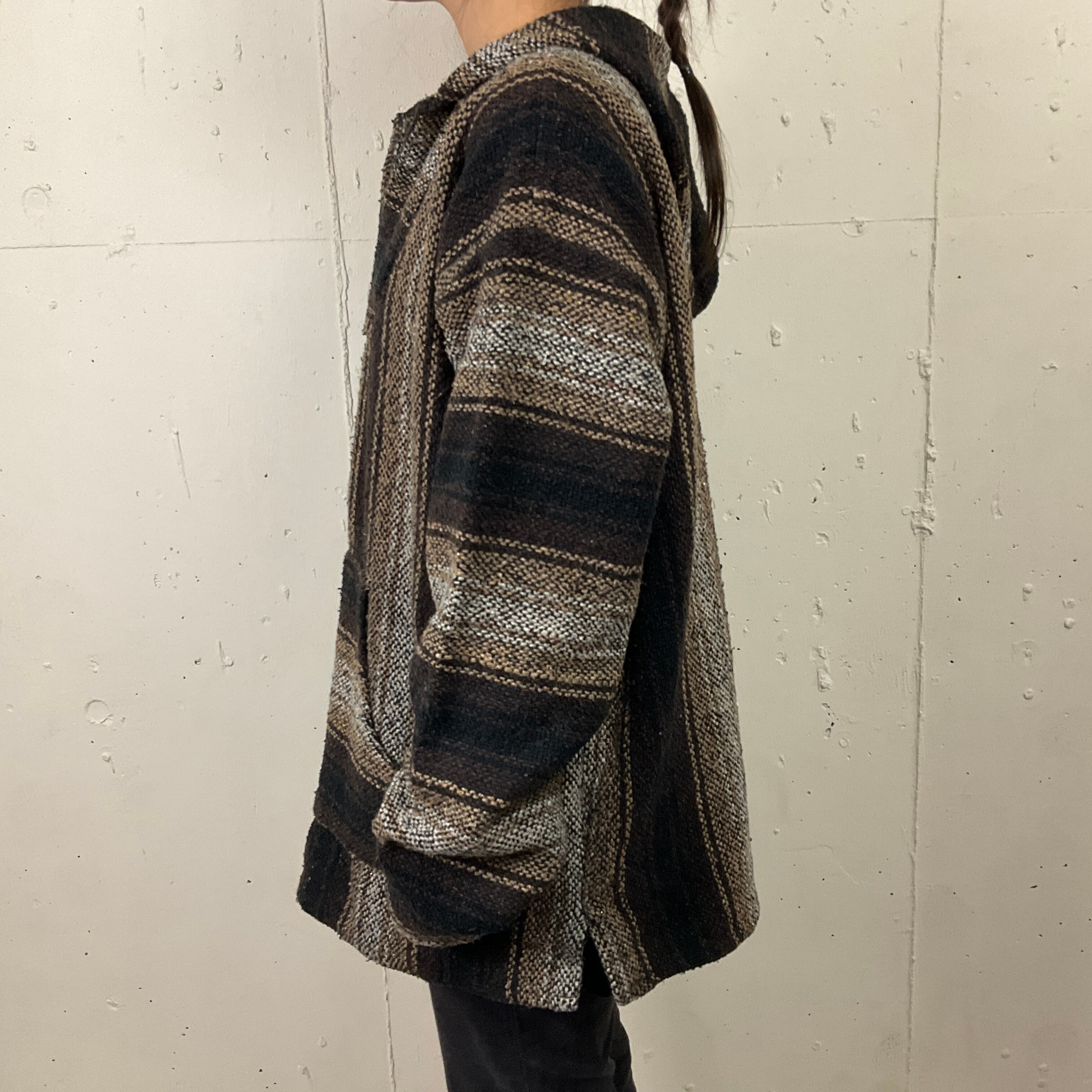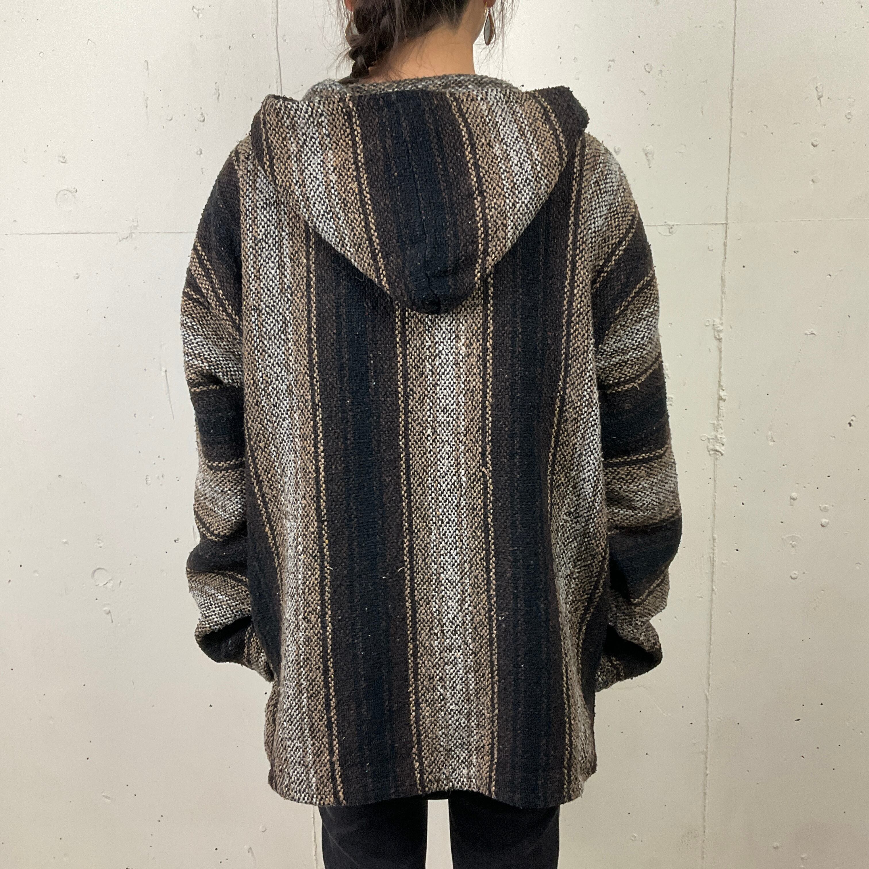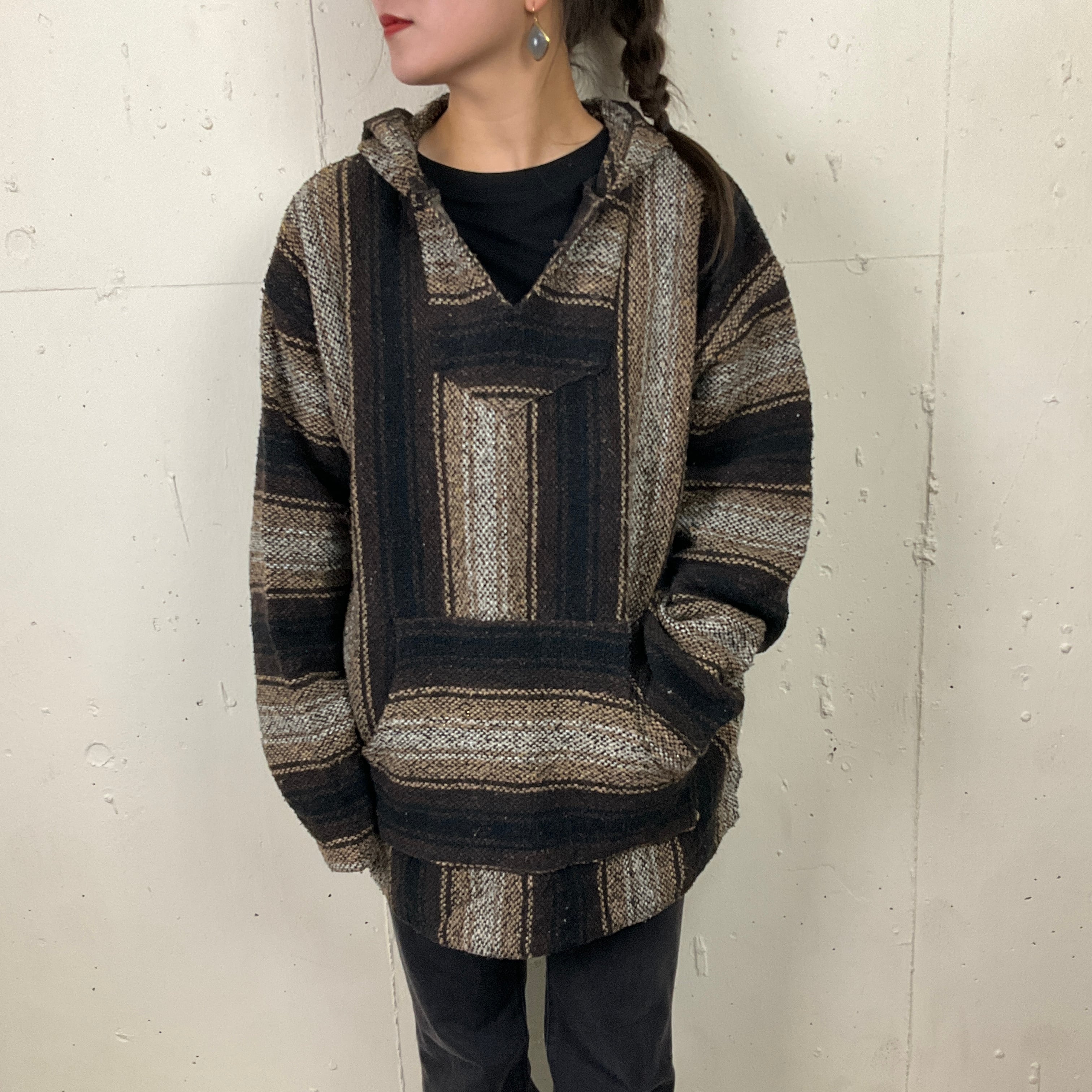 ストライプ メキシカンパーカー フーディー メンズ レディース 古着 ブラウン【f231211004】