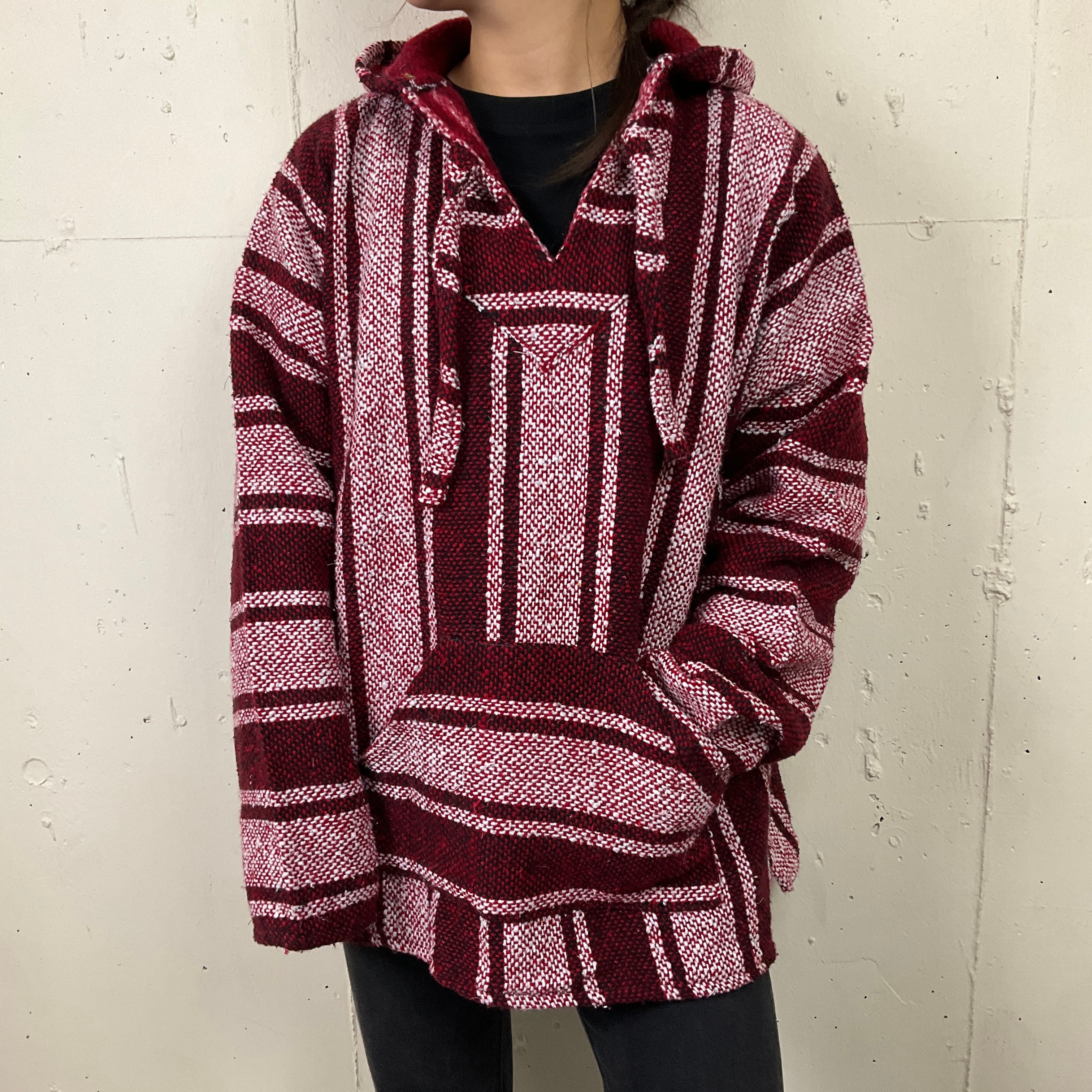 メキシコ製 ART-MAZ ストライプ メキシカンパーカー フーディー メンズ レディース 古着 レッド 赤 メキパ【f231211007】