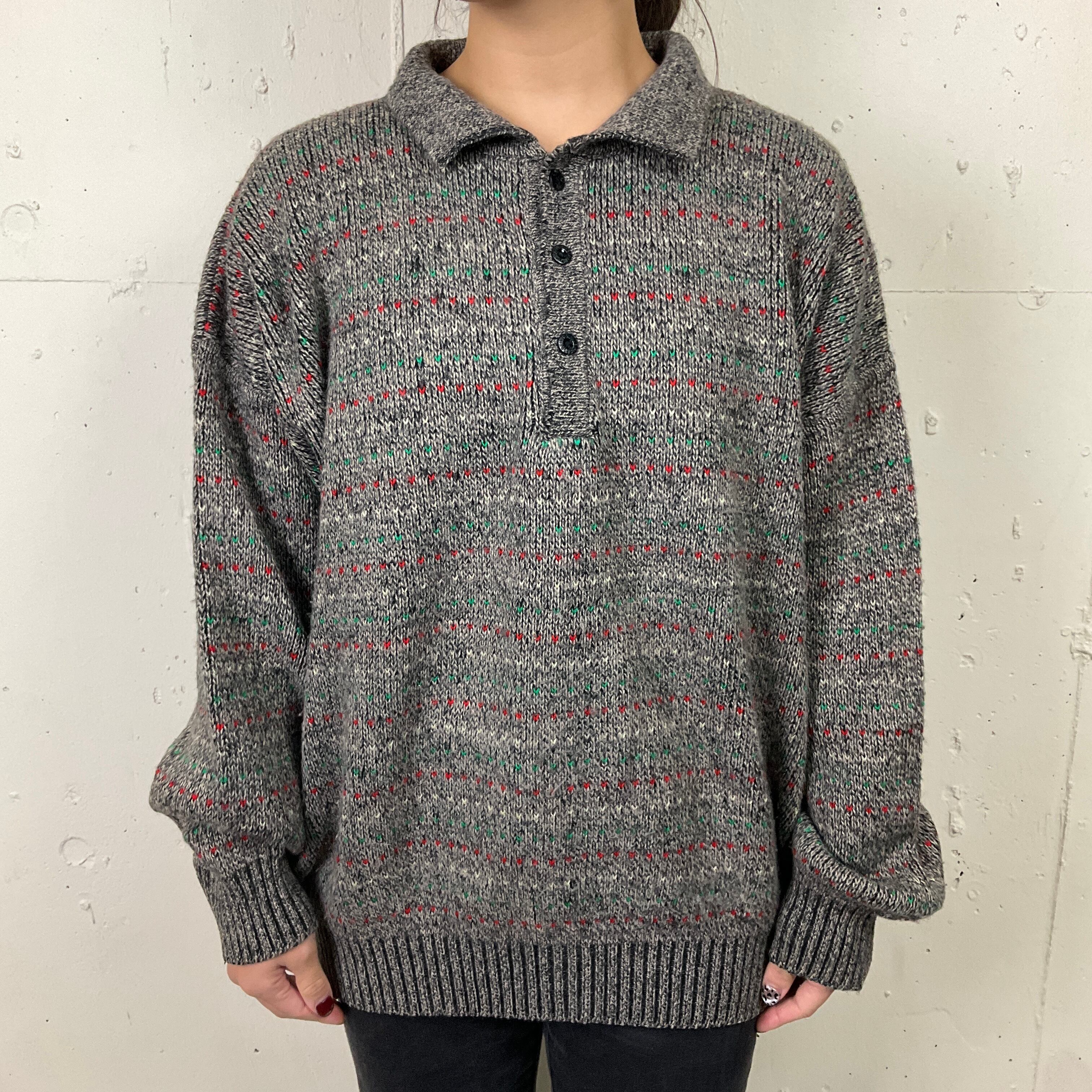 SPORTING CLUB スポーティングクラブ 襟付き ハーフボタン ニット セーター 古着 メンズ グレー【f231212006】