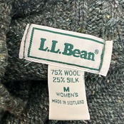 スコットランド製 L.L.Bean エルエルビーン 無地 シルク混 ウール デザイン ニット カーディガン 古着 カーキグリーン 緑 レディース M【f231212007】