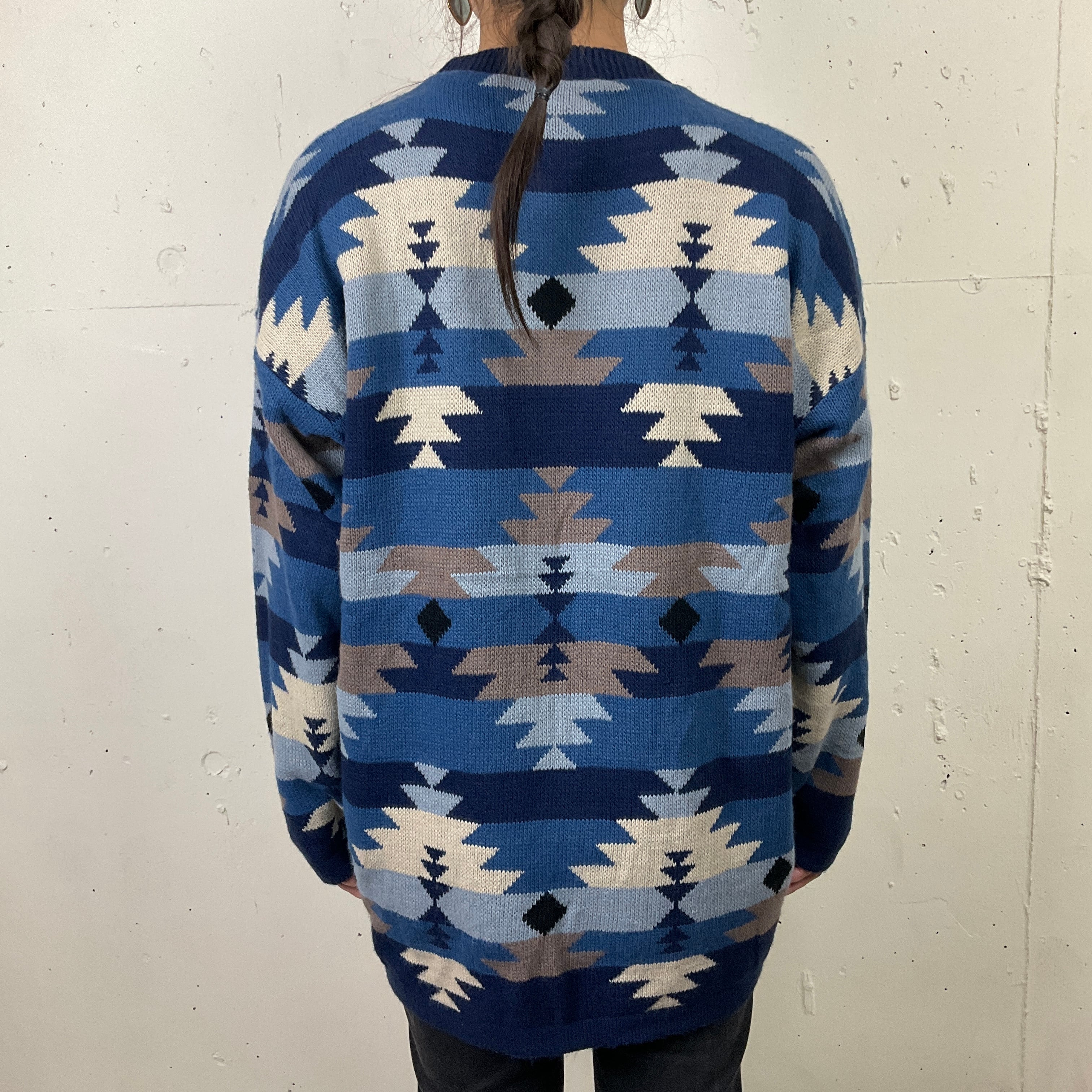 USA製 デッドストック ネイティブ柄 総柄 アクリル ニットセーター 古着 メンズ レディース フリーサイズ【f231212008】
