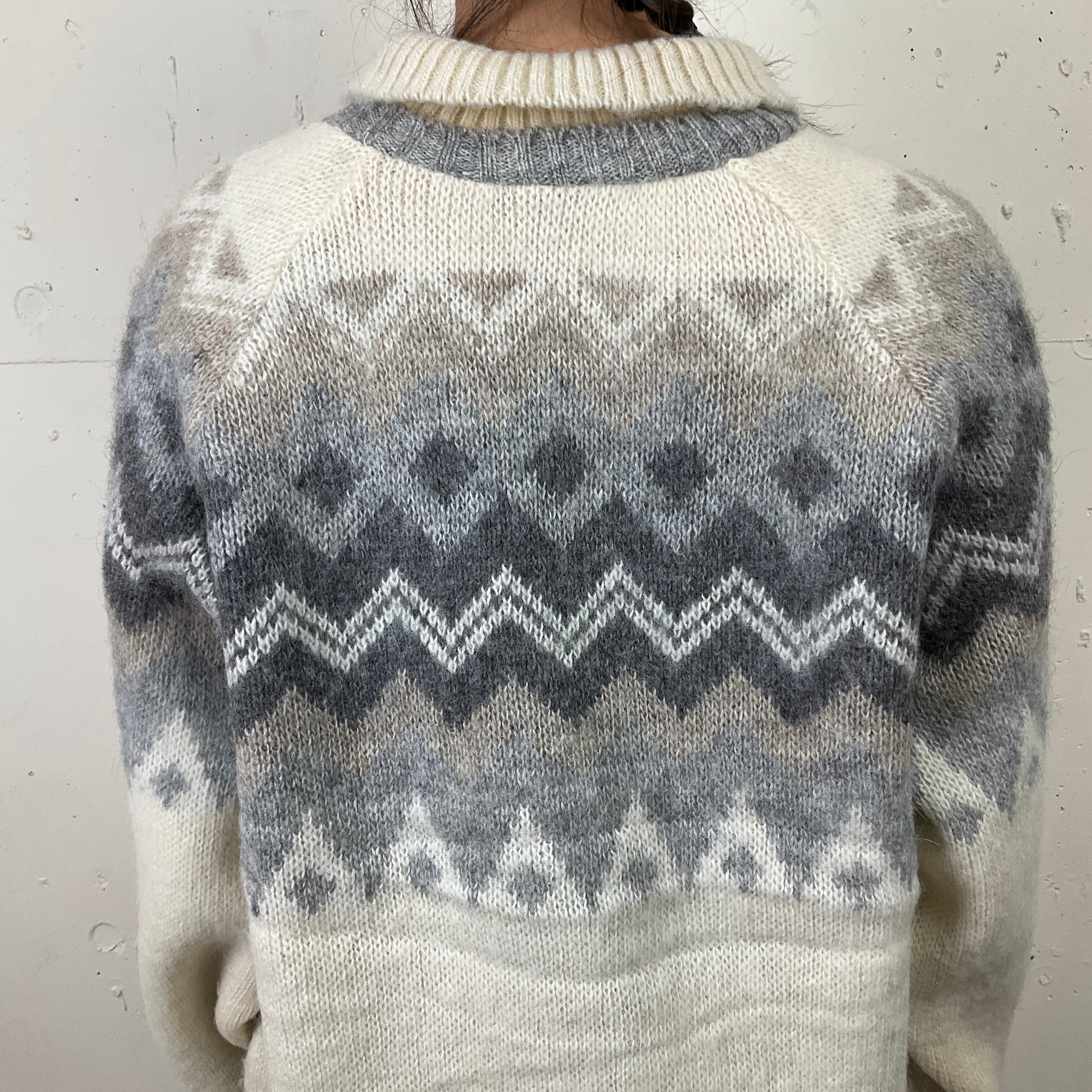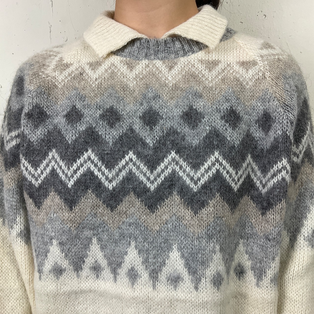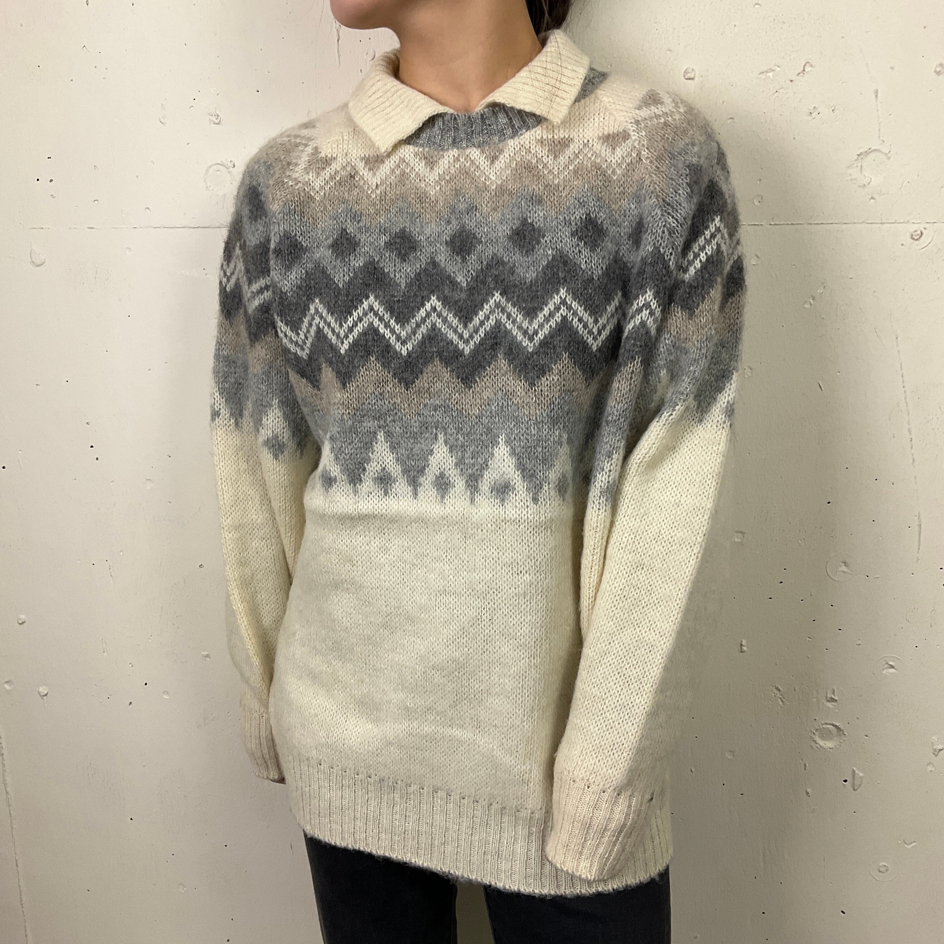80年代 80s アイスランド製 Hilda Ltd 襟付き ウール ノルディック ニット セーター 古着 オフホワイト 白 ヴィンテージ ビンテージ レディース M【f231212009】