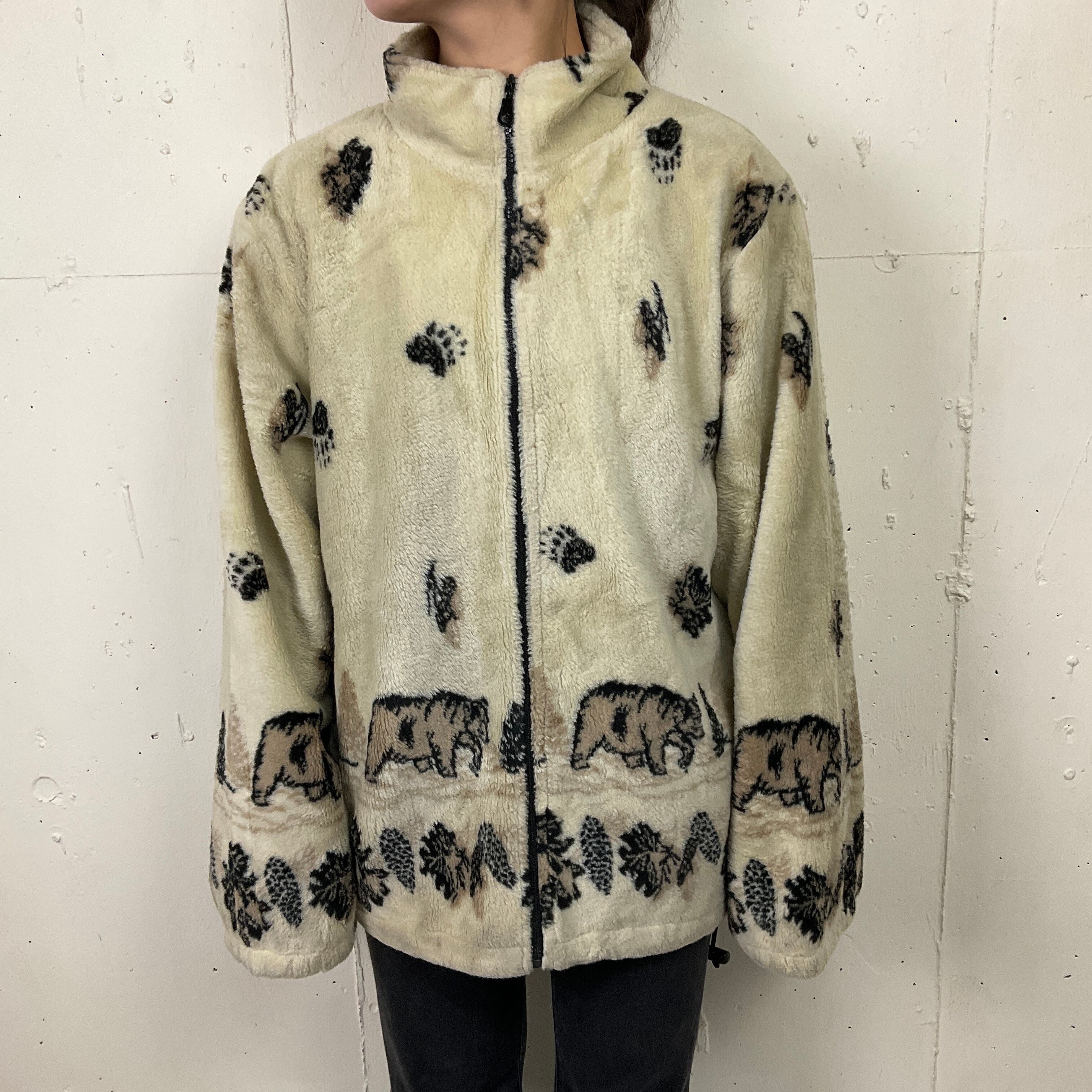 GLACIER GEAR くま アニマル柄 ボア フリースジャケット M 古着 メンズ レディース 総柄【f231212015】
