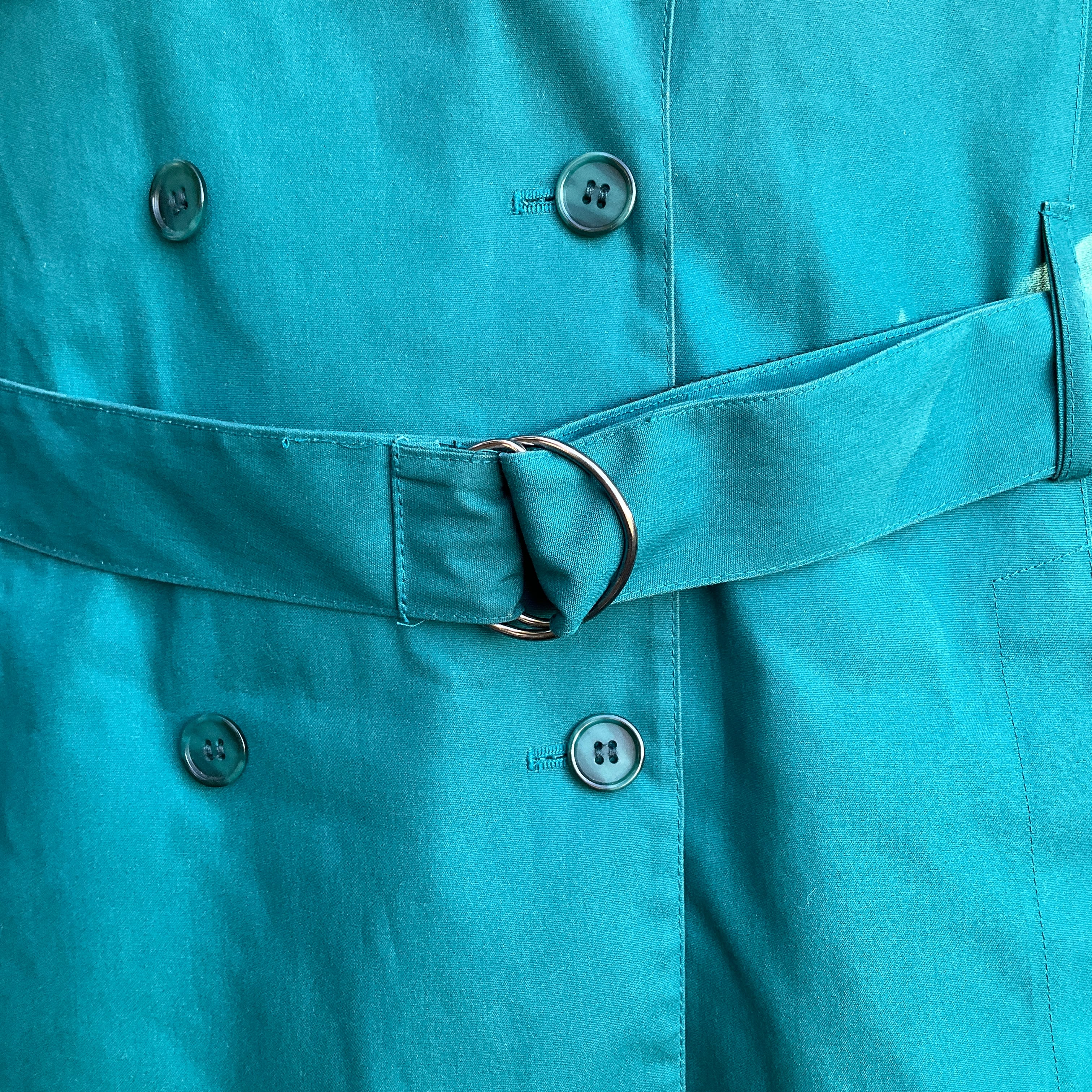 USA製 90年代 90s London Fog ロンドンフォグ トレンチコート ロングコート レディース8 古着 ヴィンテージ ビンテージ チェックライナー付 エメラルドグリーン 青緑【f231214004】