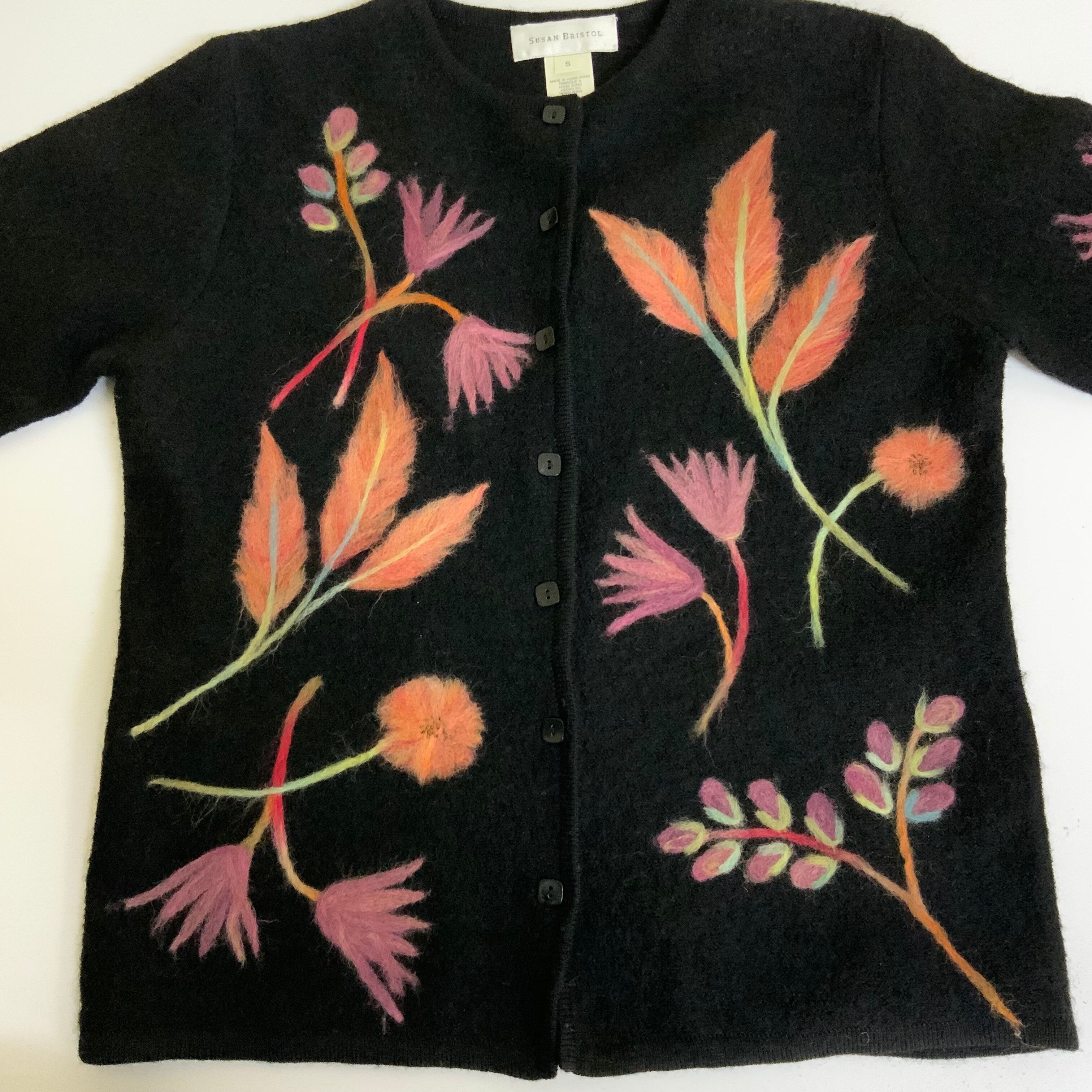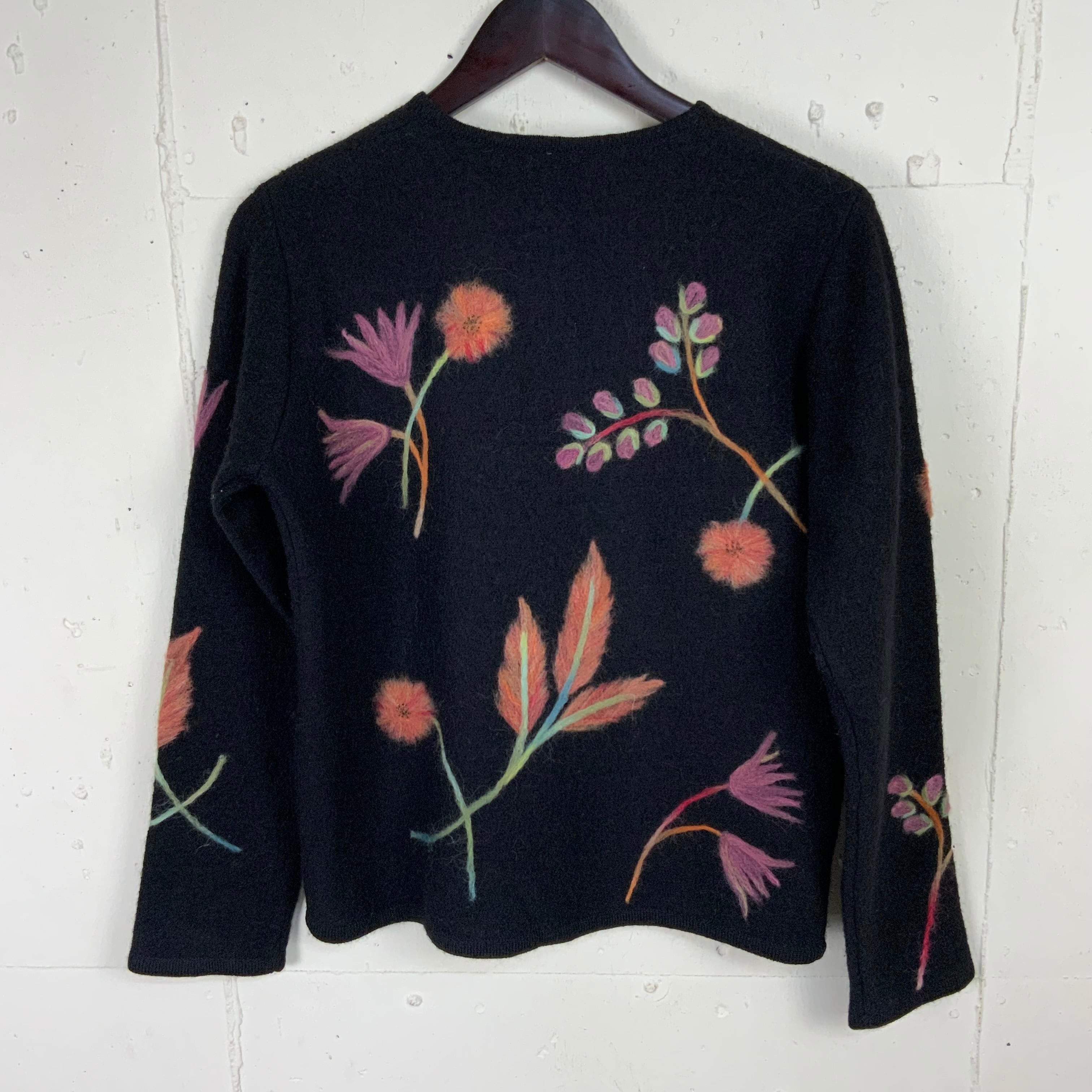 00年代 00s SUSAN BRISTOL スーザンブリストル 花 刺繍 ウール ニット カーディガン 古着 ヴィンテージ ビンテージ レディースS ブラック 黒【f231214015】