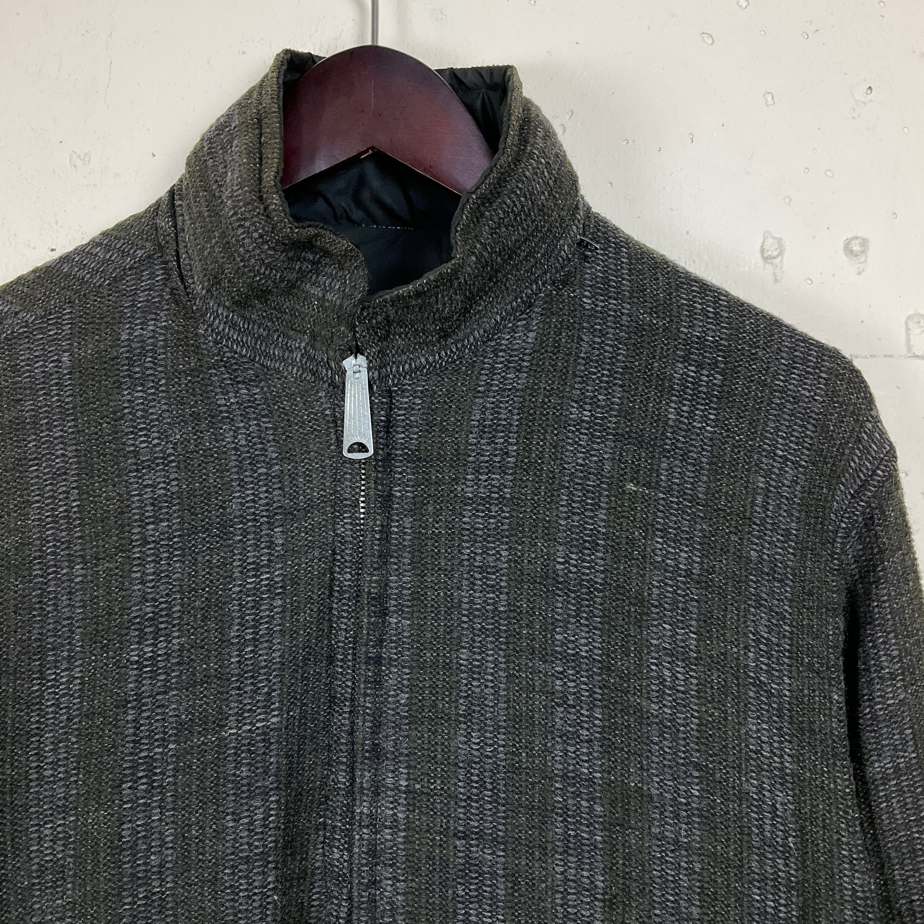 70年代 70s Sportcaster リバーシブル ブルゾン 無地 古着 ヴィンテージ ビンテージ ブラック×グリーン系 ナイロン×アクリル フード収納型【f231222001】