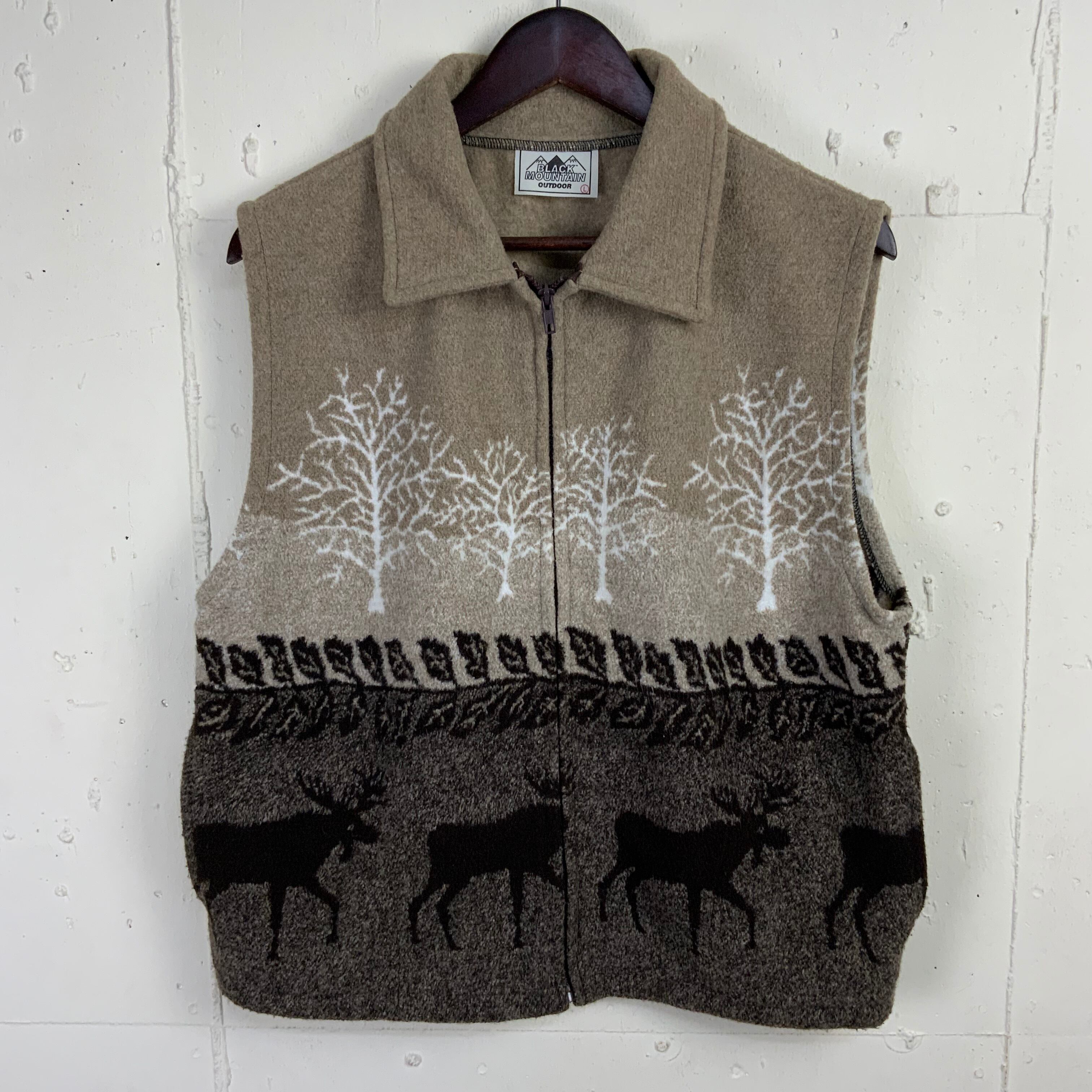 USA製 90年代 90s BLACK MOUNTAIN ブラックマウンテン アニマル柄 トナカイ フルジップ ベスト レディースL 古着 ブラウン 茶色 ヴィンテージ ビンテージ【f231226004】