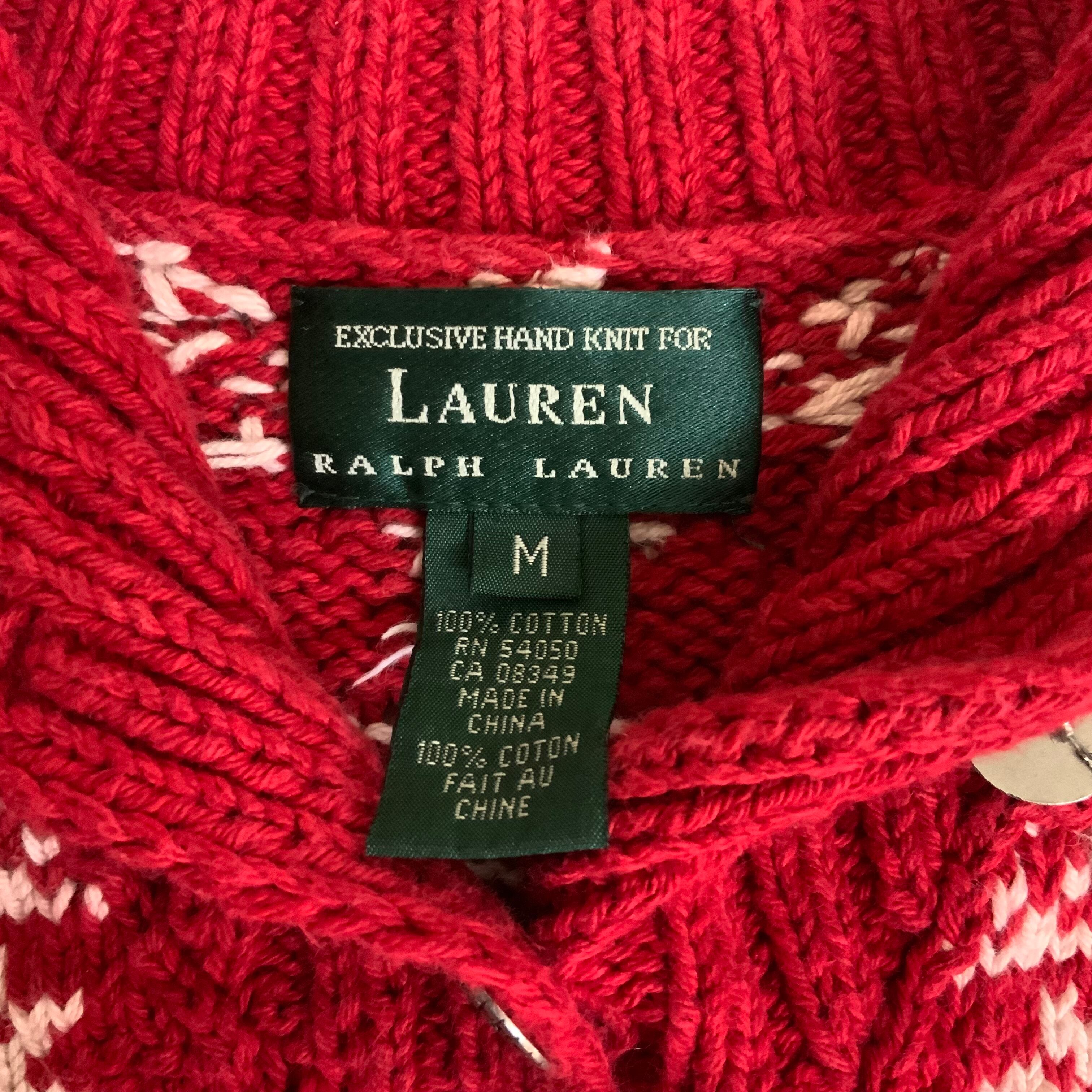 Ralph Lauren ラルフローレン ノルディック柄 総柄 コットン ニットセーター 古着 レディースM レッド 赤【f231226005】