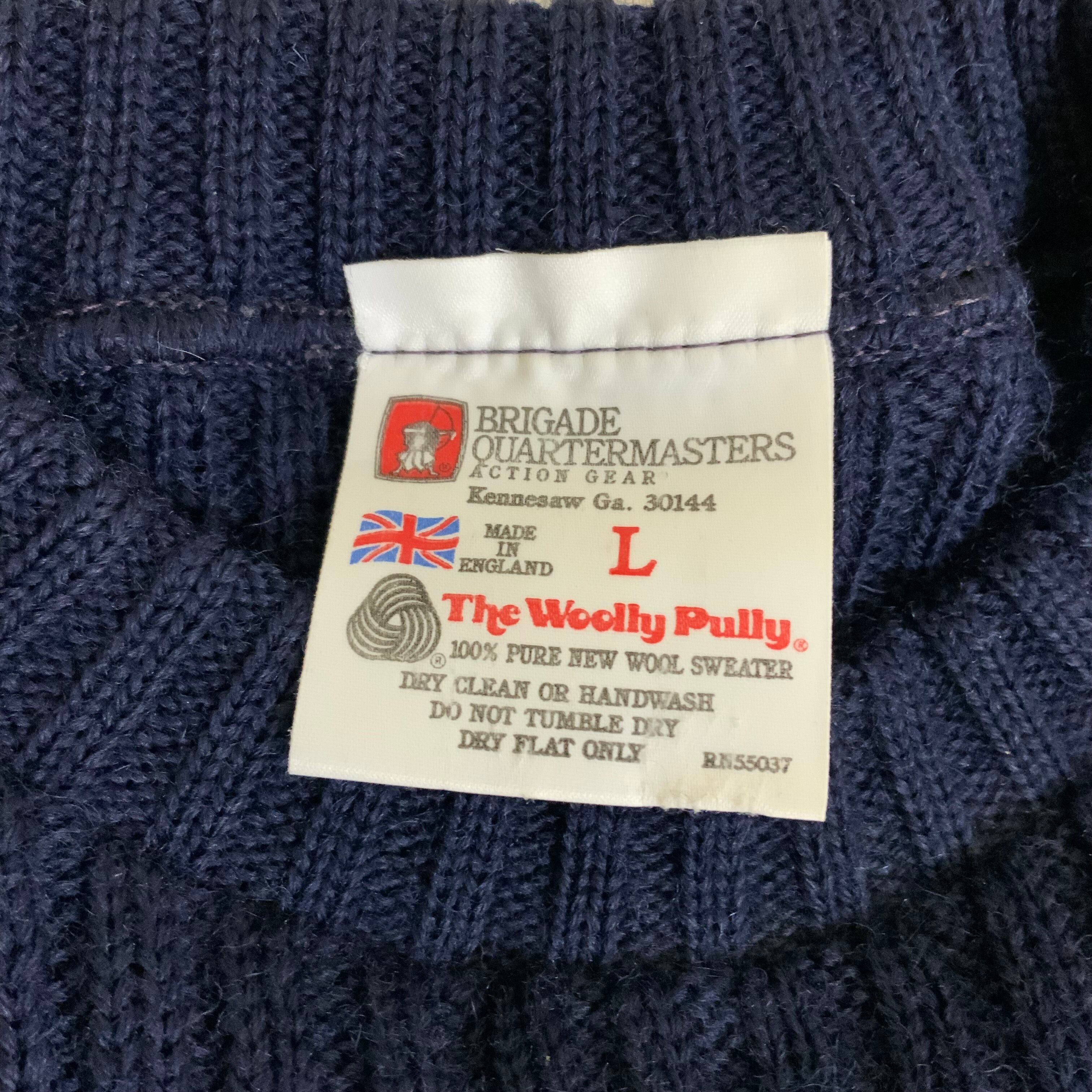 イングランド製 BRIGADE OUARTERMASTERS ミリタリー 民間品 エポレット セーター 古着 メンズL ウール リブ ニットセーター ネイビー 紺【f231226008】