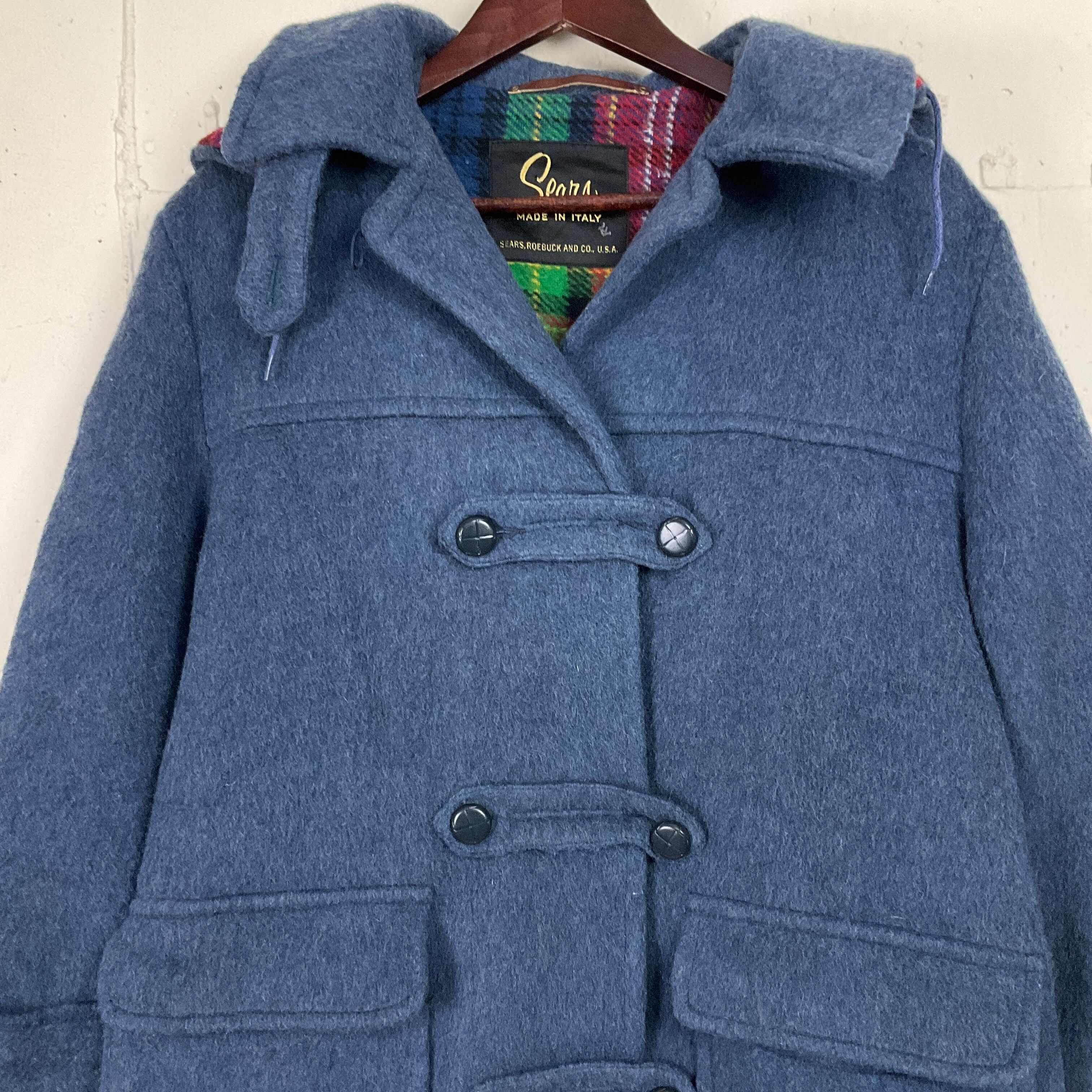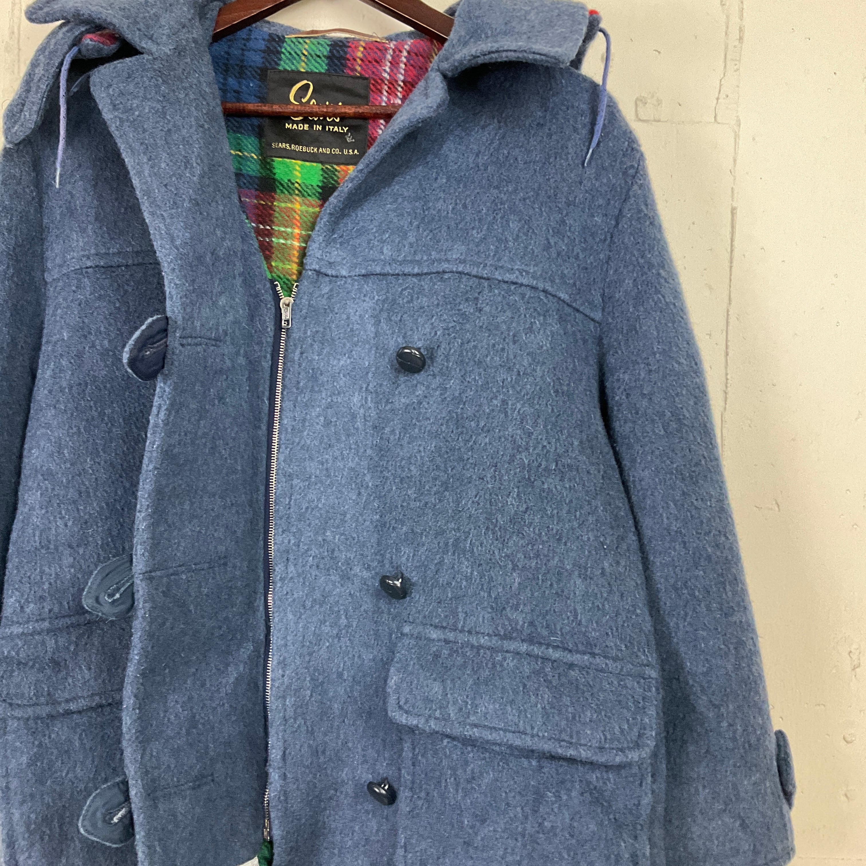 イタリア製 sears シアーズ ヴィンテージ ダッフルコート 古着 ビンテージ グレー チェックライナー フード着脱式 メンズ レディース 【f231226013】