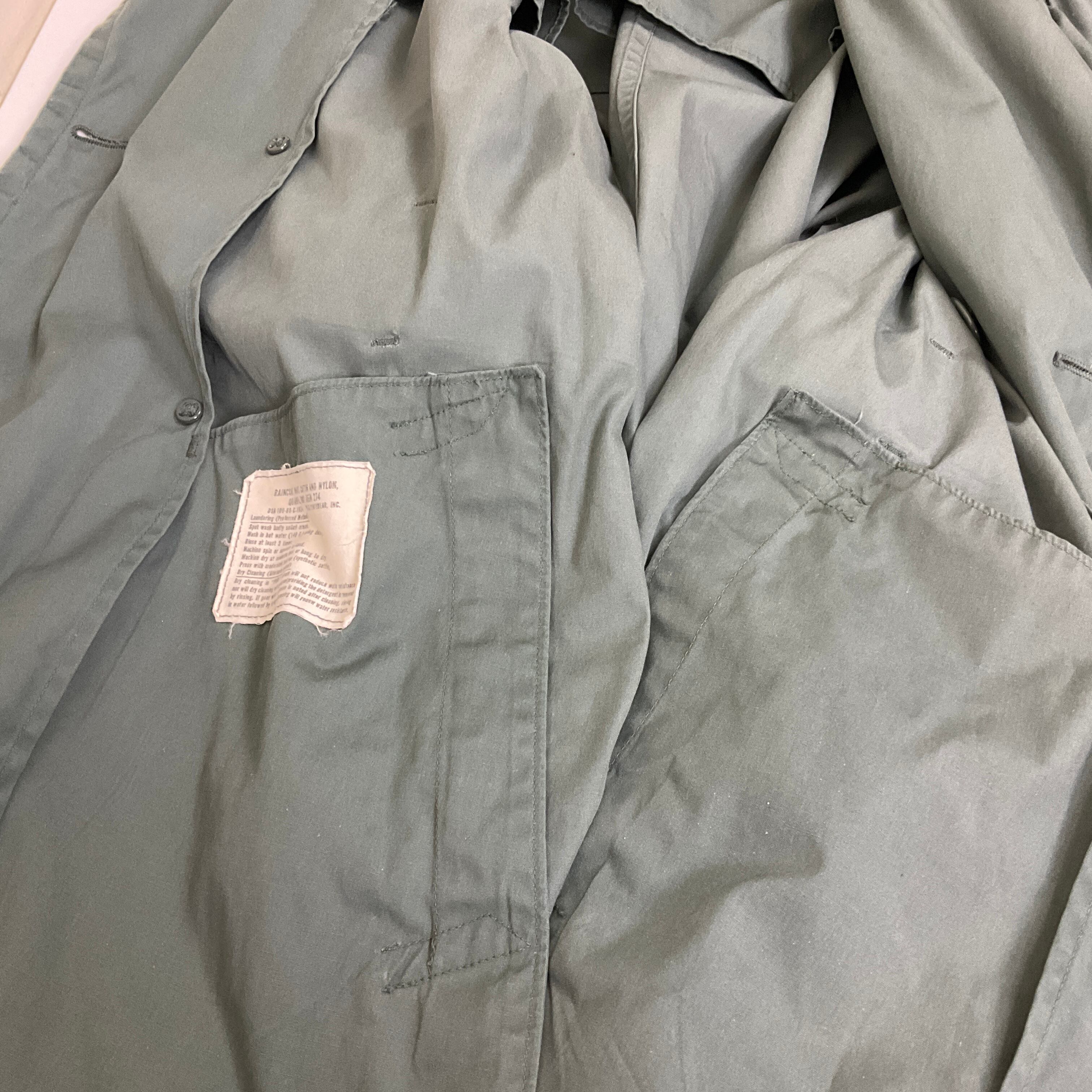 68年納品 米軍実物 ミリタリー レインコート メンズM相当 38R 古着 防水 アーミー グリーン 緑 60年代 60s ヴィンテージ ビンテージ【f240117002】