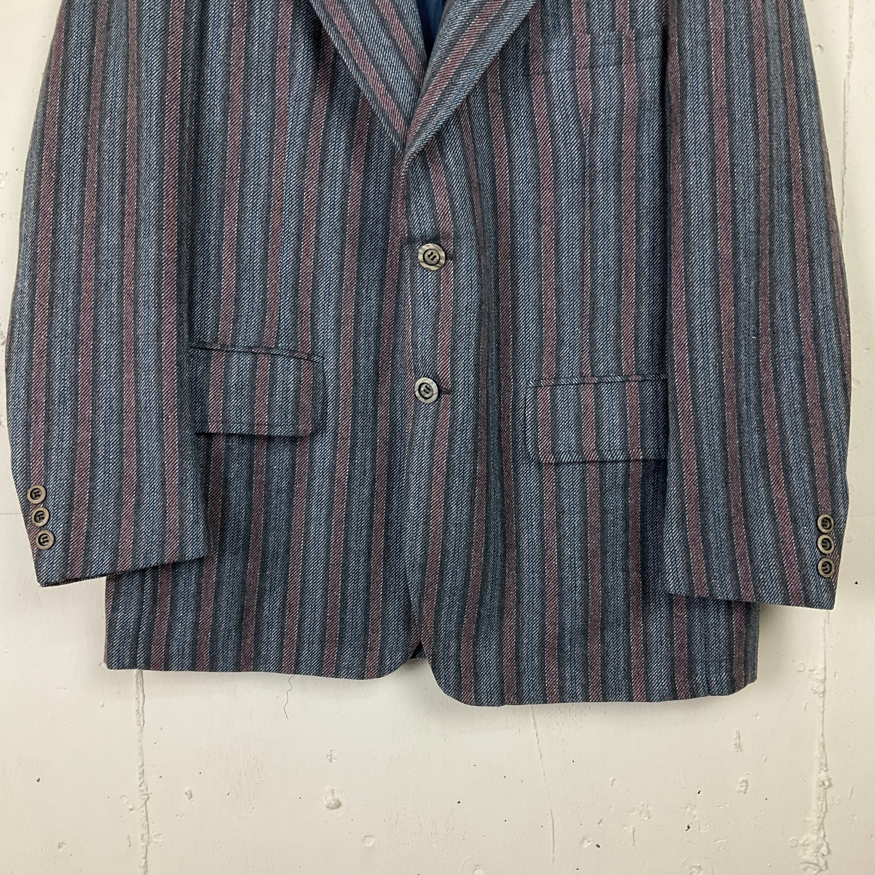 60年代〜70年代 タウンクラフトTOWN CRAFT ストライプ ウール テーラードジャケット メンズ ブラウン 古着 グレー 60s 70s ヴィンテージ ビンテージ【f240117010】