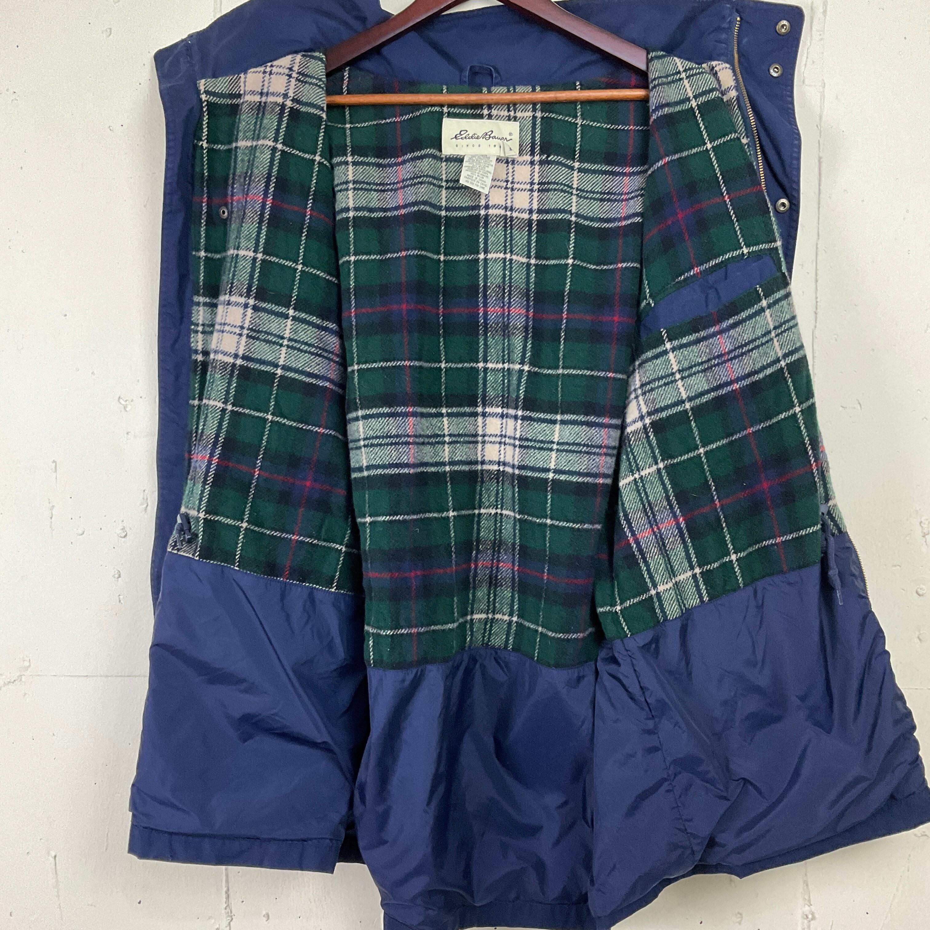 Eddie Bauer エディーバウアー マウンテンパーカー アウトドアジャケット メンズM 古着 ネイビー 紺 フード着脱式 チェックライナー【f240119012】