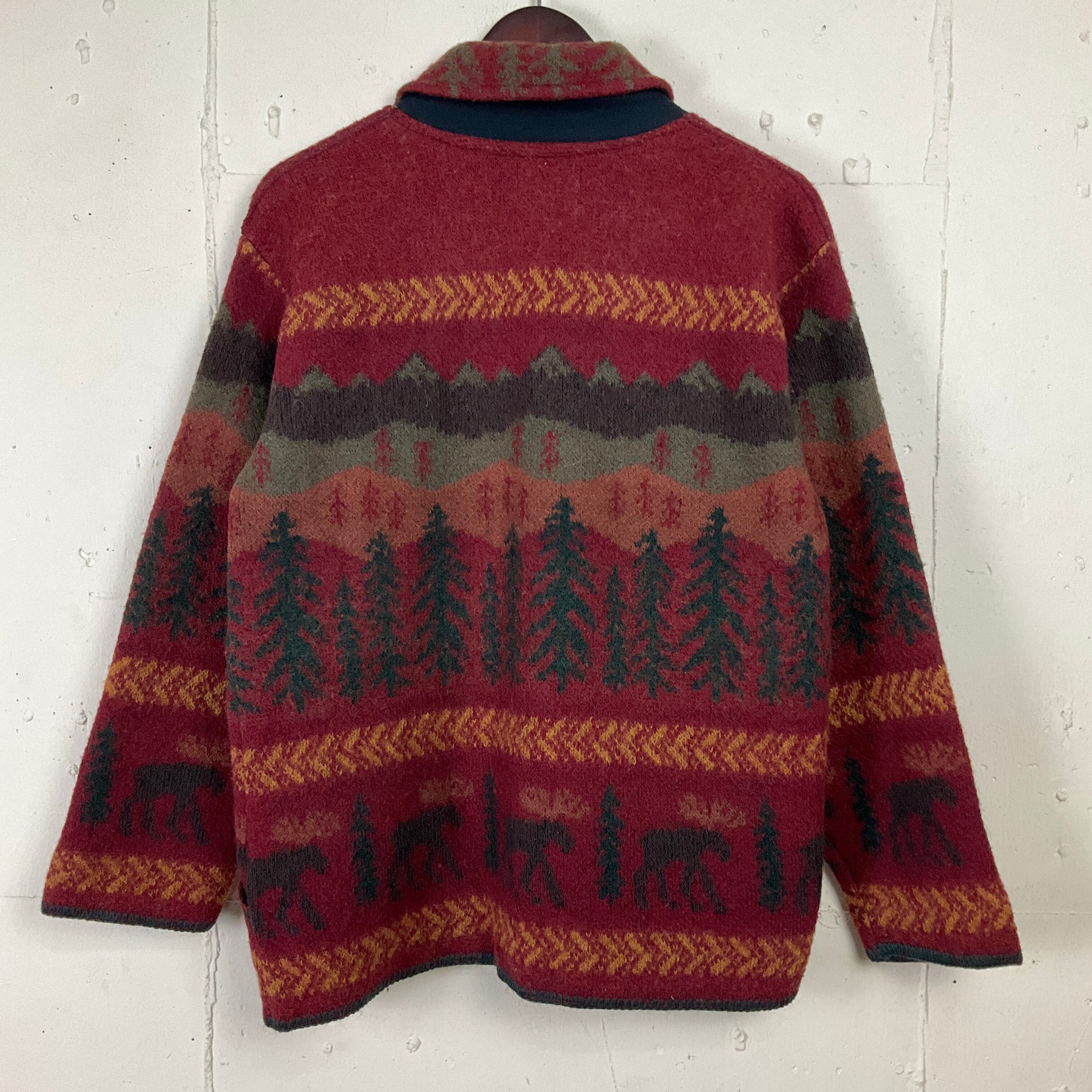 USA製 ALPS アルプス アニマル 総柄 ウールニット ジャケット 古着 レディースM【f240122010】