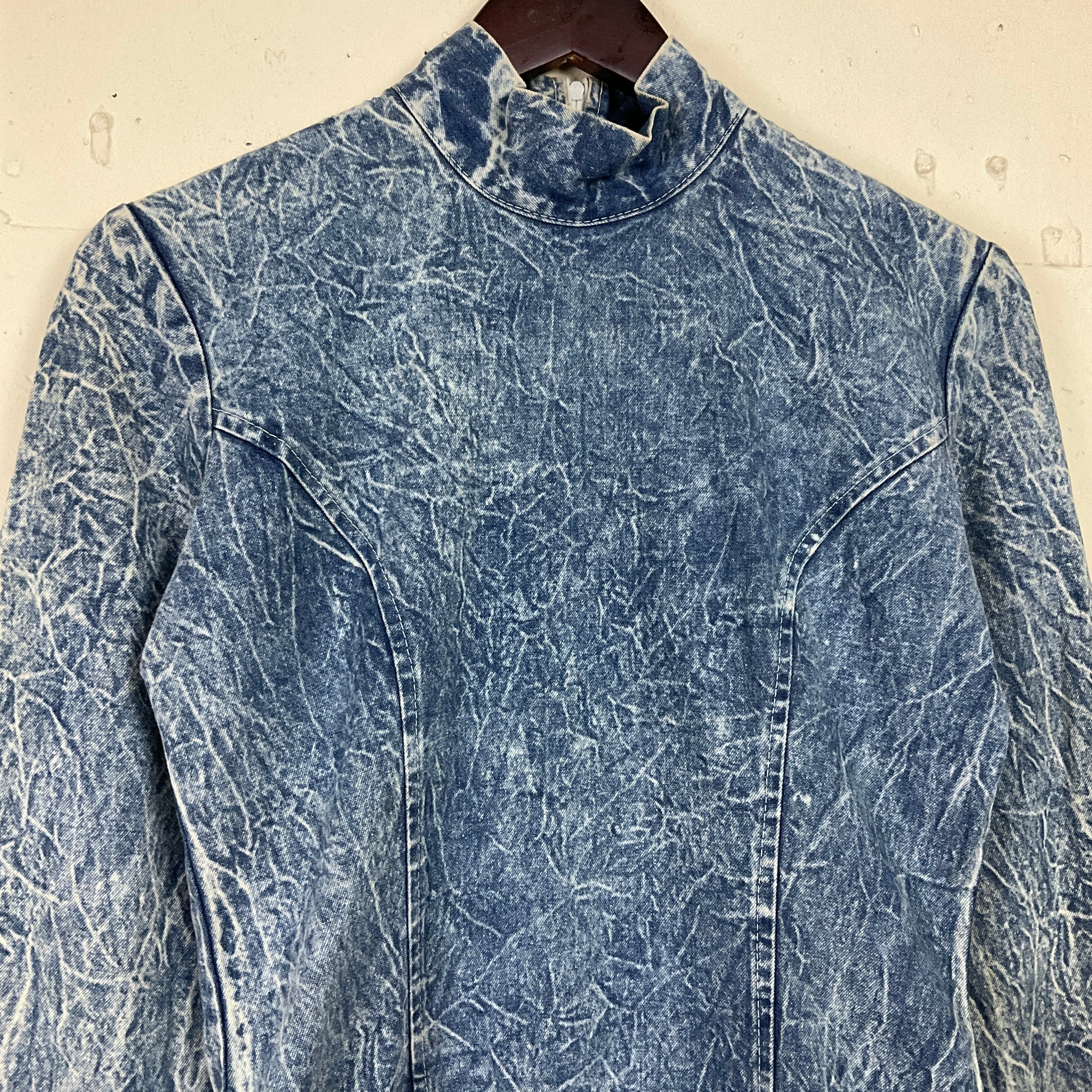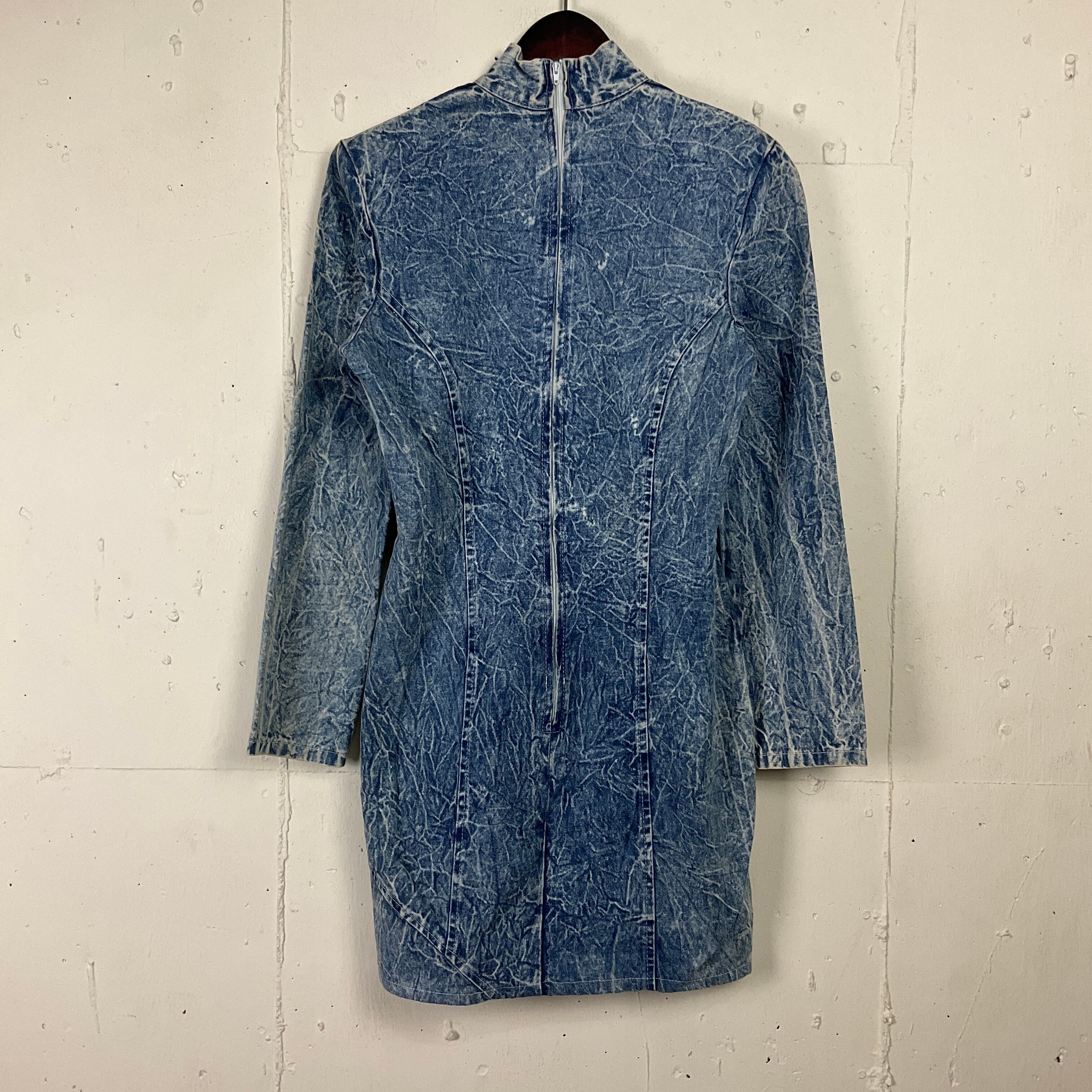 USA製 80年代 80s RAMPAGE 長袖 タイト デニム ワンピース レディースM相当 古着 ヴィンテージ ビンテージ ケミカルウォッシュ 【f240129008】
