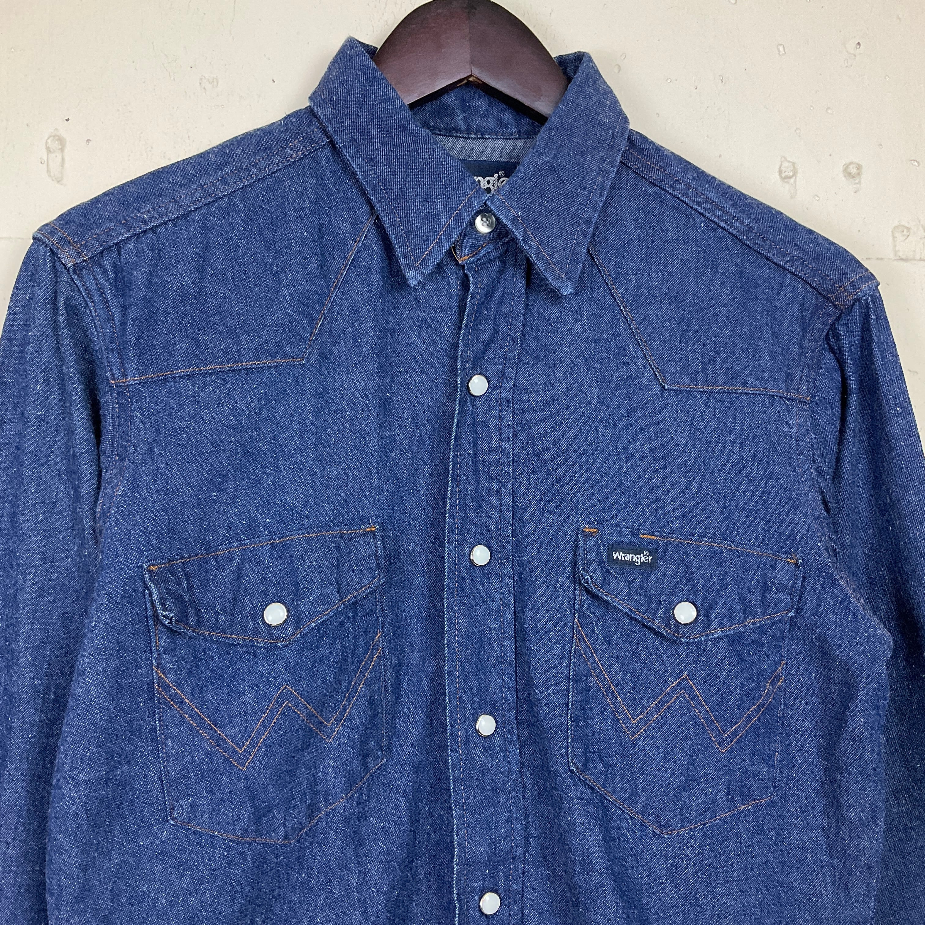USA製 80年代 80s Wrangler ラングラー デニム 長袖シャツ ウエスタンシャツ 古着 ヴィンテージ ビンテージ 濃紺 メンズ 15-33【f240205010】