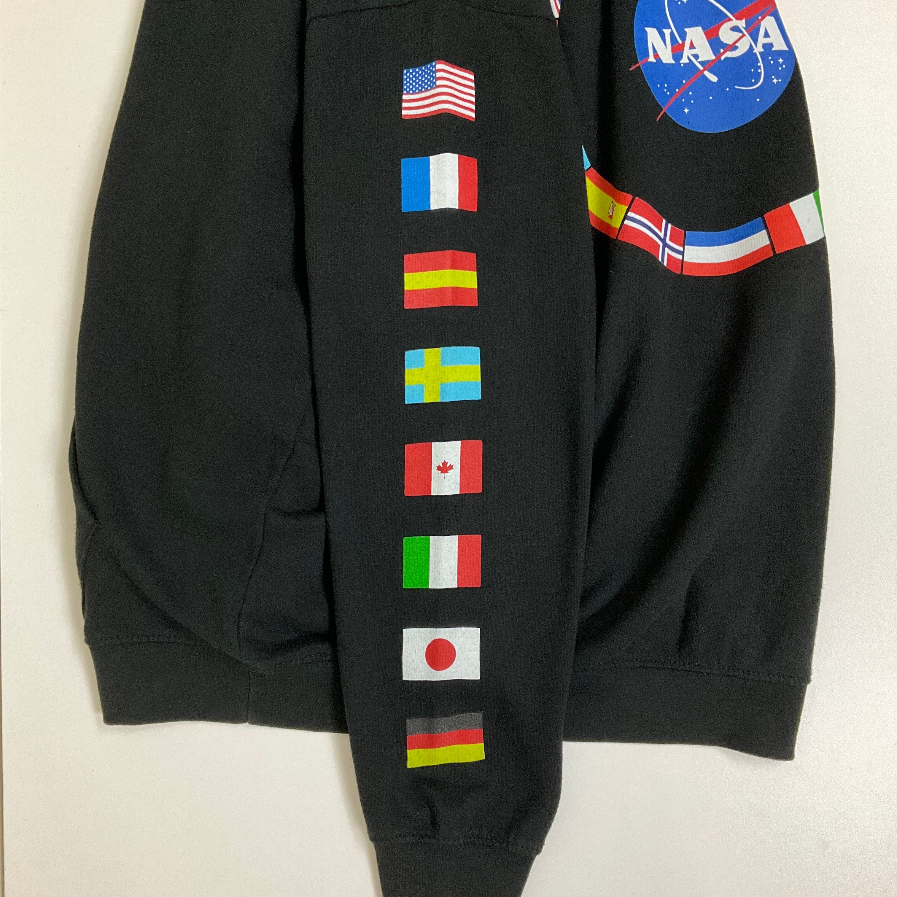 NASA ナサ アメリカ航空宇宙局 スウェットパーカー フーディ メンズL レディース 古着 ブラック 黒【f240206006】
