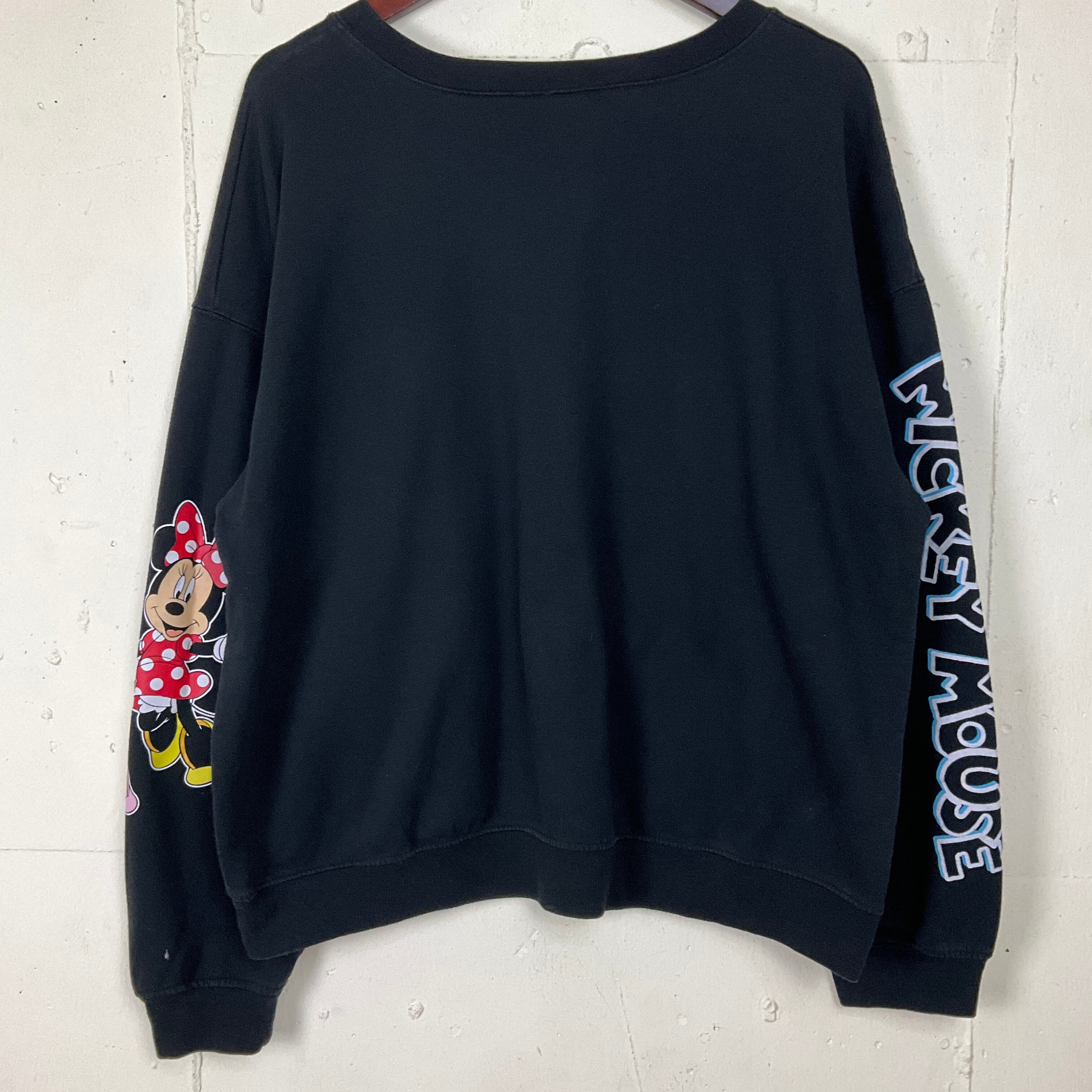 ディズニー ミッキーマウス キャラクター プリント スウェット トレーナー メンズ レディース 古着 ブラック 黒 Disney ディズニー 袖プリント【f240213002】