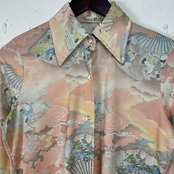 70年代 70s 和柄 総柄 ポリエステル 長袖シャツ 古着 ヴィンテージ ビンテージ ポリシャツ レディース【f240213005】