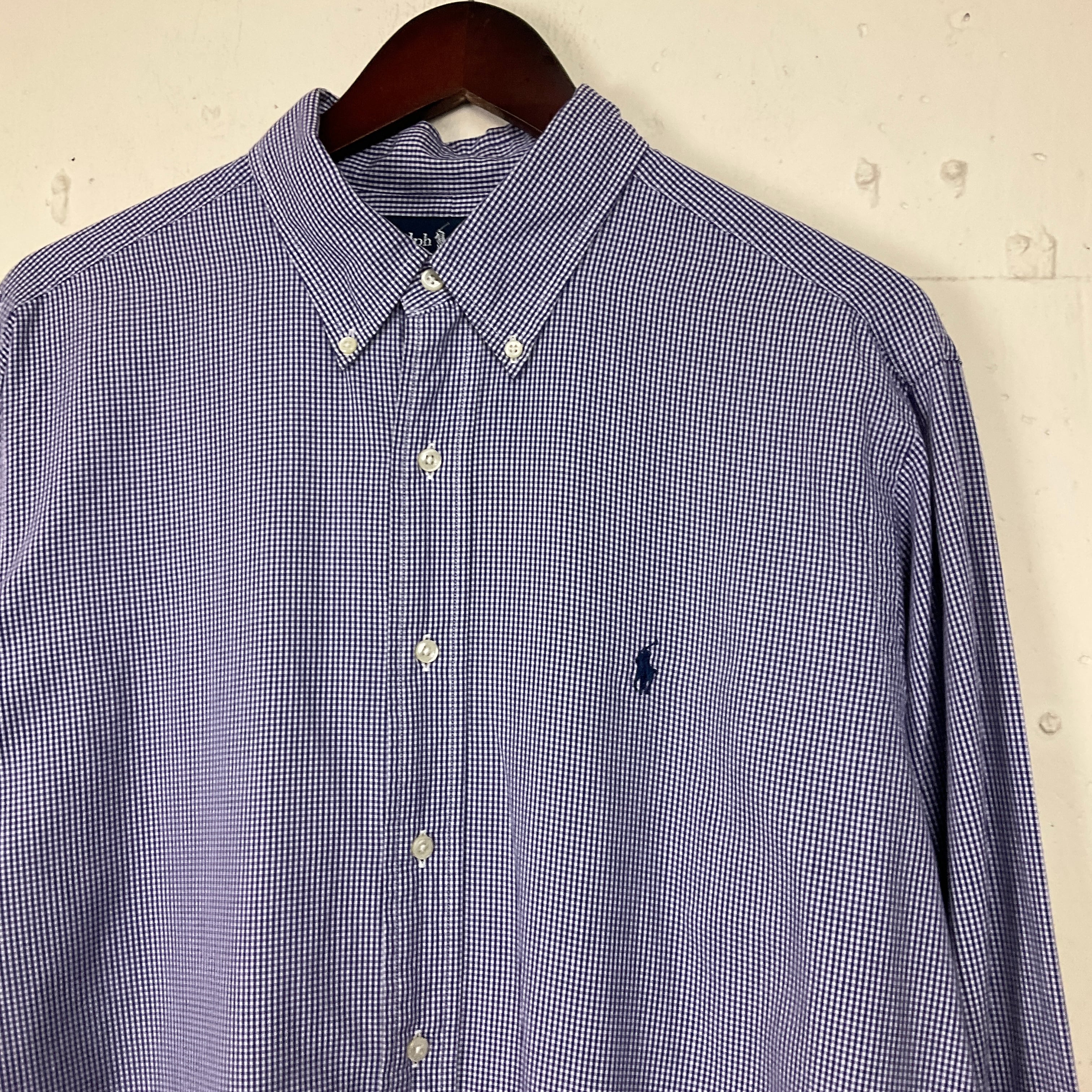 Ralph Lauren ラルフローレン CLASSIC FIT ギンガムチェック チェック柄 長袖シャツ 古着 メンズXL相当 16 1/2 ボタンダウン ネイビー×ホワイト【f240213022】