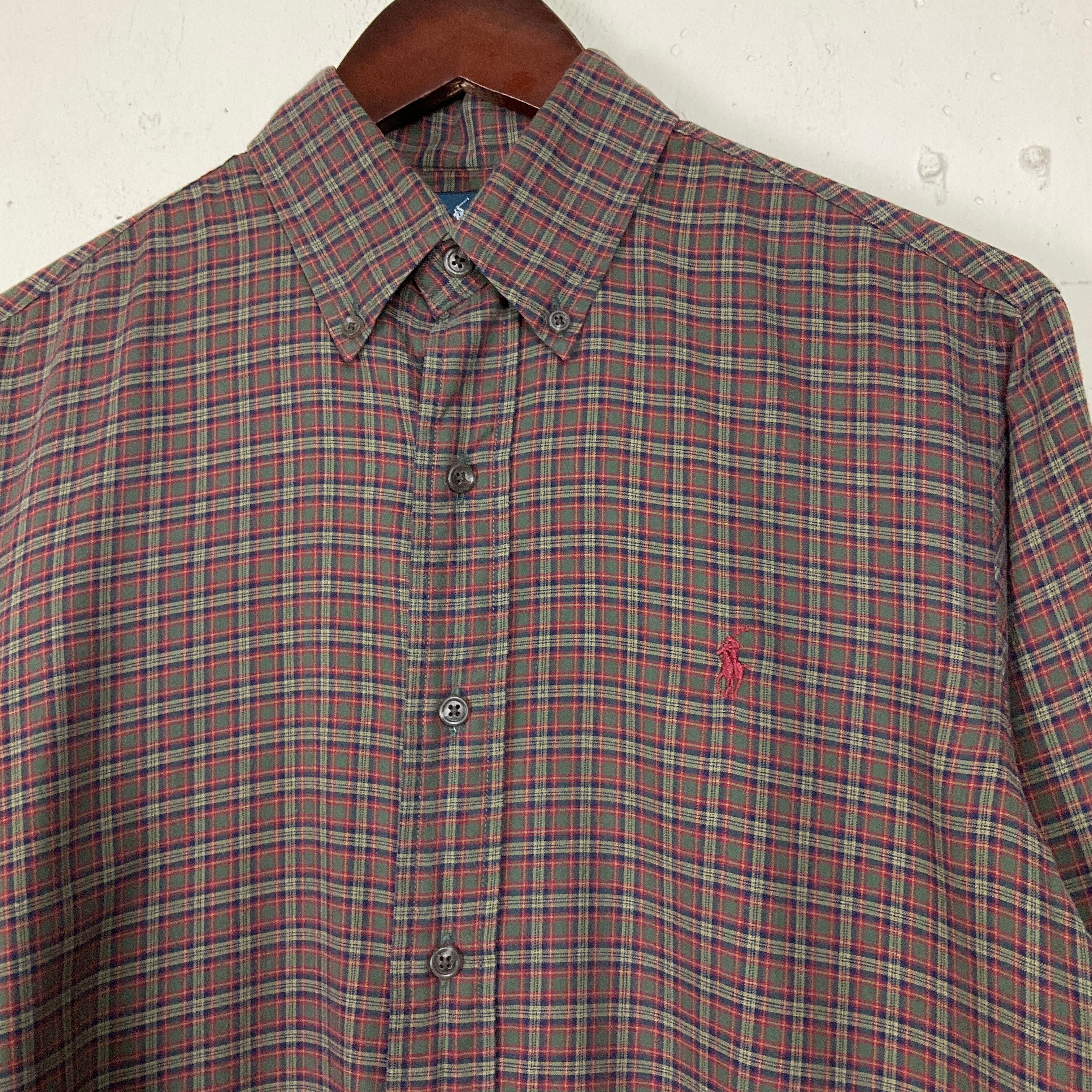 Ralph Lauren ラルフローレン CUSTOM FIT チェック柄 長袖シャツ 古着 メンズS ボタンダウン ブラウン×グリーン 茶色 緑【f240213038】