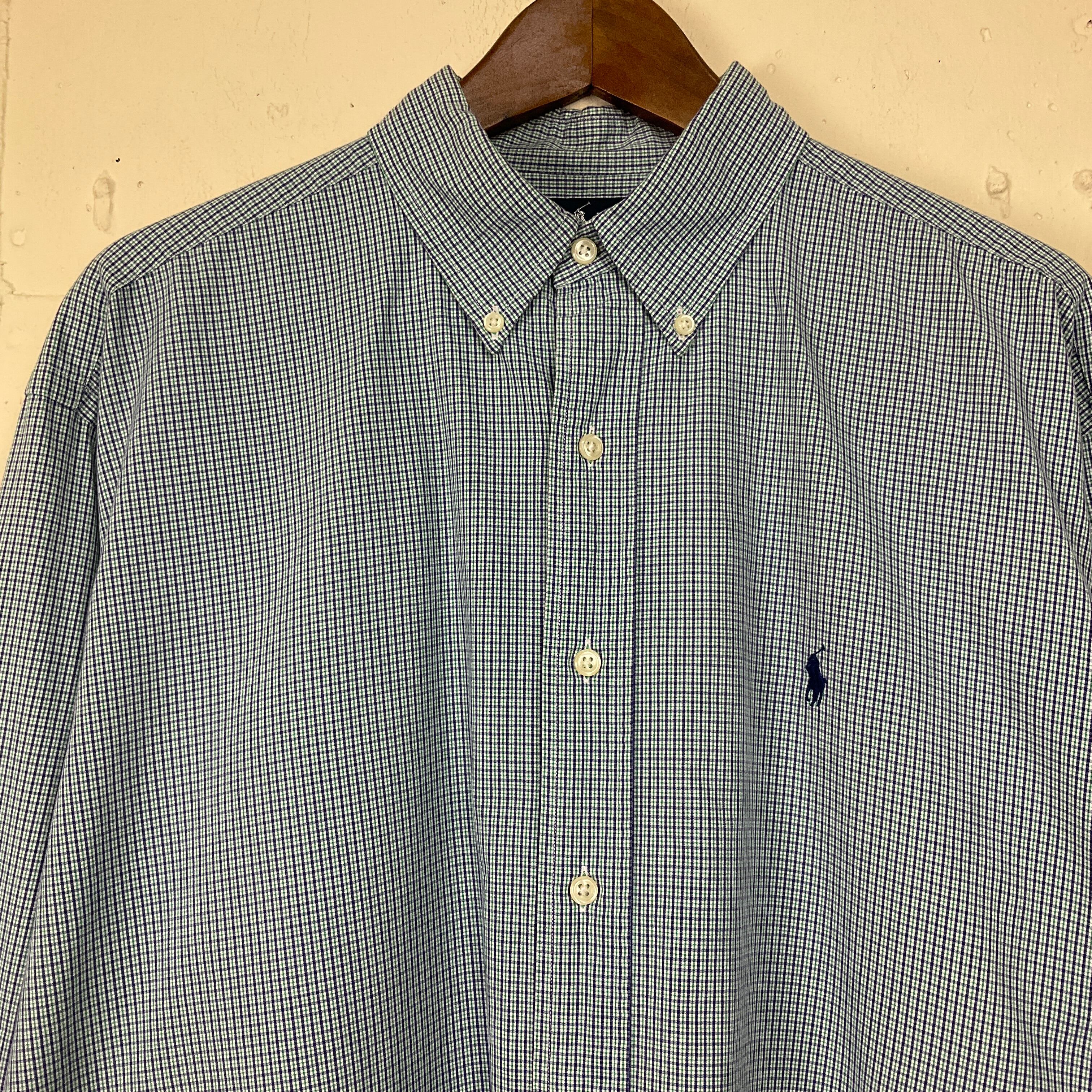 Ralph Lauren ラルフローレン BLAKE チェック柄 長袖シャツ 古着 メンズL ボタンダウン パープル×ライトグリーン 紫×黄緑【f240219024】