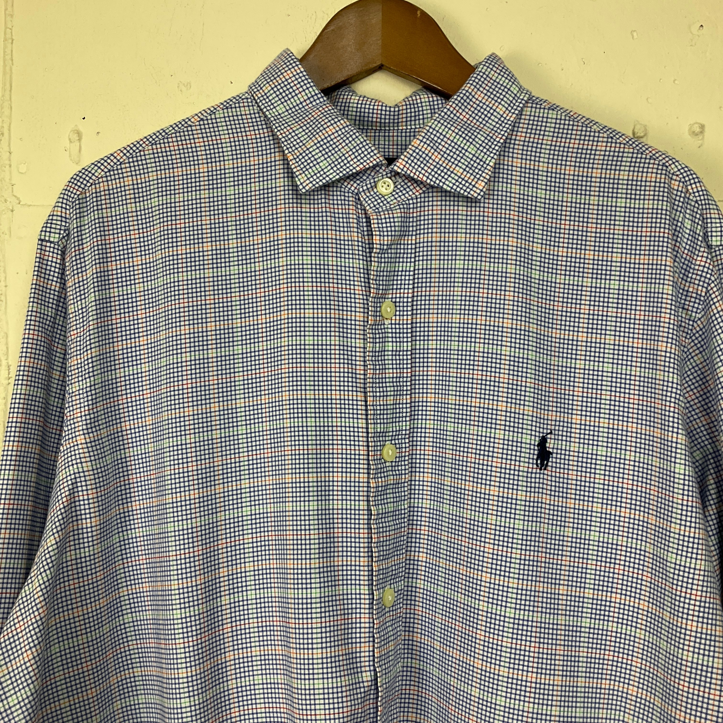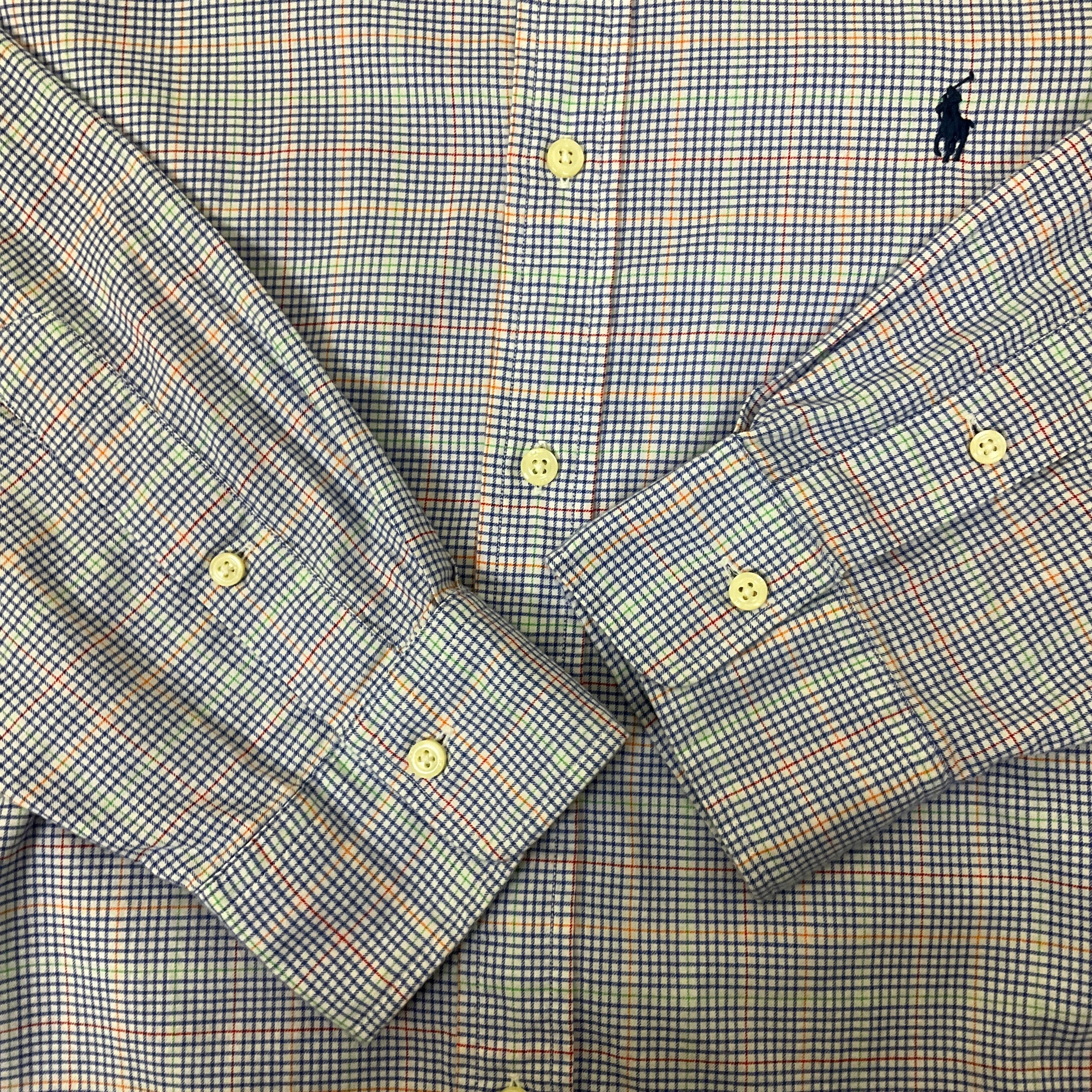 POLO Ralph Lauren ポロ ラルフローレン チェック柄 長袖シャツ 古着 メンズXL ボタンダウン ブルー 青【f240219026】
