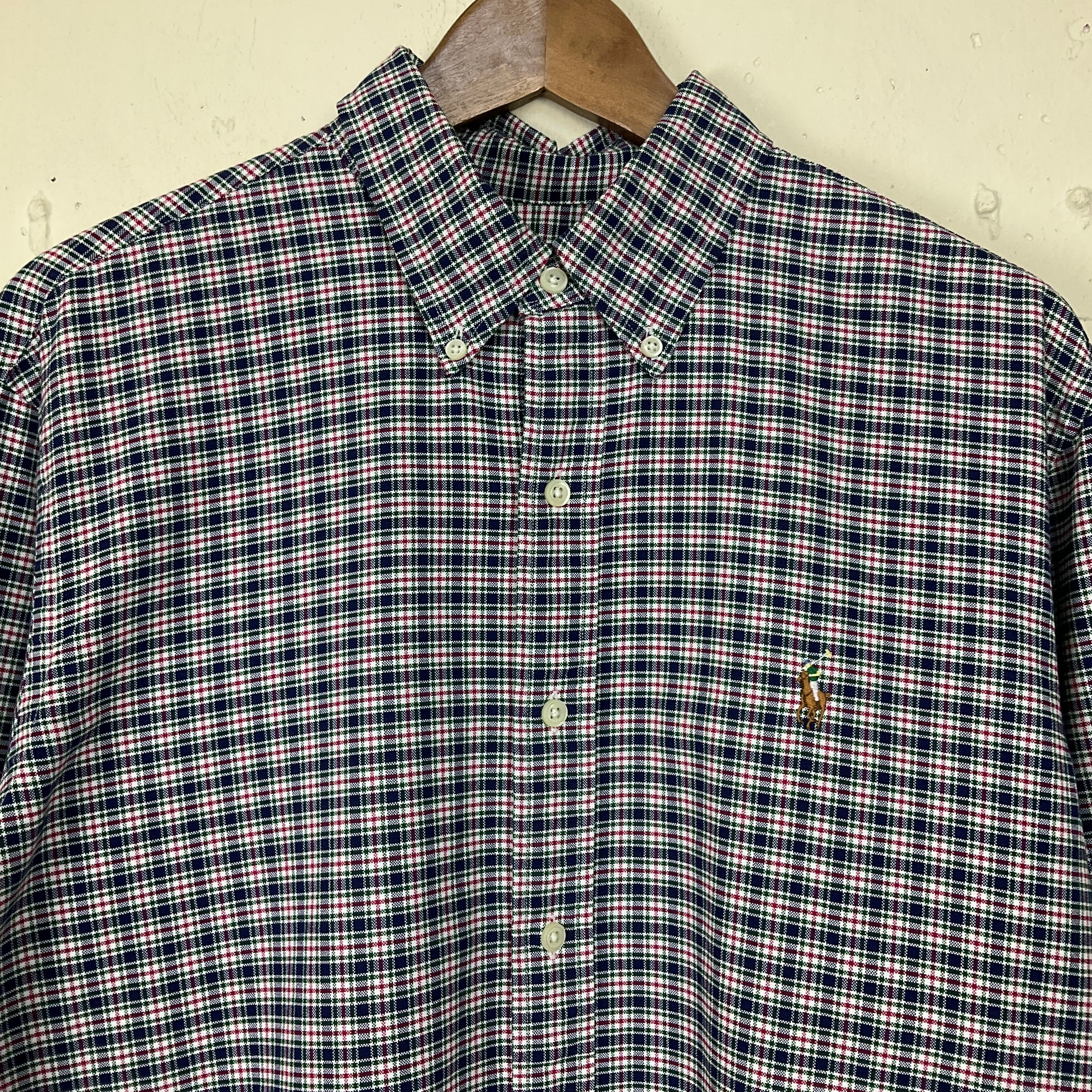 Ralph Lauren ラルフローレン チェック柄 長袖シャツ 古着 メンズL ネイビー×グリーン×レッド 紺【f240219029】