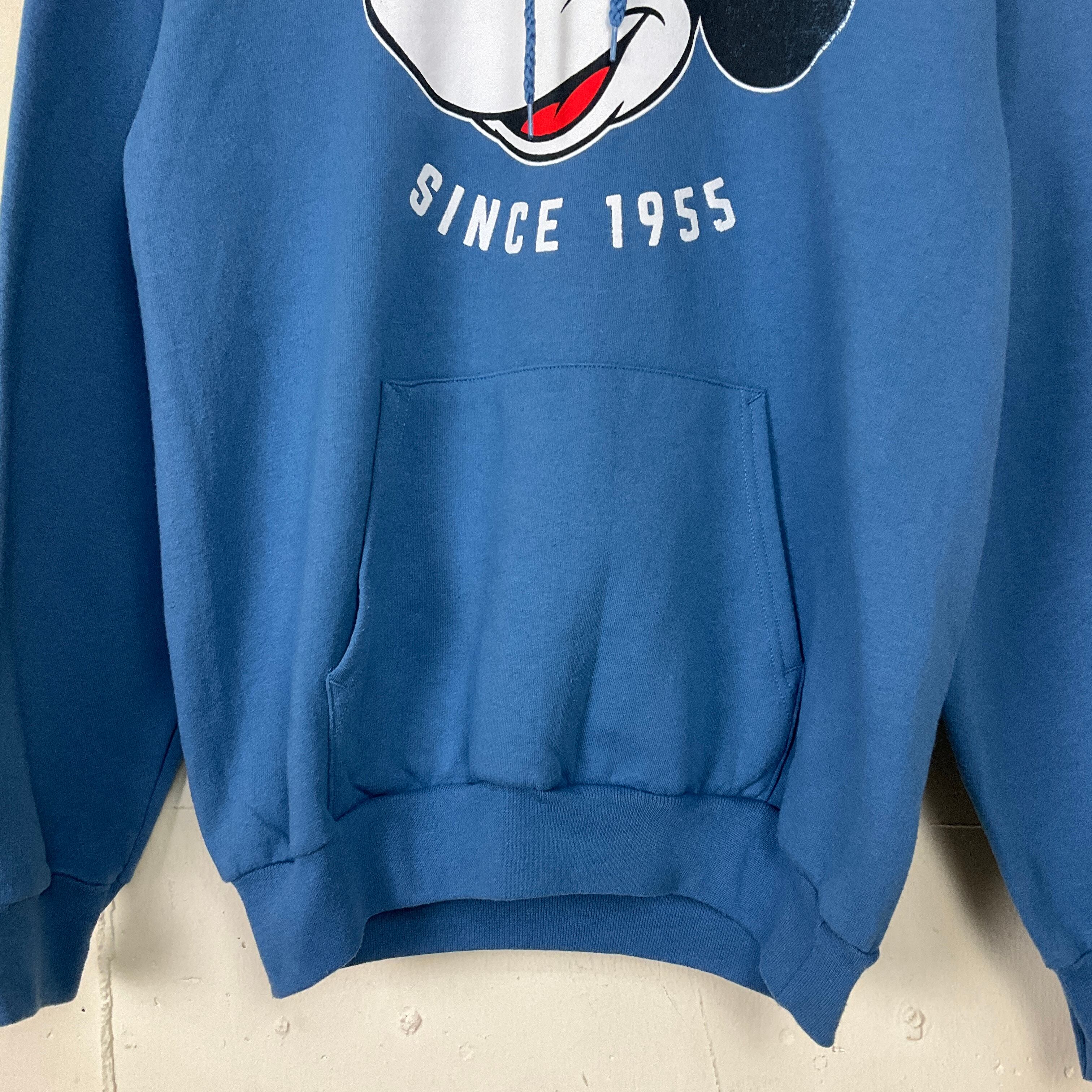 ディズニーランド ミッキーマウス キャラクター プリント スウェットパーカー フーディ メンズS レディース 古着 くすみブルー 青 Disney ディズニー【f240219032】