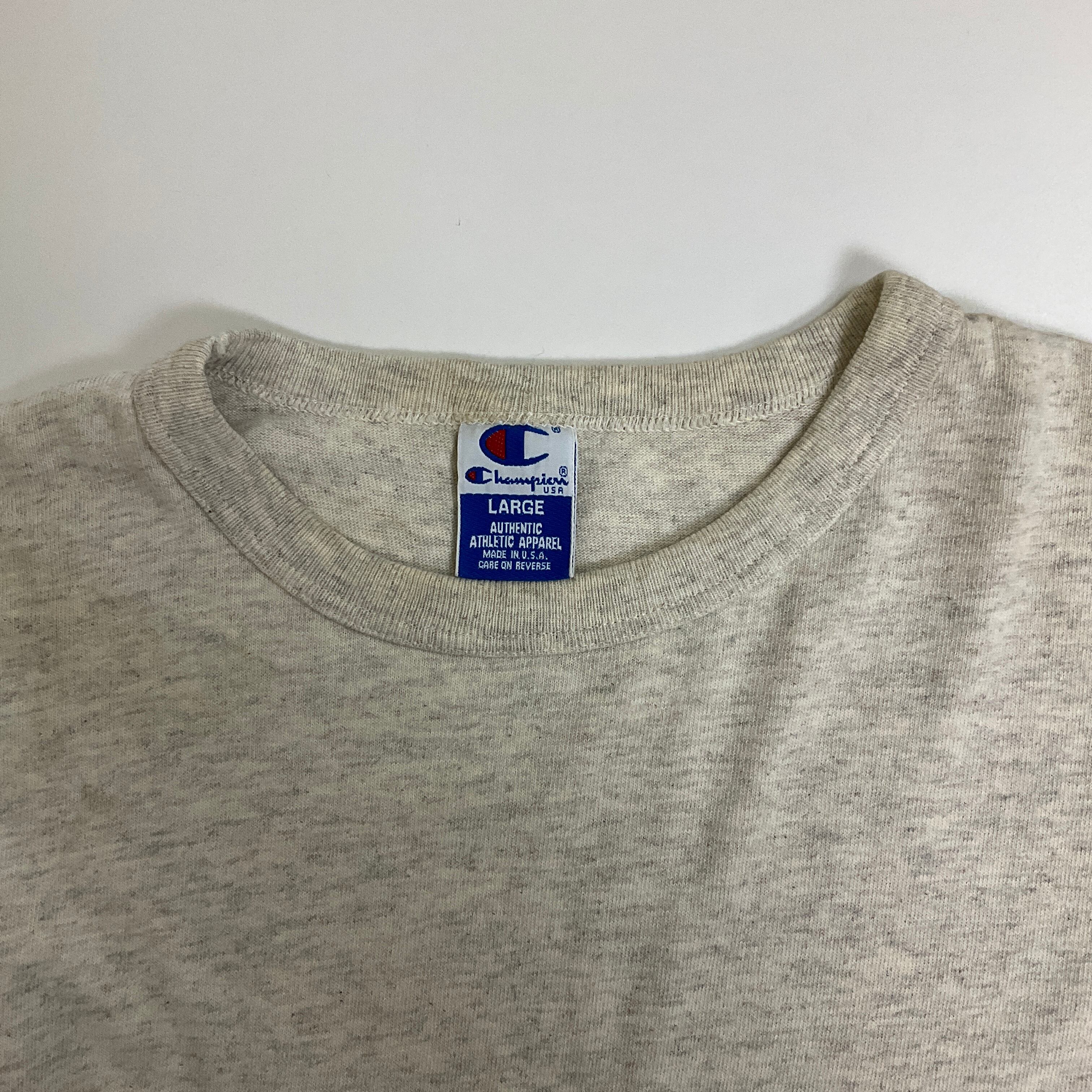 USA製 90年代 90s Champion チャンピオン ビッグロゴ 刺繍 Tシャツ 古着 ヴィンテージ ビンテージ シングルステッチ メンズL グレー【f240219036】